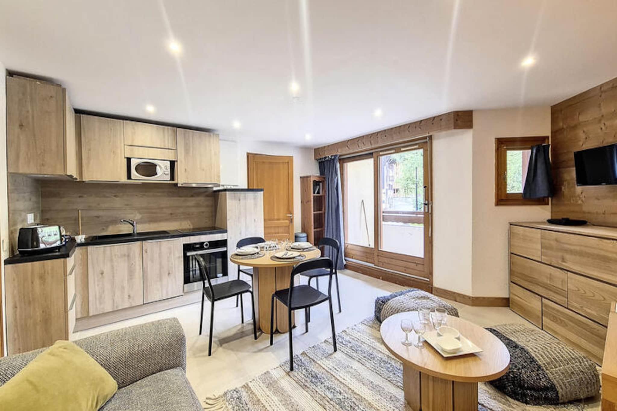 I det fredfyldte Grangeraies-distrikt i Saint-Martin-de-Belleville tilbyder denne charmerende lejlighed i stueetagen et hyggeligt tilflugtssted med direkte adgang til det verdensberømte skiområde Les Trois Vallées. Forestil dig at træde ud af din dør og være kun få øjeblikke fra Saint Martin 1-svævebanen, klar til at tage dig med ind i et vinterlandskab med uberørte pister og betagende alpine udsigter. De rolige omgivelser kombineret med bekvemmeligheden ved nærliggende butikker og skisportssteder skaber de perfekte rammer for en uforglemmelig bjergferie. \n\nDenne 47 m² store lejlighed er omhyggeligt designet til at rumme op til fire gæster. Den indbydende stue har en komfortabel sofa og tv, perfekt til afslappende aftener efter en dag på pisterne. Sovepladserne inkluderer et soveværelse med dobbeltseng og en alkove med to enkeltsenge, hvilket sikrer en afslappende nat for alle. Det fuldt udstyrede køkken med rotisseriegrill, mikrobølgeovn og opvaskemaskine gør madlavning til en leg, mens den sydvestvendte balkon tilbyder et dejligt sted at nyde bjergluften og den fantastiske udsigt. Yderligere faciliteter inkluderer et moderne badeværelse med bruser og vaskemaskine samt et separat toilet for ekstra bekvemmelighed.\n\nEn kort gåtur på 10 minutter bringer dig til hjertet af landsbyen, hvor du kan udforske charmerende butikker, nyde lokal mad eller blot fordybe dig i den varme og indbydende atmosfære i Saint-Martin-de-Belleville. Uanset om du er her for spændingen ved skiløb, alpinlandskabets charme eller den fredelige landsbycharme, er denne lejlighed din ideelle base for en mindeværdig ferie. Med sengelinned, håndklæder og køkkenudstyr inkluderet i vinterophold på syv nætter eller mere, kan du ubesværet finde dig til rette og fokusere på at skabe varige minder i hjertet af de franske alper.
