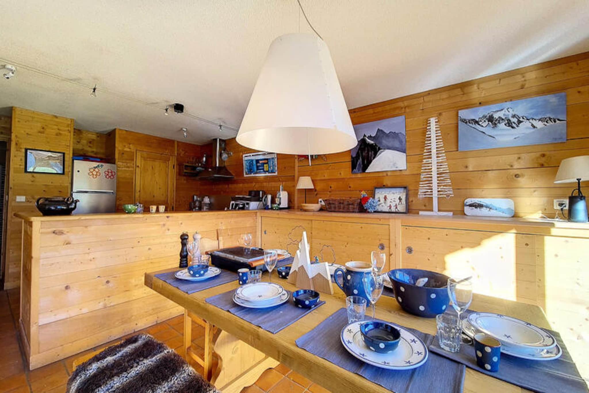 I den maleriske landsby Levassaix, kun to minutters kørsel fra det pulserende Les Menuires, tilbyder Chalet Crintallia et idyllisk alpint tilflugtssted. Omgivet af betagende bjerglandskab kombinerer dette charmerende tre-etagers chalet rustik charme med moderne komfort og skaber det perfekte tilflugtssted for familier eller grupper på op til ti gæster. Forestil dig hyggelige aftener ved den knitrende pejs eller at træde ud på den solbeskinnede sydvestvendte terrasse for at nyde den fredfyldte udsigt over de sneklædte tinder. Med ski-in/ski-out adgang begynder dine alpine eventyr lige uden for døren. Chaleten er på 138 m² og er omhyggeligt designet til at sikre et behageligt ophold. Stueetagen byder dig velkommen med et skirum udstyret med støvletørrer, et fuldt udstyret køkken med keramiske kogeplader, ovn, mikrobølgeovn, stort køleskab med fryser og en Nespresso-maskine. Opholdsstuen indbyder til afslapning med sin pejs og Wi-Fi-adgang. Soveværelserne er fordelt på tre etager og tilbyder alsidige sovepladser, herunder en hyggelig sovesal på loftet, der er perfekt til børn. Moderne badeværelser, et spillerum og en tv-stue bidrager til hyttens appel og gør den til et sandt hjem væk fra hjemmet. Levassaix' rolige charme suppleres af dens nærhed til Les Menuires, hvor du finder et bredt udvalg af restauranter, butikker og afterski-aktiviteter. Uanset om du snor dig gennem de uberørte skråninger i Les Trois Vallées eller udforsker de naturskønne vandrestier om sommeren, placerer Chalet Crintallia dig i hjertet af det hele. For dem, der søger en fredelig, men eventyrfyldt flugt, lover denne hytte uforglemmelige minder i de franske alper.