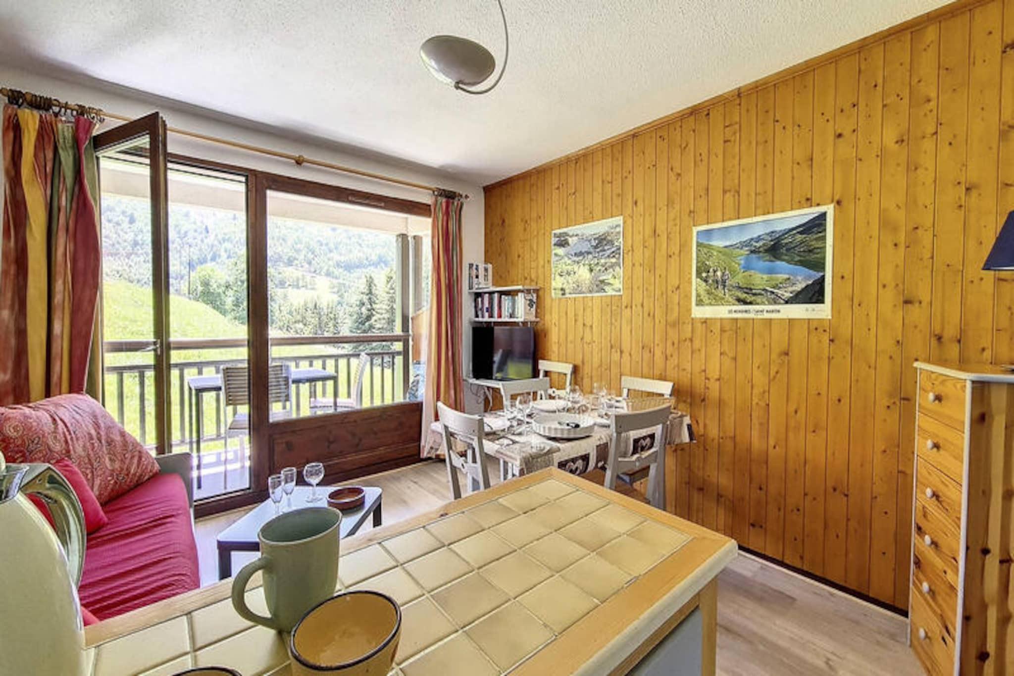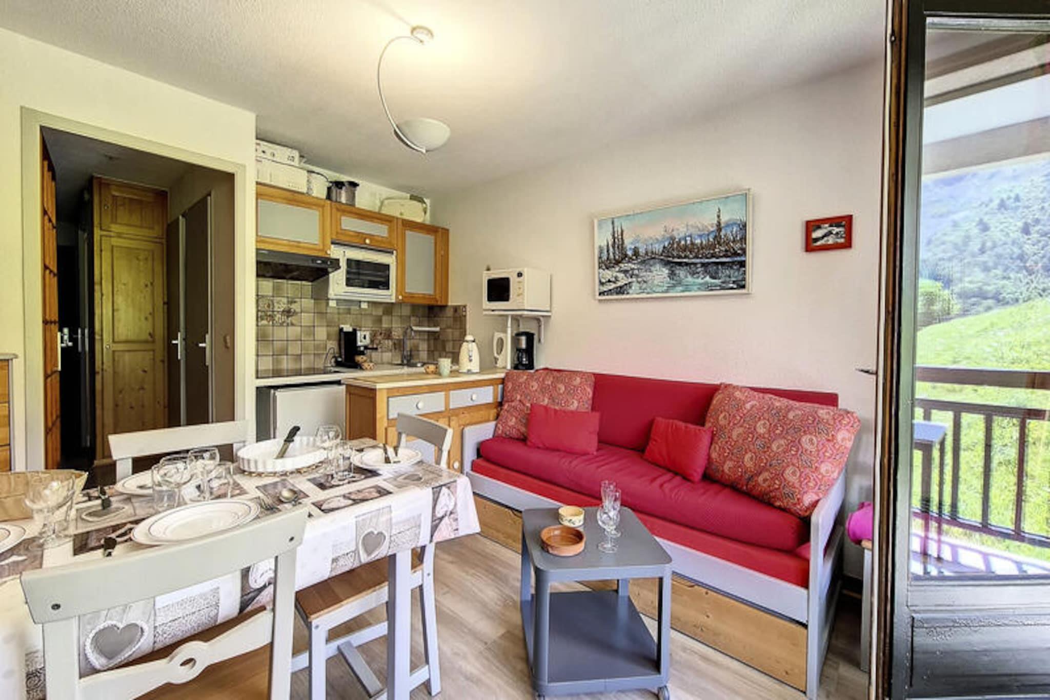 I det charmerende Grangeraies-kvarter tilbyder denne hyggelige 2-værelses lejlighed et dejligt alpint tilflugtssted kun få øjeblikke fra Saint Martin 1-svævebanen. Denne bolig er perfekt beliggende til at udforske det verdensberømte skiområde Les Trois Vallées og kombinerer bekvemmelighed med roen i en traditionel bjerglandsby. Forestil dig at træde ud på din sydvestvendte balkon, nyde den friske bjergluft og planlægge dit næste eventyr i hjertet af de franske alper. \n\nLejligheden er designet til at rumme op til fire gæster og er på 29 m². Den ligger på første sal i Les Murgers-residensen. Det lyse interiør har et komfortabelt soveværelse med dobbeltseng og tv til dvd'er samt en stue med en sovesofa til én person og en udtræksseng. Det fuldt udstyrede køkken inkluderer moderne apparater såsom keramiske kogeplader, ovn, mikrobølgeovn, opvaskemaskine og endda en espressomaskine, så du har alt, hvad du behøver for et afslappende ophold. Badeværelset har badekar, og der er et separat toilet for ekstra bekvemmelighed. \n\nResidensen ligger kun 2 minutters gang fra gondolliften og 5 minutters gang fra landsbyens centrum, hvor du finder butikker, en skiskole og essentielle tjenester. Med kunstig sne, der sikrer fremragende skiforhold, og et skirum til dit udstyr, vil vintersportsentusiaster finde denne beliggenhed ideel. Om sommeren forvandles området til et paradis for vandrere og naturelskere med stier, der fører til betagende alpine landskaber. \n\nUanset om du søger spændende dage på pisterne eller fredelige aftener i maleriske omgivelser, tilbyder denne lejlighed den perfekte base for din bjergferie. Med sin blanding af komfort, bekvemmelighed og autentisk alpin charme lover dit ophold her at blive uforglemmeligt.