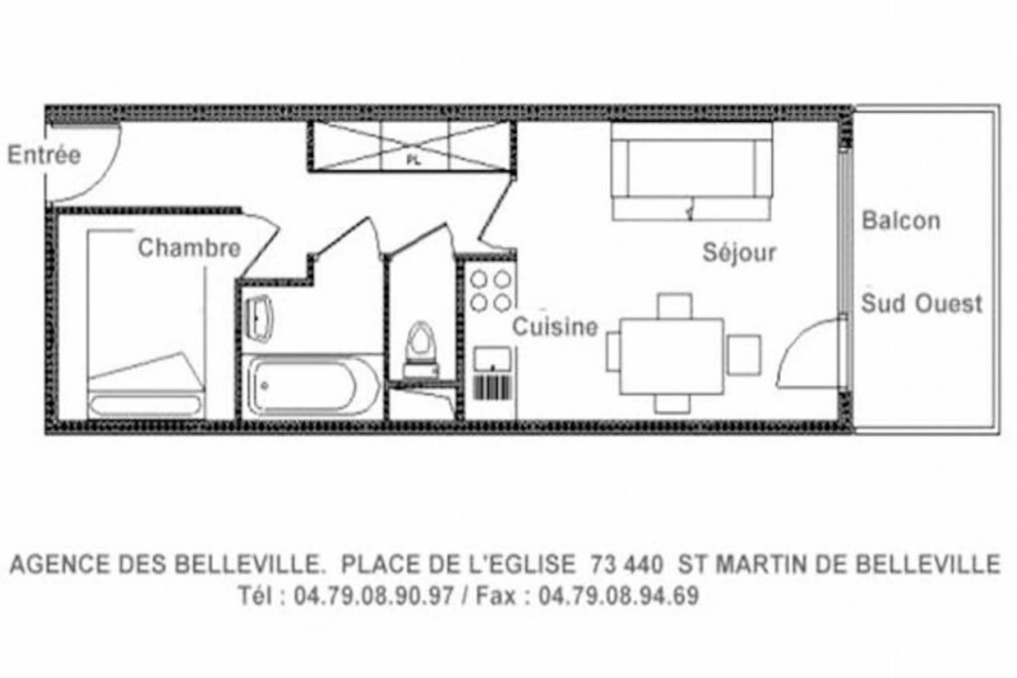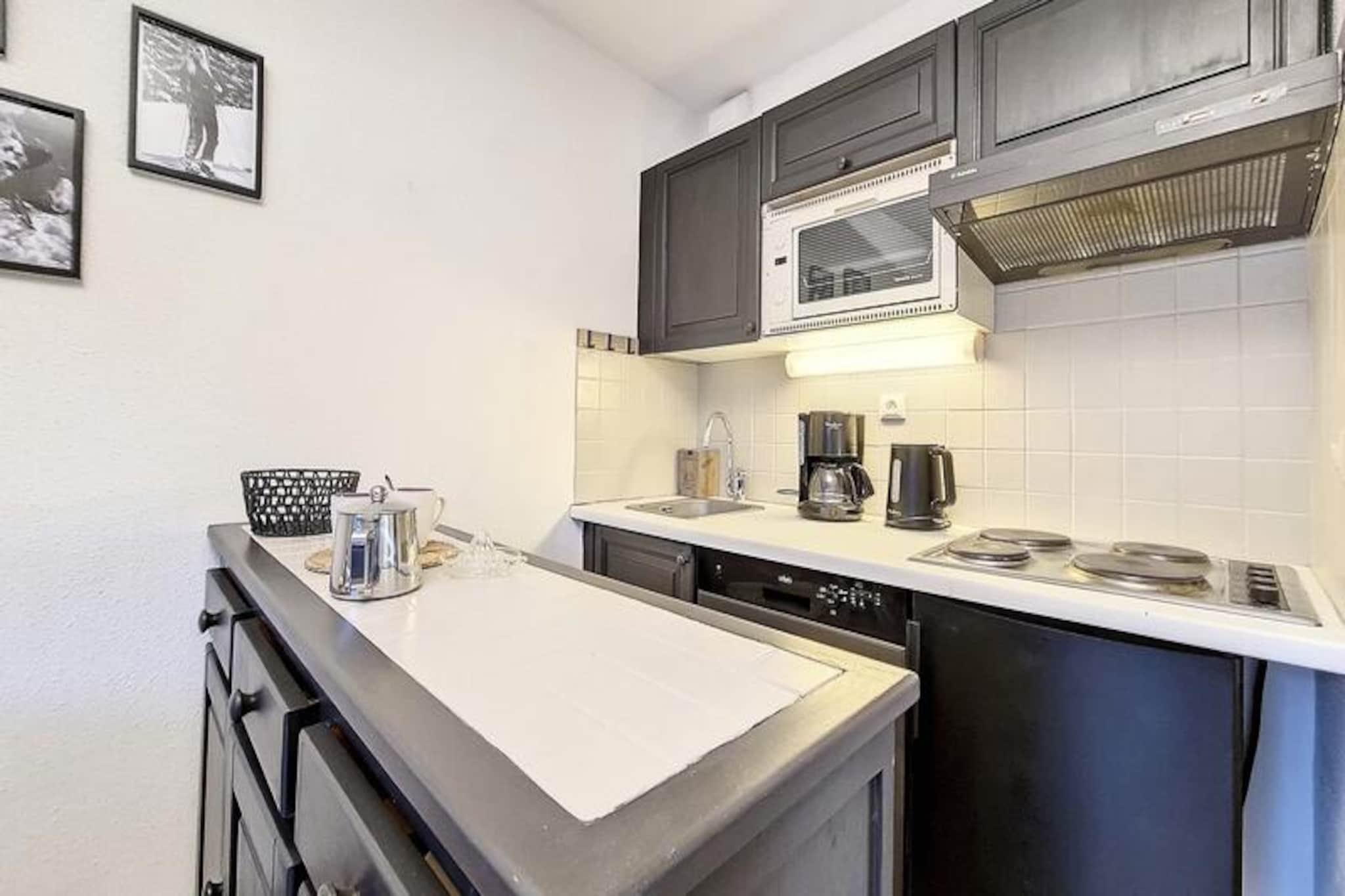 I det charmerende Grangeraies-distrikt i Saint-Martin-de-Belleville inviterer denne hyggelige lejlighed dig til at opleve magien i de franske alper. Kun en kort gåtur fra Saint Martin 1-svævebanen er du problemfrit forbundet med det verdensberømte skiområde Les Trois Vallées. Uanset om du er her for spændende vintersport eller rolige sommervandreture, danner den betagende Cochet-bjergkæde en fantastisk kulisse for din alpine ferie. Boligens sydvestvendte balkon er perfekt til at nyde udsigten, mens du nyder en morgenkaffe eller slapper af efter en eventyrfyldt dag. \n\nDenne moderniserede lejlighed på 29 m² er designet til komfort og funktionalitet og har plads til op til fire gæster. Soveværelset har en dobbeltseng, mens stuen tilbyder en dobbelt sovesofa, der sikrer en afslappende nat for alle. Køkkenet er fuldt udstyret med køleskab, opvaskemaskine, induktionskogeplade og Nespresso-kaffemaskine, hvilket gør det nemt at tilberede måltider og snacks. Et separat badeværelse med badekar og et praktisk toilet bidrager til rummets praktiske anvendelighed. Gæsterne vil sætte pris på de gennemtænkte faciliteter, herunder et skirum og sikker adgang til boligen. \n\nMed gondolliften kun to minutter væk og landsbyens centrum blot fem minutters gang, er du perfekt placeret til at udforske lokale butikker, restauranter og tjenester. Kunstig sne garanterer fremragende skiforhold, mens den nærliggende skiskole og udstyrsudlejning henvender sig til alle niveauer af ekspertise. Om sommeren forvandles området til et paradis for naturelskere med naturskønne stier og udendørsaktiviteter. \n\nUanset om du søger eventyr eller afslapning, er denne lejlighed din port til uforglemmelige alpine minder. Fra sin førsteklasses beliggenhed til sin indbydende atmosfære er det det ideelle tilflugtssted for par, små familier eller venner, der ønsker at opleve skønheden i Saint-Martin-de-Belleville.