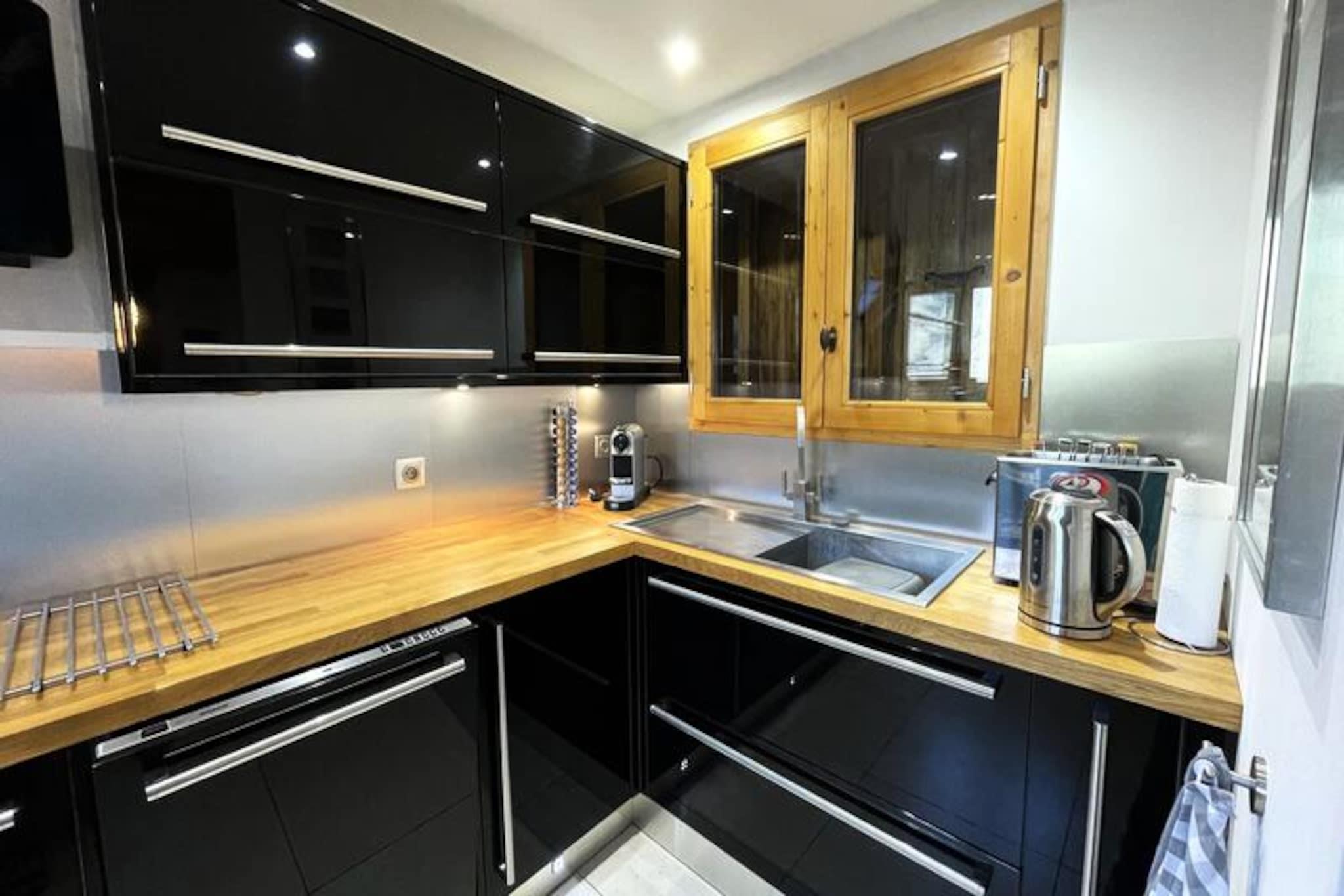 I hjertet af den maleriske landsby St Martin de Belleville tilbyder Le Vieux Chalet en unik blanding af alpin charme og moderne komfort. Denne fritliggende hytte, beliggende i haveplan, tilbyder en betagende udsigt over dalen og er perfekt beliggende kun 100 meter fra landsbyens skilift, hvilket gør den til et ideelt valg for både vintersportsentusiaster og naturelskere. Uanset om du søger eventyr på pisterne eller ro i rolige bjergomgivelser, lover denne ejendom en uforglemmelig ferie. \n\nLe Vieux Chalet strækker sig over to etager og er på 120 kvadratmeter og har komfortabel plads til op til otte gæster. Det åbne køkken og opholdsstue i entréplan er designet til afslapning og hygge med en hyggelig sofa, lænestole, brændeovn og adgang til en møbleret vestvendt terrasse. Køkkenet er fuldt udstyret med high-end apparater, herunder et stort amerikansk køleskab, Nespresso-kaffemaskine og endda et fondue-sæt til autentisk alpin mad. Et dedikeret afslapningsområde med sauna og bruser tilføjer et strejf af luksus til dit ophold. Den nederste etage rummer tre smukt indrettede soveværelser, alle med eget badeværelse og direkte adgang til enten den anlagte have eller balkon, hvilket sikrer privatliv og komfort for alle gæster. \n\nSt Martin de Belleville er en perle i det berømte skiområde Les Trois Vallées, der ikke kun tilbyder skiløb i verdensklasse, men også en charmerende landsbyatmosfære med lokale butikker, restauranter og kulturelle begivenheder. Om sommeren forvandles regionen til et paradis for vandrere og cyklister med stier, der snor sig gennem fantastiske alpine landskaber. Chaletens nærhed til skiliften og landsbyens centrum sikrer nem adgang til alle faciliteter og aktiviteter, hvilket gør det til en perfekt base for at udforske området året rundt. \n\nLe Vieux Chalet inviterer dig til at opleve magien i de franske alper, hvor hvert øjeblik er indrammet af de omkringliggende bjerges skønhed og varmen fra et indbydende hjem. Uanset om det er spændingen ved skiløb, roen i saunaen eller glæden ved at dele måltider på terrassen, tilbyder denne ejendom noget særligt for enhver smag.