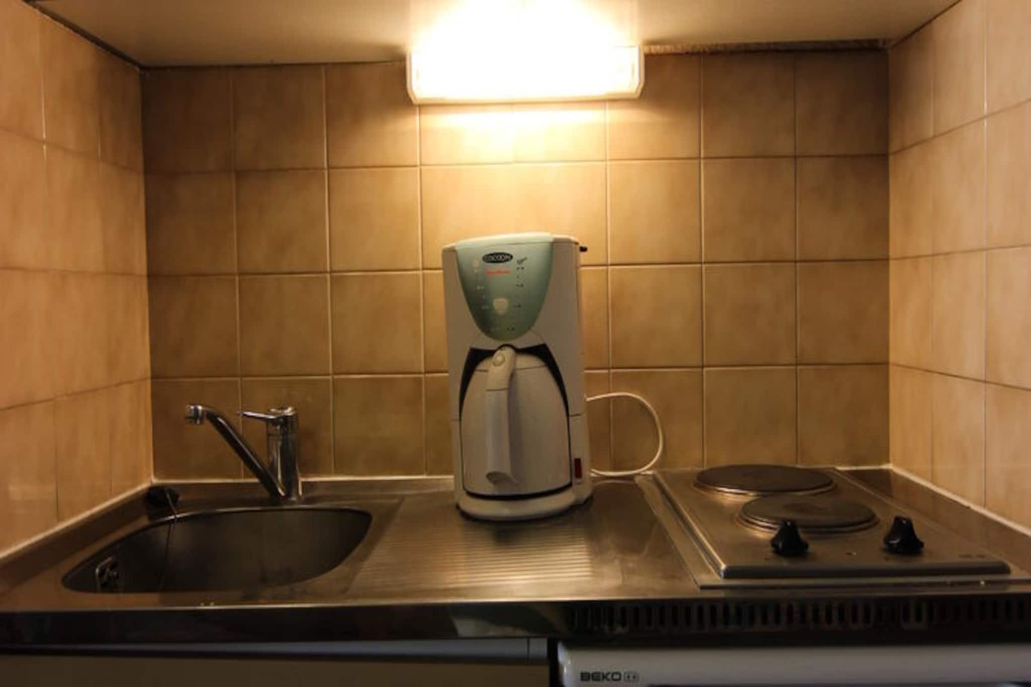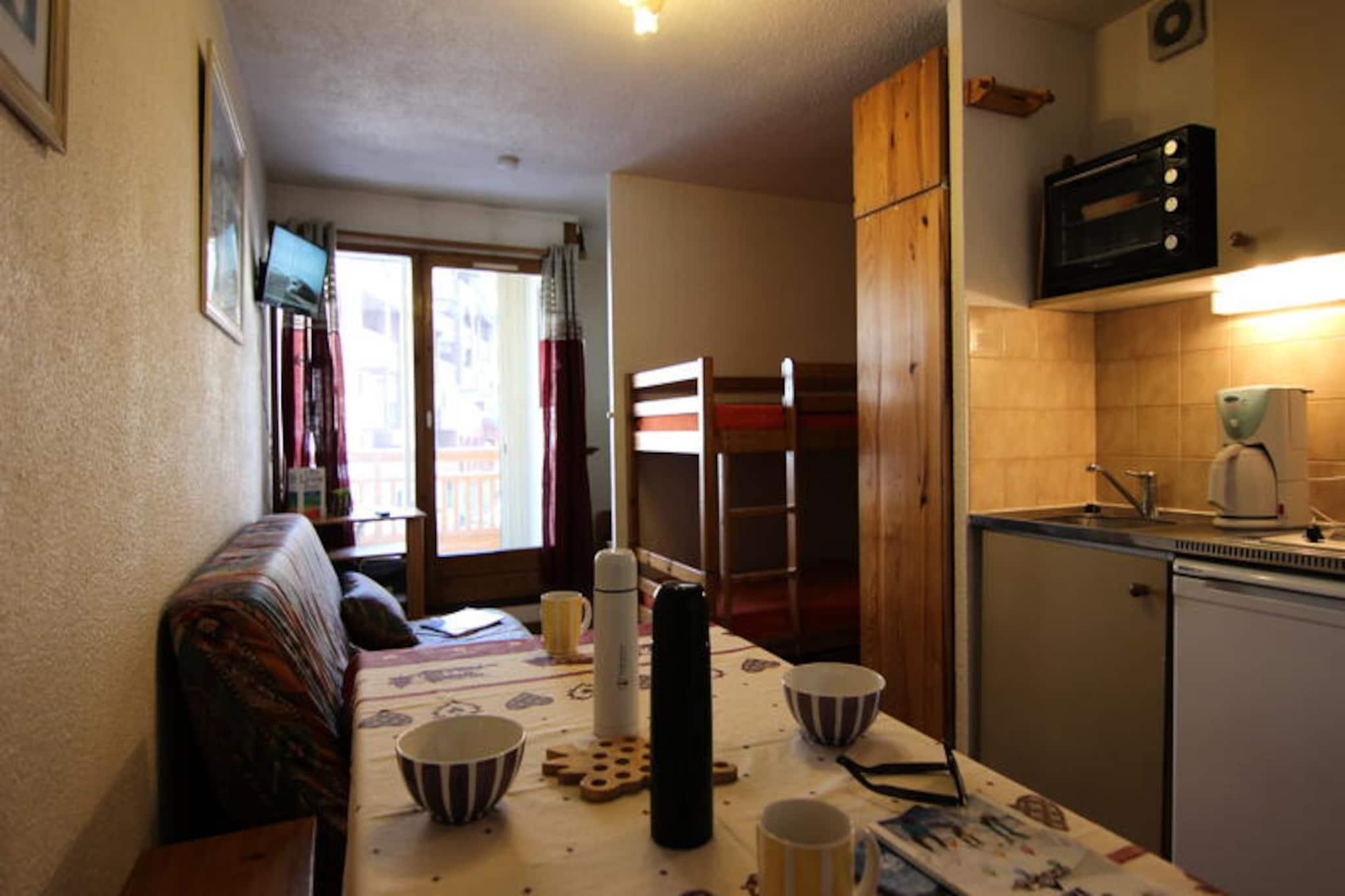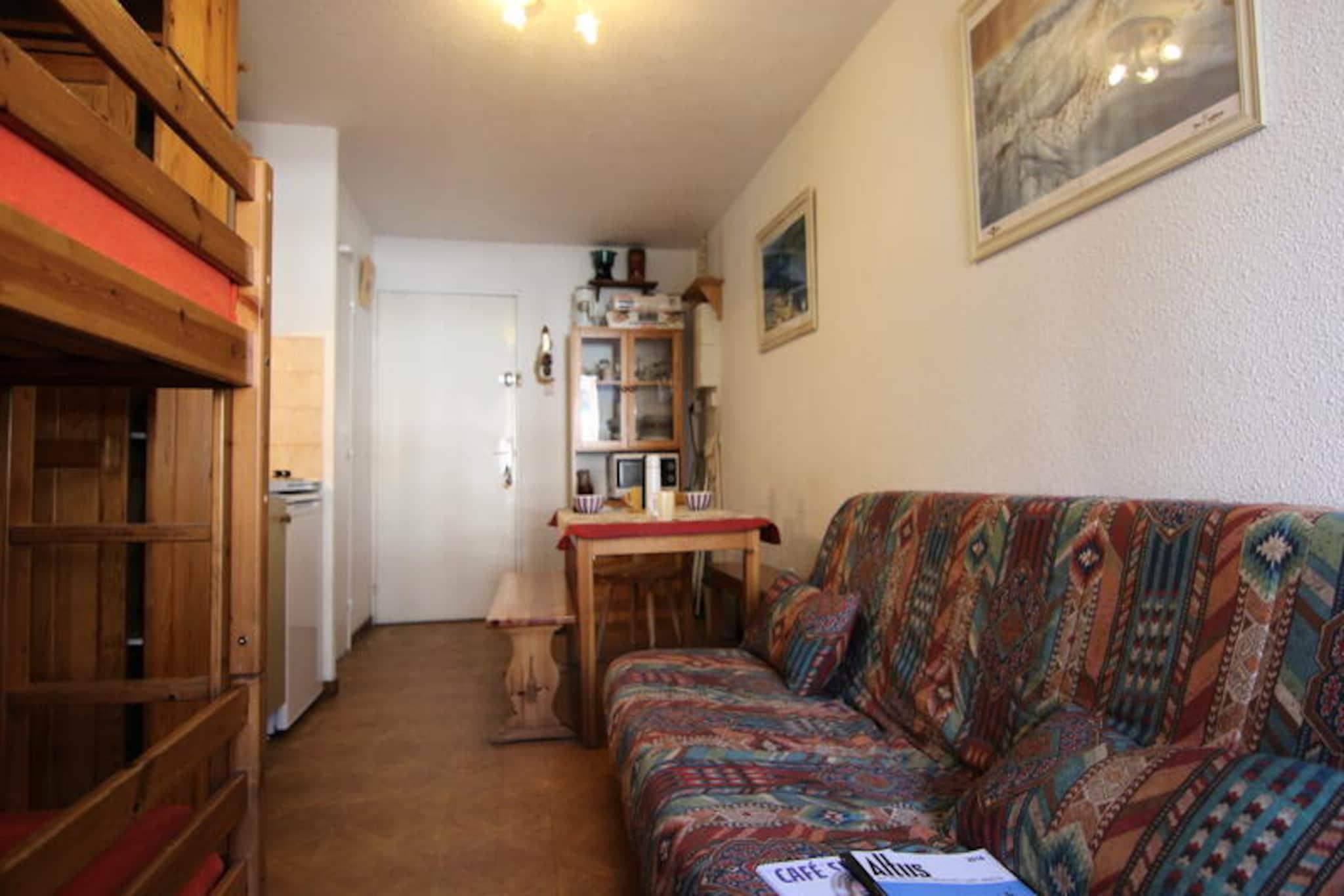 Denne hyggelige lejlighed i Les Cimes de Caron-residensen ligger ved indgangen til det pulserende Arolles-distrikt og tilbyder en perfekt blanding af komfort og bekvemmelighed til din alpine ferie. Med sin førsteklasses beliggenhed nær indgangen til resortet, kun få skridt fra Carons sports- og indkøbscenter, lokale restauranter og busstationen, hvilket gør den til en ideel base for at udforske området. Uanset om du er her for pisterne eller den rolige bjergatmosfære, sætter denne residens scenen for uforglemmelige øjeblikke. Lejligheden, der ligger på anden sal med elevatoradgang, er omhyggeligt designet til at rumme op til fire gæster. Dens 24 m² store rum har et veludstyret tekøkken med komfur, køleskab, ovn og mikrobølgeovn, så du nemt kan tilberede måltider. Stuen indbyder til afslapning med en komfortabel sofa, tv og et soveområde med køjesenge. En åben kahyt med en dobbeltseng giver ekstra sovepladser, mens badeværelset har bruser, håndvask og toilet. Gå ud på den nordvendte balkon for at nyde den friske alpine luft og de rolige omgivelser. Skientusiaster vil sætte pris på den direkte adgang til pisterne fra boligens skibokse og den korte 50 meter lange gåtur tilbage fra Cairn-gondolen. For ekstra bekvemmelighed ligger SKISET Goitschel-butikken lige på den anden side af gaden i Altineige-boligen, hvilket sikrer, at du har alt, hvad du behøver til dine eventyr. Garageplads kan også lejes, hvilket gør det nemt at ankomme og finde sig til rette. Uanset om du er tiltrukket af spændingen ved skiløb, charmen i Arolles-distriktet eller den nemme adgang til vigtige faciliteter lige uden for døren, tilbyder denne lejlighed et indbydende tilflugtssted for din bjergferie. Oplev magien i de franske alper med al komfort lige ved hånden.