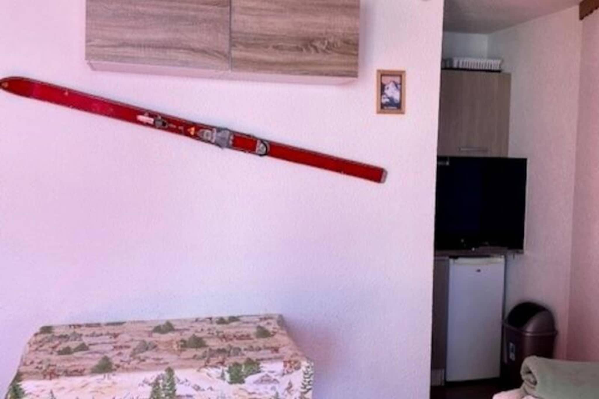 Ved indgangen til det pulserende Arolles-distrikt tilbyder dette charmerende studie i Les Cimes de Caron-residensen et hyggeligt tilflugtssted for dine alpine eventyr. Med sin sydvendte balkon kan du nyde sollyset og den storslåede udsigt over de majestætiske tinder, hvilket skaber den perfekte atmosfære til afslapning efter en dag på pisterne. Uanset om du er her for vinterspænding eller sommerro, placerer denne residens dig i hjertet af begivenhederne i de berømte franske alper. Studiet er designet til op til tre gæster og har en praktisk indretning med en sovesofa, en enkeltseng og et veludstyret tekøkken med mikrobølgeovn, køleskab og elektrisk komfur. Stuen inviterer dig til at slappe af med et tv og komfortable siddepladser, mens badeværelset tilbyder moderne bekvemmeligheder med bruser og toilet. Beliggenheden på sjette sal, der er tilgængelig med elevator, sikrer både privatliv og bekvemmelighed, hvilket gør det til et ideelt valg for par eller små grupper, der søger et fredeligt, men forbundet ophold. Træd udenfor, og du finder direkte adgang til pisterne lige fra residensens skibokse, med Cairn-gondolen kun en kort gåtur væk. I nærheden ligger Caron sports- og shoppingcenter, der tilbyder alt fra restauranter til shoppingterapi, mens SKISET Goitschel-butikken i Altineige-residensen dækker alle dine skibehov. Busstationen ligger bekvemt i nærheden, hvilket sikrer nem transport inden for og uden for byen. Uanset om du er tiltrukket af spændingen ved skiløb, charmen i alpelandsbyer eller roen ved bjergudsigter, er Les Cimes de Caron den perfekte base for uforglemmelige minder i de franske alper.