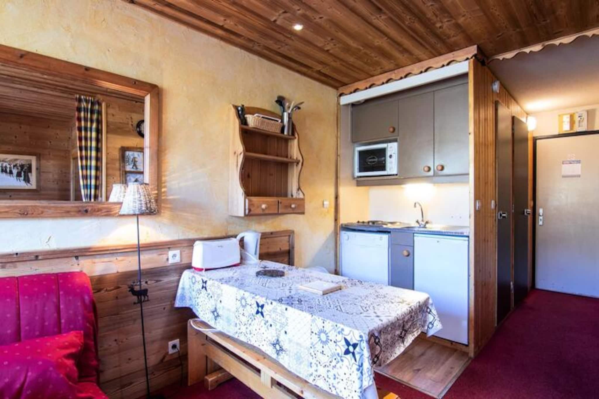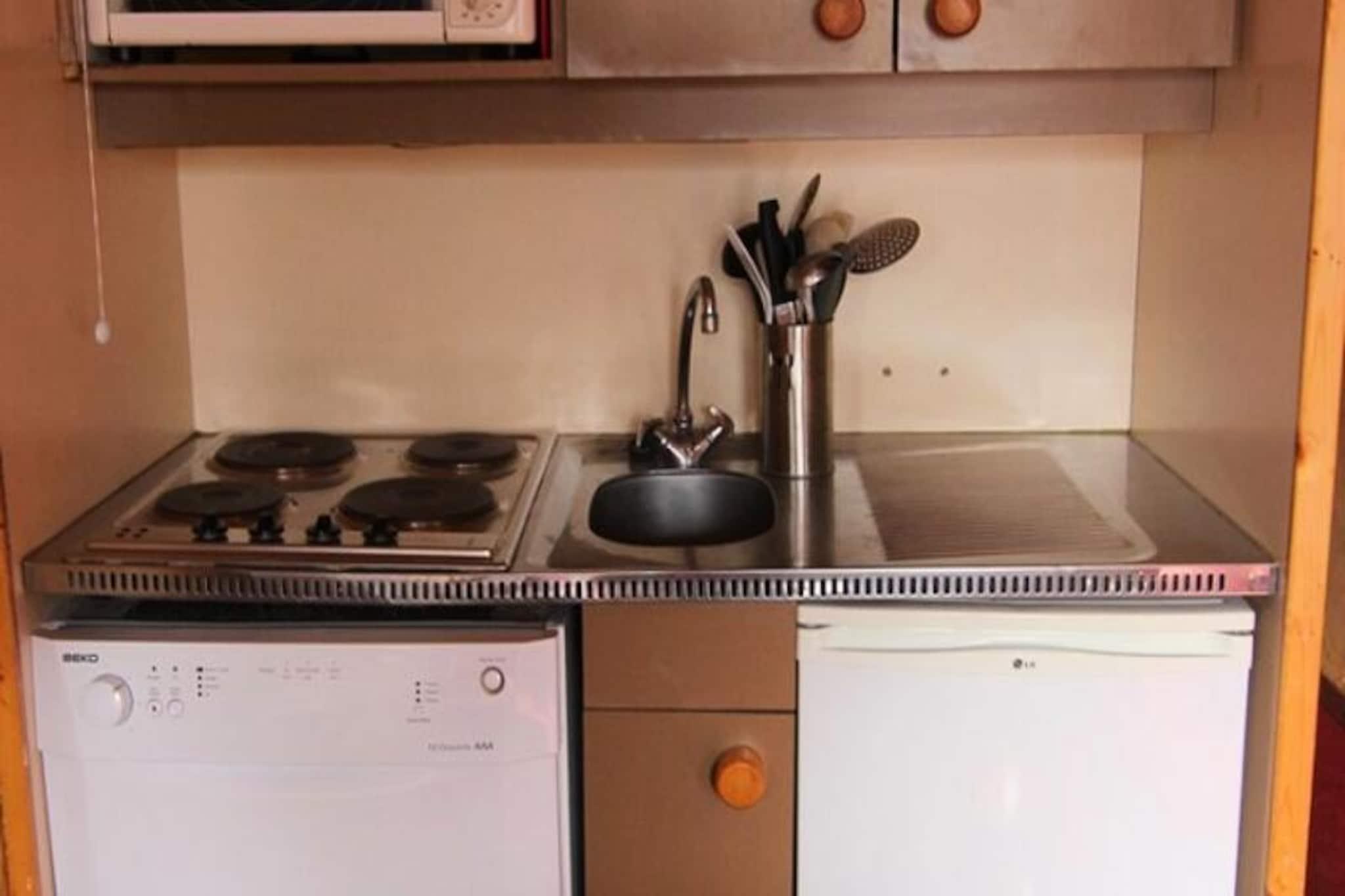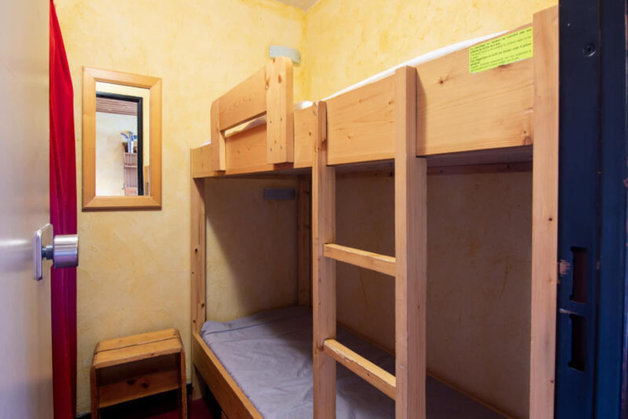 Denne indbydende lejlighed i Les Lauzières-residensen, der soler sig i Soleil-distriktets solbeskinnede charme, tilbyder et ideelt tilflugtssted for bjergentusiaster. Beliggende kun 50 meter fra busstationen og få skridt fra Caron-galleriet og sportscentret, kombinerer den bekvemmelighed med feriestedets pulserende energi. Uanset om du er her for at stå på ski eller blot nyde den alpine atmosfære, vil du være perfekt placeret til at udforske pisterne, som kun ligger 100 meter væk. Den sydvendte balkon tilbyder et roligt sted at nyde den betagende udsigt og den friske bjergluft. \n\nDenne hyggelige lejlighed på 30 m² er designet til op til fem gæster og ligger på 5. sal med elevator. Stuen har en sovesofa og spiseplads, hvilket skaber et indbydende rum til afslapning efter en dag med eventyr. Tekøkkenet er udstyret med ovn, opvaskemaskine, elektrisk komfur og køleskab, så du nemt kan tilberede solide måltider. Soveværelset tilbyder fleksible sovearrangementer med en sovesofa og en udtrækssofa, mens kabinen har køjesenge, hvilket gør den ideel til familier eller små grupper. Et tv-område med gardin giver et strejf af privatliv, og badeværelset med badekar og separat toilet sikrer komfort for alle gæster.\n\nResidensens nærhed til vigtige faciliteter som skiudlejning og resortets betalte Wi-Fi-service sikrer et problemfrit ophold. Ud over lejligheden inviterer Soleil-distriktet dig til at udforske dens livlige atmosfære, fra travle gallerier til det nærliggende sportscenter. Uanset om du står på ski ned ad uberørte pister eller nyder sommervandreture, tilbyder denne beliggenhed charme året rundt.\n\nVælg denne charmerende lejlighed til din næste alpine ferie og skab uforglemmelige minder i hjertet af de franske alper.