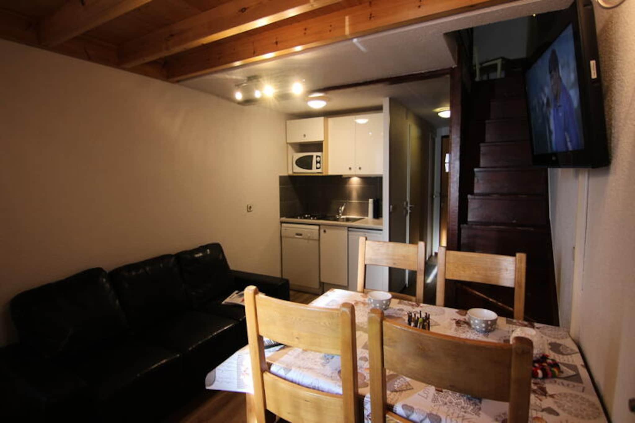 Badet i Soleil-distriktets gyldne nuancer tilbyder denne charmerende lejlighed i Silveralp-residensen et hyggeligt alpint tilflugtssted med direkte adgang til pisterne lige på den anden side af vejen. Perfekt placeret i den nederste del af feriestedet kombinerer den bekvemmelighed med en fantastisk udsigt fra den sydvestvendte balkon, hvor du kan nyde de omkringliggende tinders skønhed og den friske bjergluft. Uanset om du er her for et vintereventyrland eller sommereventyr, inviterer denne ejendom dig til at opleve magien i de franske alper i komfort og stil. \n\nLejligheden strækker sig over to etager og tilbyder et smart designet opholdsrum på 18 m² plus en ekstra mezzanin på 18 m². Tekøkkenet er udstyret med moderne bekvemmeligheder, herunder opvaskemaskine, mikrobølgeovn, elektrisk komfur og køleskab, hvilket gør det nemt at tilberede solide måltider efter en dag udendørs. Stuen har et tv, en komfortabel sofa og en spiseplads, hvilket skaber et indbydende rum til afslapning og ro. Ovenpå indeholder mezzaninen en kabine med en udtrækssovesofa og et soveværelse med to enkeltsenge, hvilket sikrer afslappende nætter for op til fire gæster. Badeværelset er udstyret med badekar og håndvask, mens toilettet er praktisk separat.\n\nBeliggende i nærheden af ??butikker og restauranter, er alt hvad du behøver kun en kort gåtur væk. Feriestedets centrum er let tilgængeligt via elevator og gangbro, hvilket bidrager til bekvemmeligheden af ??dit ophold. Om vinteren kan du nyde skiløb på uberørte pister, mens sommeren åbner op for en verden af ??vandrestier, mountainbiking og betagende udsigter. Silveralp-residensen er din port til uforglemmelige alpine oplevelser, uanset om du søger spændende eventyr eller rolige øjeblikke i naturen.\n\nMed sin førsteklasses beliggenhed, gennemtænkte faciliteter og indbydende atmosfære er denne lejlighed det perfekte valg for par, familier eller små grupper, der ønsker at fordybe sig i charmen ved de franske alper.