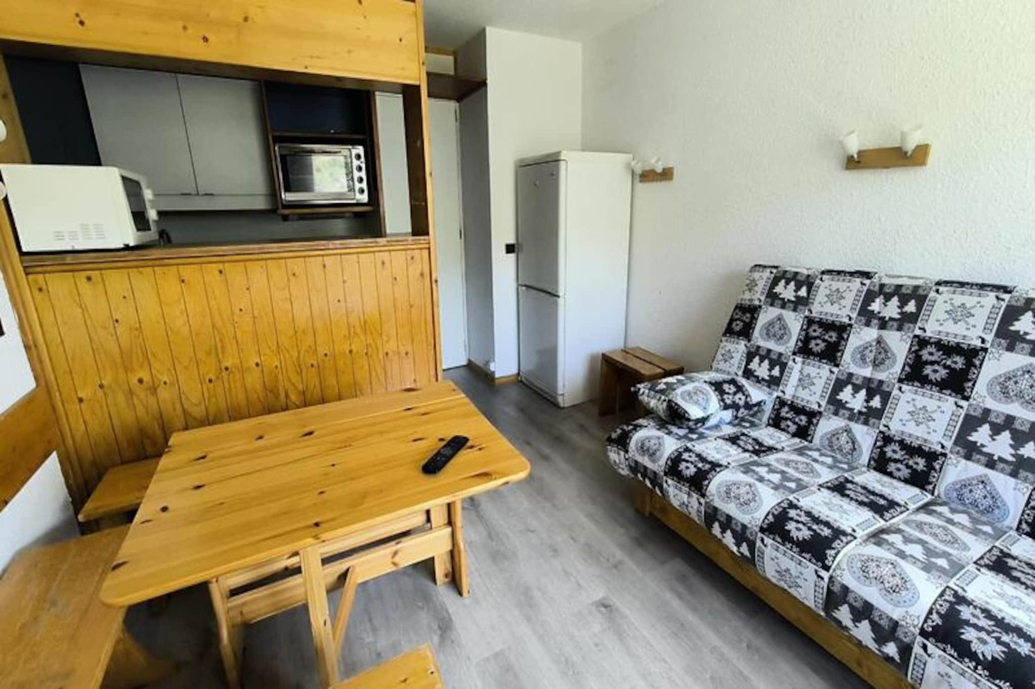 I hjertet af Soleil-Machüu-distriktet, hvor charmen ved alpint liv møder moderne bekvemmeligheder, tilbyder denne hyggelige toværelseslejlighed det perfekte tilflugtssted til din bjergferie. Beliggende i den berømte Les Temples du Soleil-residens, tilbyder den direkte adgang til pisterne, hvilket gør den til et ideelt valg for skientusiaster, der ønsker at maksimere deres tid i sneen. Forestil dig at træde ud af dit skirum og glide direkte ud på de uberørte pister i feriestedet, alt imens du nyder den betagende udsigt over de omkringliggende tinder. Denne gennemtænkt designede lejlighed, der ligger på 3. og 4. sal i residensen, har komfortabel plads til op til fire gæster. Stuen har en blød sovesofa og et tv, hvilket skaber et indbydende rum at slappe af efter en dag med eventyr. Soveværelset med to enkeltsenge sikrer en god nats søvn. Et veludstyret tekøkken med ovn, mikrobølgeovn, stort køleskab, elektrisk komfur og opvaskemaskine giver dig mulighed for at tilberede solide måltider til at nyde på den sydvendte balkon, hvor de solbeskinnede skråninger skaber en fantastisk baggrund. Badeværelset har badekar og håndvask, mens et separat toilet øger bekvemmeligheden. Les Temples du Soleil tilbyder en række faciliteter på stedet, herunder et spillerum, restaurant, bar, sportsbutik og minimarked, så alt hvad du behøver er lige ved hånden. For dem, der søger afslapning, har ejendommen et fitnessrum, jacuzzi, sauna og dampbad, som er tilgængelige mod et gebyr. Det pulserende Soleil-Machüu-distrikt er også et centrum for aktivitet med sin livlige afterskiing-scene og nemme adgang til feriestedets attraktioner. Uanset om du er her for at grave dig gennem sneen, udforske de alpine løjper eller blot nyde den fredfyldte bjergatmosfære, er denne lejlighed din port til en uforglemmelig ferieoplevelse i de franske alper.