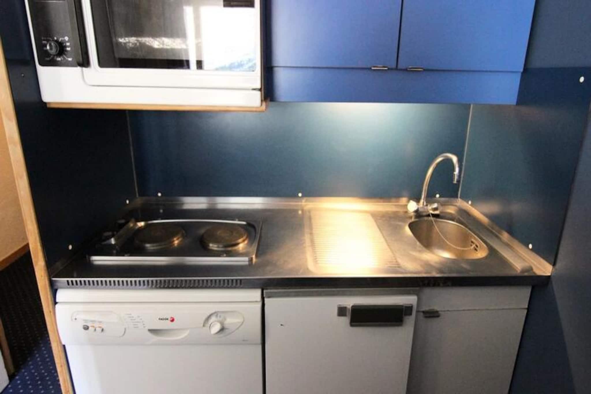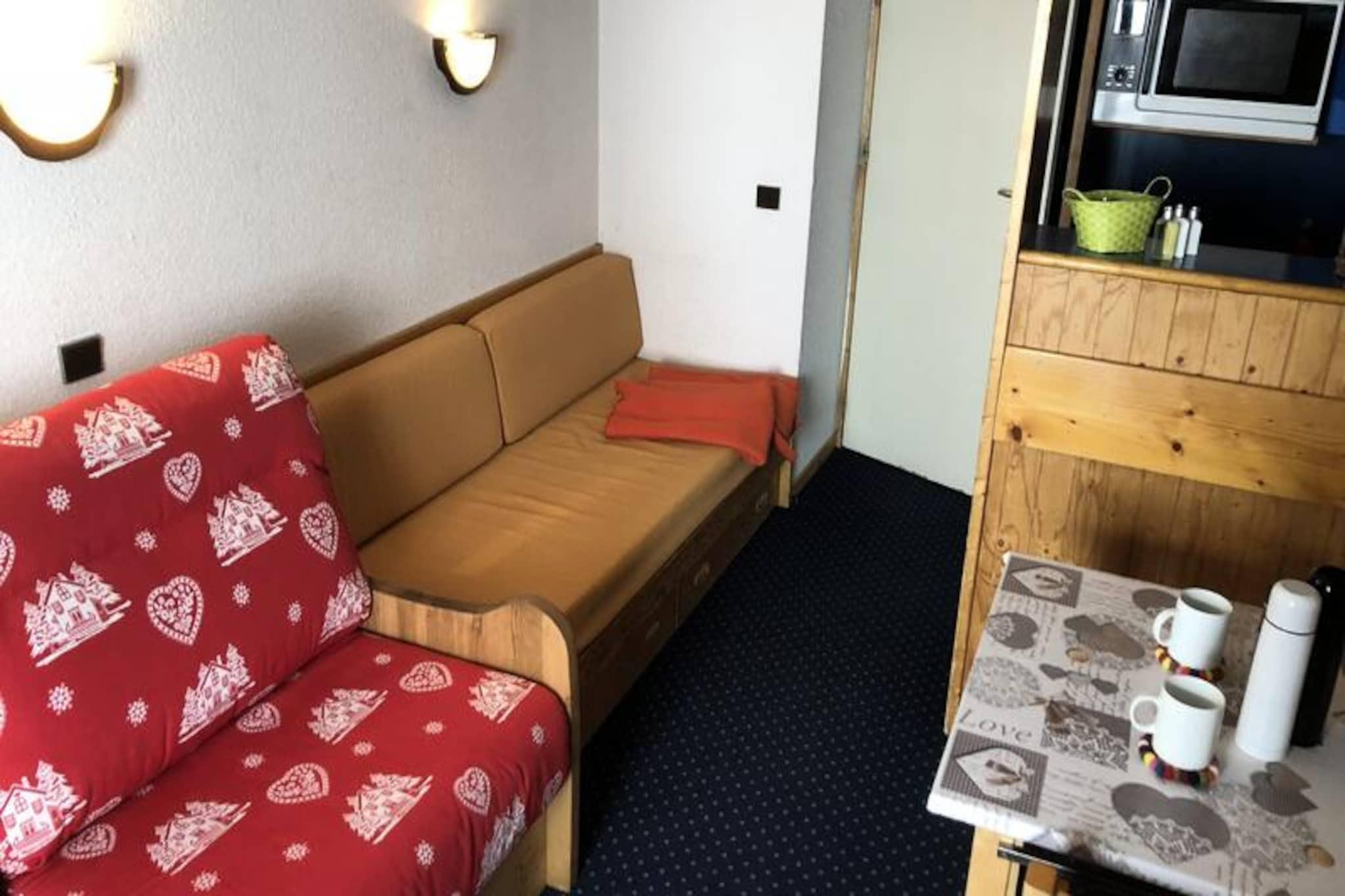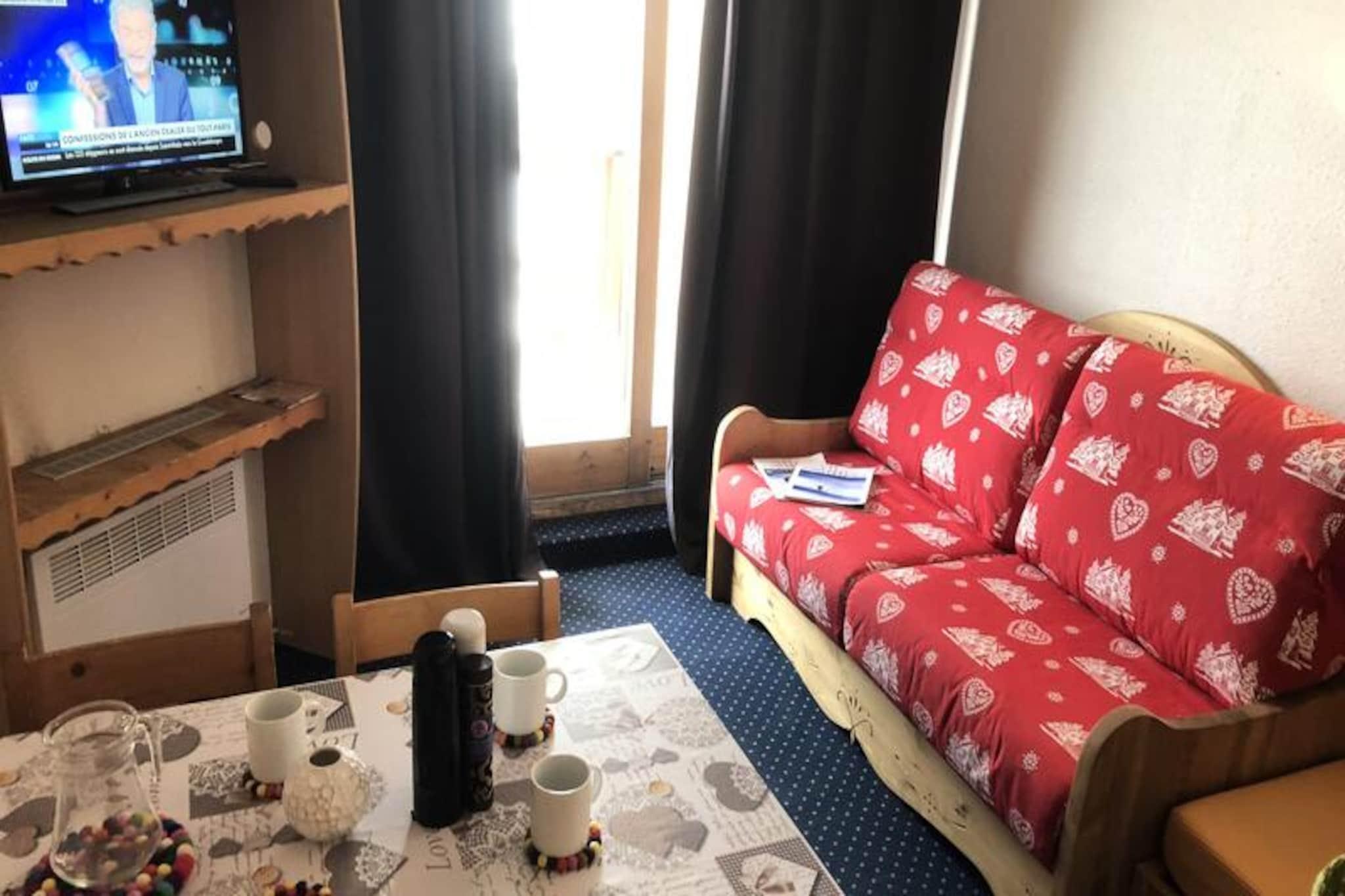 I hjertet af Soleil-Machüu-distriktet, hvor charmen fra de franske alper møder moderne bekvemmeligheder, tilbyder denne hyggelige lejlighed det perfekte tilflugtssted for din bjergferie. Beliggende i den berømte Les Temples du Soleil-residens finder du alt, hvad du behøver, kun få skridt væk, fra et spillerum og restaurant til en bar, sportsbutik og minimarked, hvilket sikrer et problemfrit og behageligt ophold. Residensen tilbyder også adgang til et fitnessrum, jacuzzi, sauna og dampbad mod et gebyr, hvilket tilføjer et strejf af afslapning til dit alpine eventyr. Denne 28 m² store 2-værelses lejlighed, beliggende på 4. sal på skråningen og 5. sal i en bygning med elevator, har komfortabel plads til op til fire gæster. Den sydvendte balkon inviterer dig til at nyde solen og beundre den fantastiske udsigt over bjergene. Indenfor er tekøkkenet udstyret med mikrobølgeovn, induktionskogeplade, køleskab og opvaskemaskine, hvilket gør madlavning til en leg. Stuen har et fjernsyn, en sovesofa (190x140) og en enkelt sovesofa, mens soveværelset tilbyder to enkeltsenge (185x80) til en god nats søvn. Et moderne badeværelse med bruser og håndvask samt et separat toilet sikrer bekvemmelighed for alle gæster. Med direkte adgang til pisterne via skibokse er denne ejendom en drøm for skientusiaster. Tilbring dine dage med at snowboarde i uberørt sne og dine aftener med at slappe af i din lejlighed eller udforske de livlige faciliteter i boligen. Uanset om du er her for spændingen ved skiløb eller roen i bjergene, lover Les Temples du Soleil en uforglemmelig alpin oplevelse.