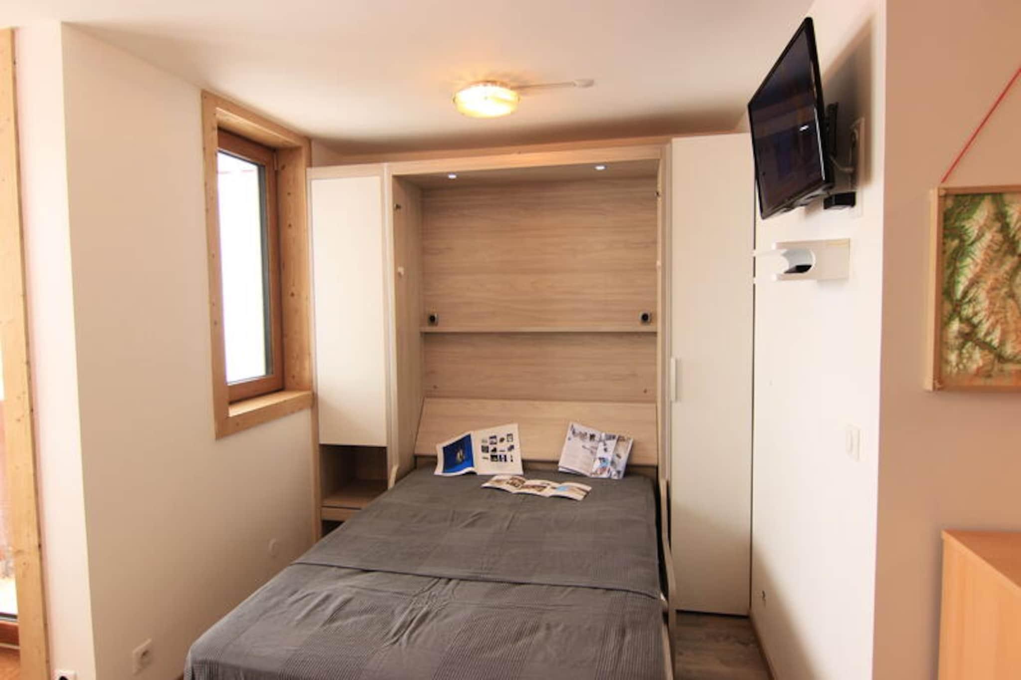 Ved indgangen til det livlige Arolles-kvarter inviterer denne charmerende studiohytte dig til at opleve magien i de franske alper i komfort og stil. Med sin sydvendte altan med solrig udsigt og en førsteklasses beliggenhed kun 30 meter fra pisterne er dette hyggelige fristed perfekt for par eller små familier, der søger en uforglemmelig alpin ferie. Joker-boligen, der er bekvemt beliggende tæt på busstationen, indkøbscentret og Caron-idrætscentret, sikrer, at alt, hvad du har brug for, er inden for rækkevidde. Træd indenfor i denne gennemtænkte 25 m² store studio-hytte, der ligger på niveau -3 med elevatoradgang. Opholdsstuen har en nedfældelig seng, der kan omdannes til en komfortabel dobbeltseng, mens den separate hytte har køjesenge, hvilket gør den ideel til op til fire gæster. Tekøkkenet er fuldt udstyret med ovn, kombineret mikroovn, elektrisk komfur, køleskab og opvaskemaskine, så du kan tilberede lækre måltider efter en dag fuld af eventyr. Badeværelset har brusebad og håndvask samt separat toilet for ekstra bekvemmelighed. Moderne faciliteter såsom tv og effektiv opvarmning sikrer et hyggeligt og afslappende ophold. Beliggenheden er uovertruffen for skiløbere, med pisterne kun få skridt væk og Skiset-butikken i den nærliggende Altineige-boligkompleks, hvor du kan få alt det udstyr, du har brug for. Udover skiløb byder Arolles-kvarteret på en livlig atmosfære med nem adgang til butikker, restauranter og underholdning. Uanset om du udforsker Caron-idrætscentret eller nyder après-ski i hjertet af feriestedet, er der altid noget at lave. Vælg denne dejlige studiohytte på grund af dens uovertrufne beliggenhed, praktiske faciliteter og løftet om uforglemmelige alpine minder. Uanset om du er her for at suse gennem uberørt sne eller blot nyde bjergstemningen, er dette din perfekte base for en magisk ferie.