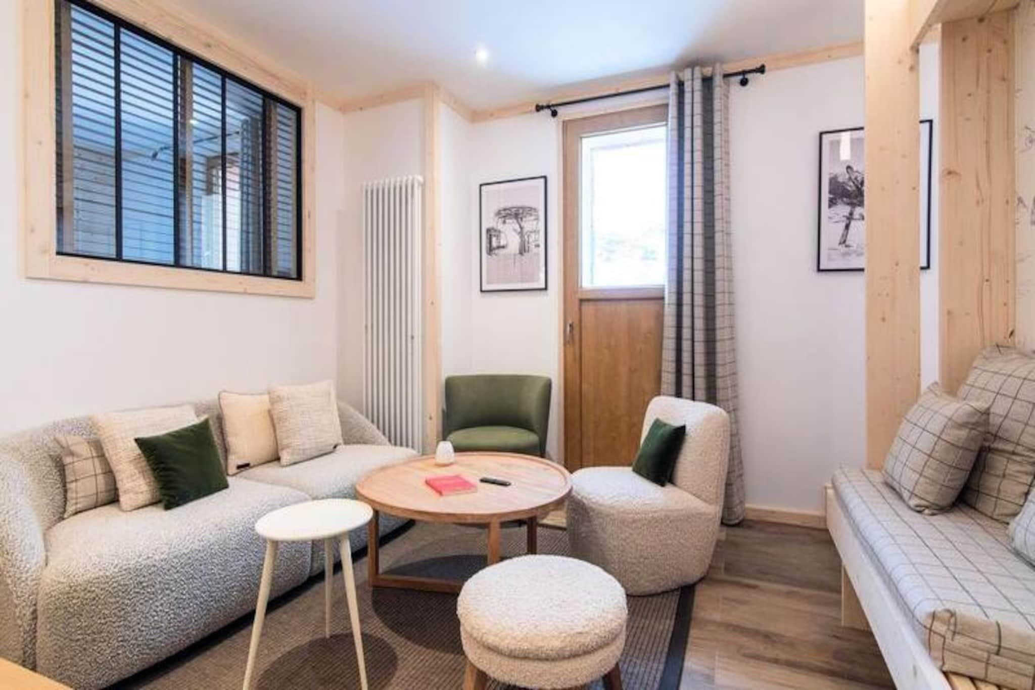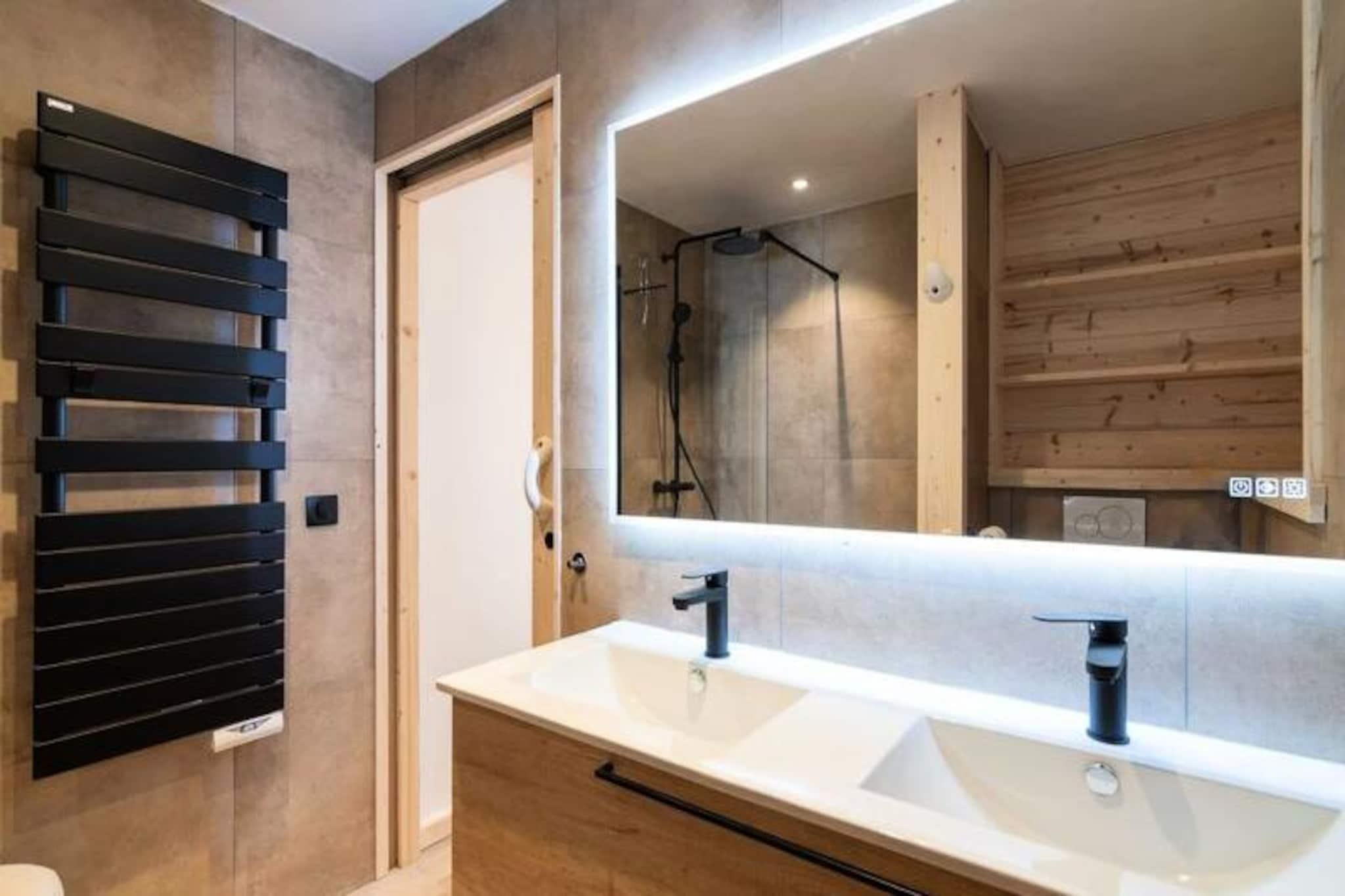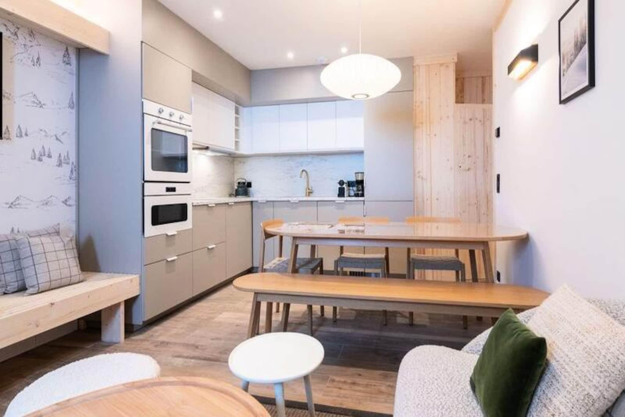 Højt over Val Thorens' travle gader tilbyder Chalet Rosael et roligt tilflugtssted i det eksklusive Balcons-distrikt. Her skaber den friske alpine luft og panoramaudsigten over de omkringliggende tinder en atmosfære af ren ro. Uanset om du planlægger en ferie med venner eller familie, tilbyder dette chalet den perfekte balance mellem privatliv og samhørighed med flere lejligheder, der passer til din gruppes størrelse og præferencer. Fra sin høje beliggenhed kan du nemt komme til det livlige hjerte af feriestedet, kun 10 minutters gang væk, eller nyde bekvemmeligheden ved nærliggende butikker, restauranter og skiløjper. Træd ind i denne smukt indrettede lejlighed på 65 m², hvor gennemtænkt design møder moderne komfort. Den rummelige opholdsstue på 20 m² inviterer dig til at slappe af i den hyggelige lounge, dele måltider i spisestuen eller tilberede kulinariske lækkerier i det fuldt udstyrede køkken, komplet med high-end apparater som en Nespresso-maskine og Samsung smart-TV. Indretningen er ideel til grupper og har tre velindrettede soveværelser: en suite med dobbeltseng, påklædningsværelse og eget badeværelse; et dobbeltværelse; og et værelse med enkeltseng og køjeseng, perfekt til børn eller venner. Yderligere faciliteter inkluderer et skirum med opvarmet støvleopbevaring, der sikrer, at dit udstyr er klar til pisterne hver morgen. Ud over lejligheden kan gæsterne slappe af i boligens eksklusive wellness-område med swimmingpool, sauna og hammam. Efter en dag på ski eller udforskning af de betagende landskaber er dette det ultimative sted at lade op. Chaletens beliggenhed giver også nem adgang til Val Thorens' pulserende afterski-scene samt muligheder for vandreture, sneskovandring og andre alpine eventyr. Chalet Rosael er mere end bare et sted at bo; det er en port til uforglemmelige bjergminder. Med sin blanding af luksus, komfort og uovertruffen beliggenhed lover det en alpin flugt som ingen anden.