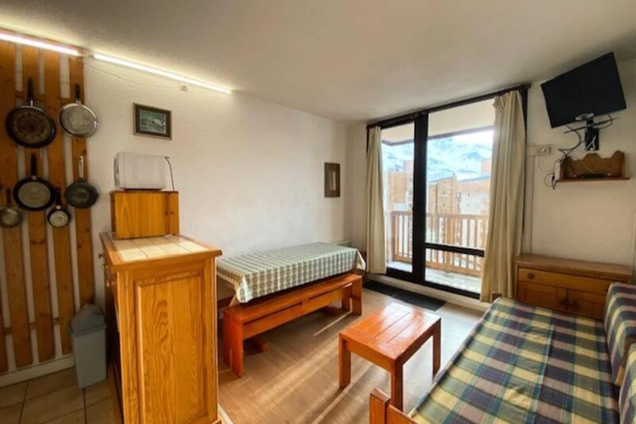Højt over de majestætiske tinder i de franske alper tilbyder denne hyggelige studiohytte i LA ROCHE BLANCHE Residence et varmt og indbydende tilflugtssted i hjertet af Val Thorens. Med sin sydvestvendte balkon vågner du op til en betagende udsigt over skisportsstedet og nyder den alpine sol hele dagen. Uanset om du er her for spændende skieventyr eller en fredelig bjergflugt, placerer denne ejendom dig kun 50 meter fra pisterne, hvilket sikrer ubesværet adgang til et af de mest berømte skiområder i verden. Det pulserende Caron-indkøbscenter og sportsfaciliteter er også bekvemt tæt på, hvilket bidrager til dit opholds bekvemmelighed og nydelse. Indenfor er studioet omhyggeligt designet til at rumme op til fem gæster. Opholdsstuen har en udtræksseng, mens hytten tilbyder hyggelige køjesenge, hvilket gør den ideel til familier eller små grupper. Det åbne køkken er udstyret med moderne faciliteter, herunder køleskab, ovn, kogeplader og opvaskemaskine, så du kan tilberede solide måltider efter en dag med alpin udforskning. Det separate toilet og badeværelse øger privatlivets fred og bekvemmelighed og sikrer et behageligt ophold for alle. Ud over boligen inviterer Val Thorens dig til at udforske den livlige atmosfære med afterskiing-steder, gourmetrestauranter og butikker kun få skridt væk. Om vinteren lover pisterne uendelig skiløbsspænding, mens sommeren forvandler regionen til et paradis for vandreture, cykling og betagende naturture. Uanset om du søger eventyr eller afslapning, er denne studiohytte din port til det bedste af Alperne. Vælg denne charmerende ejendom for dens uovertrufne beliggenhed, fantastiske udsigt og hyggelige atmosfære, og skab uforglemmelige minder i hjertet af verdens højest beliggende skisportssted.