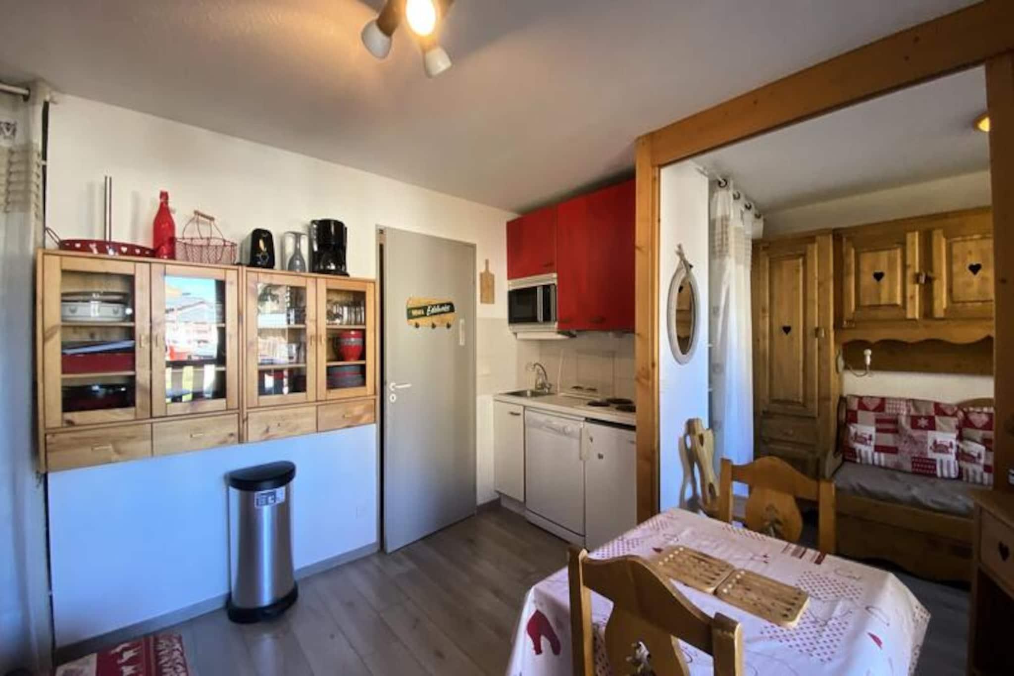 Denne charmerende lejlighed i Residence LA REINE BLANCHE ligger ved kanten af ??en rolig blind vej i det pulserende feriested Val Thorens og tilbyder en perfekt blanding af ro og bekvemmelighed. Beliggende ved indgangen til feriestedet med direkte adgang til pisterne er det et ideelt tilflugtssted for skientusiaster, der søger ubesværede alpine eventyr. Den vestvendte balkon inviterer dig til at slappe af, mens du nyder den betagende udsigt over bjergene, mens solen går ned over bjergtoppene. Denne hyggelige lejlighed på 29 m², beliggende på 1. sal i boligen, er omhyggeligt designet til at rumme op til fire gæster. Køkken-alrummet har en komfortabel sovesofa, mens det separate soveværelse har en udtrækssovesofa, hvilket sikrer fleksible sovemuligheder. Køkkenet er udstyret med moderne bekvemmeligheder såsom køleskab, opvaskemaskine, mikrobølgeovn og elektrisk komfur, hvilket gør det nemt at tilberede solide måltider efter en dag på pisterne. Et badeværelse med separat toilet bidrager til rummets praktiske anvendelighed og sikrer et behageligt ophold for alle. Kun en kort gåtur væk finder du Caron indkøbscenter, der summer af butikker, restauranter og et sportscenter til afterskiing. Den nærliggende busstation sikrer nem adgang til at udforske den bredere region, mens pisterne bogstaveligt talt ligger lige uden for døren, hvilket tilbyder uovertruffen bekvemmelighed for skiløbere og snowboardere. Uanset om du er her for at grave dig gennem uberørt sne, udforske den livlige feriestedsatmosfære eller blot slappe af i de fredfyldte bjergomgivelser, lover denne lejlighed i Residence LA REINE BLANCHE en uforglemmelig alpin ferie. Book dit ophold i dag, og oplev magien i Val Thorens i enhver sæson.