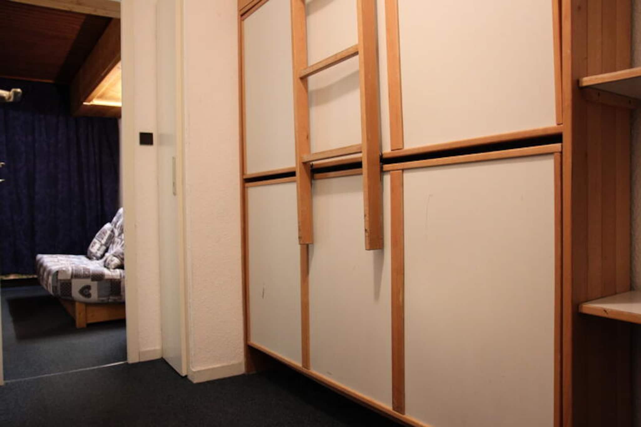 I den rolige charme af LE SCHUSS Residence, beliggende i et fredeligt kvarter i de franske alper, tilbyder denne hyggelige studiohytte et dejligt alpint tilflugtssted for op til fem gæster. Forestil dig morgener fyldt med sollys, der strømmer gennem den syd-/østvendte veranda, hvor du kan nippe til din kaffe og nyde den friske bjergluft. Lige på den anden side af gaden lokker pisterne og lover dage med spændende skiløb og snefyldte eventyr, mens det nærliggende indkøbscenter giver nem adgang til restauranter, butikker og essentielle faciliteter som et apotek. Denne beliggenhed balancerer ro med tilgængelighed, hvilket gør den til en ideel base for din alpine flugt. \n\nStudiohytten, der ligger på anden sal med elevatoradgang, er omhyggeligt designet til at maksimere komfort og funktionalitet. Den har en sovealkove med to køjesenge, en køjeseng i gangen og en sovesofa i stuen, der tilbyder fleksible sovemuligheder for familier eller små grupper. Det åbne køkken er udstyret med moderne apparater, herunder køleskab, komfur, ovn og opvaskemaskine, hvilket sikrer, at du har alt, hvad du behøver for at tilberede solide måltider efter en dag på pisterne. Den lukkede veranda tilføjer et hyggeligt præg, så du kan nyde udsigten over bjergene i komfort, uanset årstiden. \n\nUd over boligen er det omkringliggende område et paradis for friluftsentusiaster. Uanset om du står på ski om vinteren eller udforsker naturskønne stier om sommeren, tilbyder de franske alper uendelige muligheder for eventyr. Det nærliggende indkøbscenter sikrer bekvemmelighed, med restauranter, der serverer lækre lokale retter, og butikker, der tilbyder alt, hvad du behøver til dit ophold. For dem, der søger afslapning, er den fredelige atmosfære i kvarteret perfekt til at slappe af og genoprette forbindelsen til naturen. \n\nVælg LE SCHUSS Residence for en mindeværdig alpeferie, hvor komfort, bekvemmelighed og de franske alpers skønhed forenes for at skabe en uforglemmelig oplevelse.
