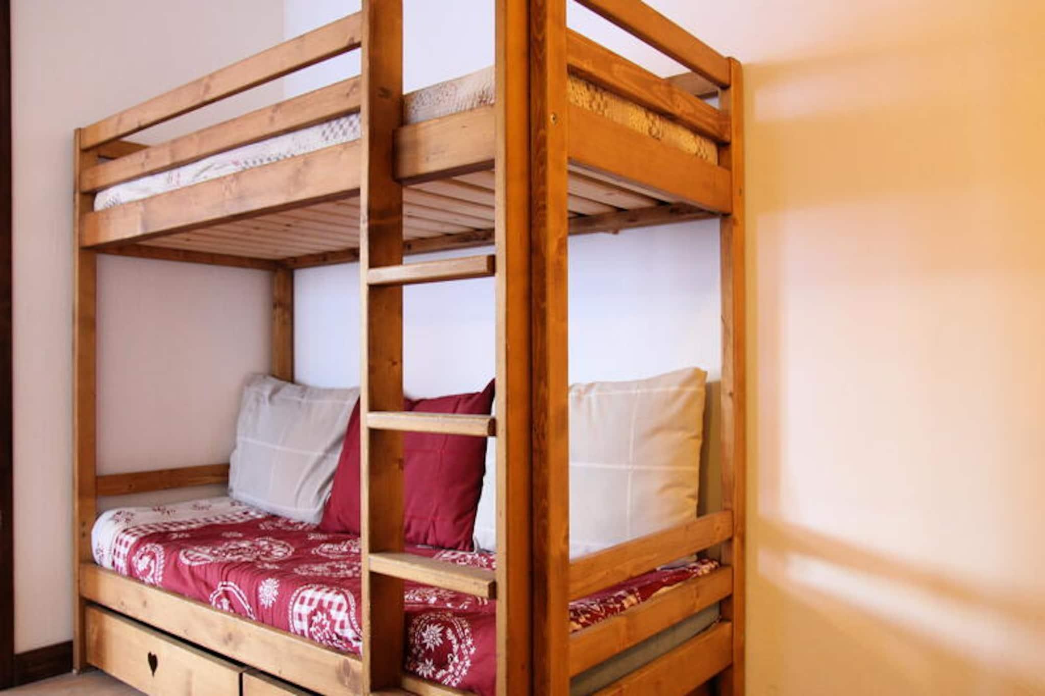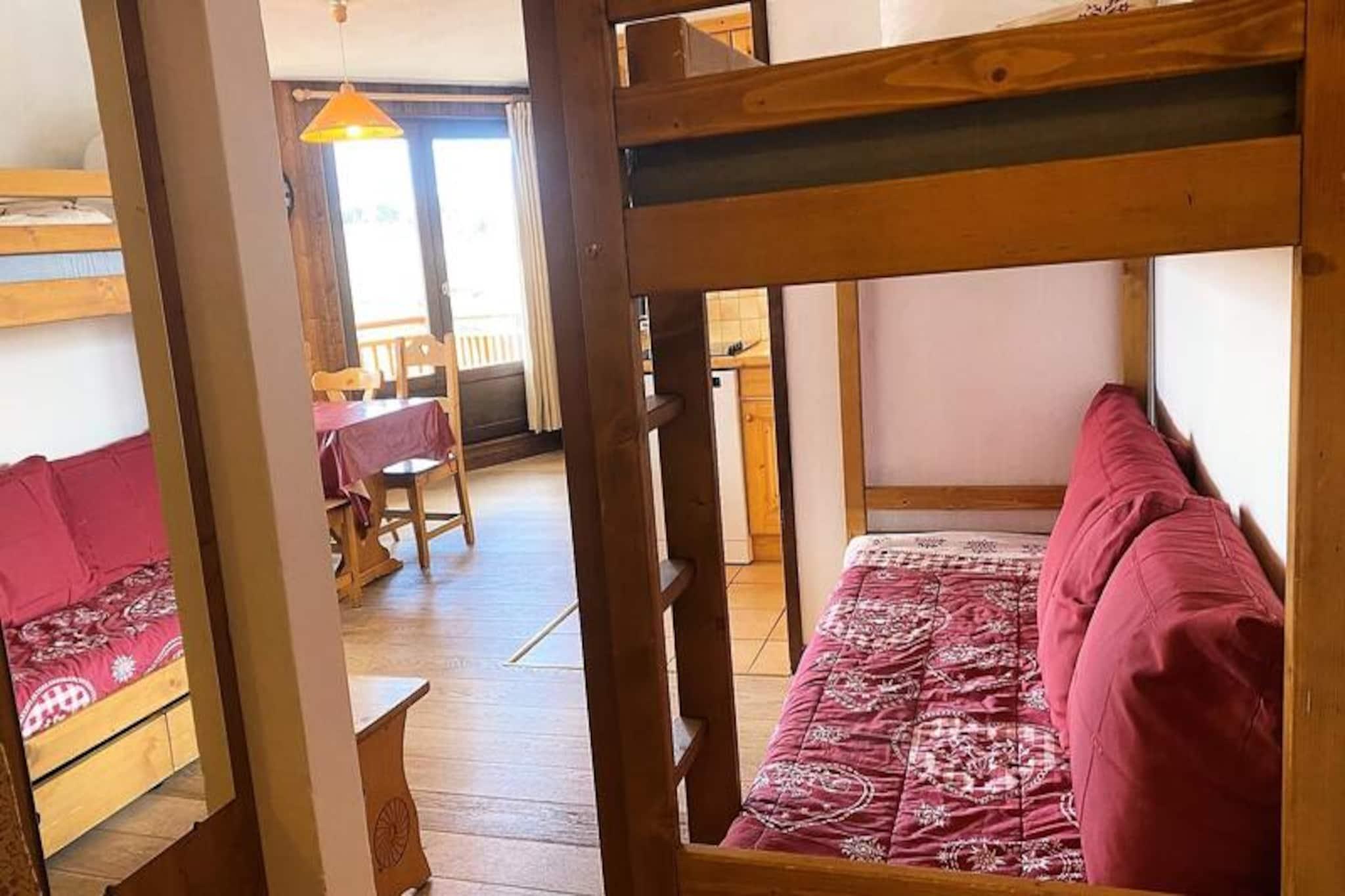 Højt over det pulserende feriested Val Thorens tilbyder denne charmerende lejlighed i LES HAUTS DE CHAVIERE-residensen et hyggeligt tilflugtssted med betagende udsigt over de omkringliggende bjerge og det berømte skiområde. Ejendommen, der ligger på 6. sal, kan prale af tre sydvendte altaner, hvor du kan nyde den alpine skønhed og den friske bjergluft, hvilket gør hvert øjeblik uforglemmeligt. Med pisterne kun 50 meter væk er du perfekt placeret til problemfri skieventyr i en af ??verdens mest berømte skidestinationer. Indenfor er den 45 m² store lejlighed omhyggeligt designet til at rumme op til seks gæster. Planløsningen inkluderer et komfortabelt soveværelse med to enkeltsenge, to køjesenge i entréen og en udtrækssovesofa i stuen, der kan laves om til to enkeltsenge. Køkkenet er fuldt udstyret med moderne apparater såsom ovn, mikrobølgeovn, køleskab, komfur og opvaskemaskine, hvilket sikrer, at du har alt, hvad du behøver for at tilberede solide måltider efter en dag på pisterne. Et separat toilet og badeværelse bidrager til bekvemmeligheden, mens det varme og indbydende opholdsrum er det perfekte sted at slappe af og koble fra. Boligen er ideelt placeret nær Place de Péclet og Péclet indkøbscenter, hvilket giver nem adgang til butikker, restauranter og afterski-aktiviteter. Uanset om du er her for at slentre gennem de uberørte pister, udforske den livlige feriestedsatmosfære eller blot nyde den fredfyldte bjergudsigt, placerer denne lejlighed dig i hjertet af det hele. Vælg dette alpine feriested for dets uovertrufne beliggenhed, fantastiske udsigt og hyggelige komfort - en perfekt base for at skabe dyrebare minder i de franske alper.