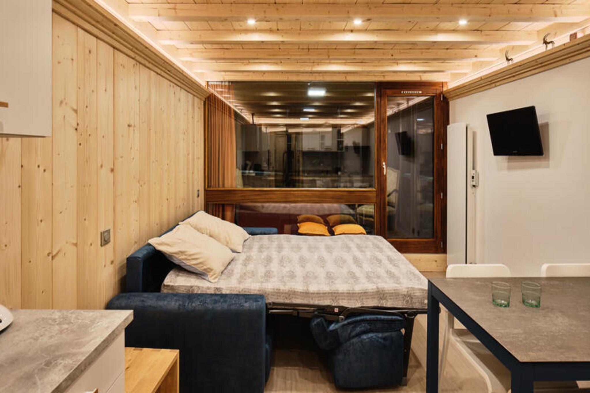 Højt over Val Thorens' travle gader inviterer denne charmerende studiohytte dig til at opleve magien i de franske alper i komfort og stil. Ejendommen ligger i LE SERAC-residensen på Place de Péclet og er perfekt placeret nær Péclet-indkøbscentret med nem adgang til restauranter, butikker og essentielle tjenester som et apotek. Uanset om du er her for spændende skieventyr eller rolige alpine udflugter, er dette solrige tilflugtssted den ideelle base for din bjergferie. \n\nStudioet blev fuldstændig renoveret i efteråret 2024 og strækker sig over cirka 28 m² og er omhyggeligt designet til at maksimere plads og komfort. Det har en hyggelig hytte med to enkeltsenge, en enkeltseng på gangen og en sovesofa i stuen, hvilket gør det perfekt til små familier eller vennegrupper. Den sydvestvendte veranda bader rummet i naturligt lys og skaber en varm og indbydende atmosfære. Et fuldt udstyret køkken giver dig mulighed for at tilberede lækre måltider, mens det separate brusebad og toilet sikrer bekvemmelighed under dit ophold. Skibokse i stueetagen tilføjer praktiske fordele for vintersportsentusiaster. \n\nTræd udenfor, og du vil finde dig selv kun en gadeovergang fra pisterne, klar til at udforske det verdenskendte skiterræn i Val Thorens. Den pulserende landsbyatmosfære tilbyder alt fra afterskiing-underholdning til rolige bjergstier, hvilket sikrer, at der er noget for enhver smag. Om sommeren forvandles regionen til et paradis for vandrere og naturelskere med betagende udsigter og uendelige udendørsaktiviteter. \n\nUanset om du søger eventyr eller afslapning, kombinerer denne studiohytte moderne komfort med alpin charme og lover uforglemmelige minder i en af ??de mest ikoniske skidestinationer i verden.