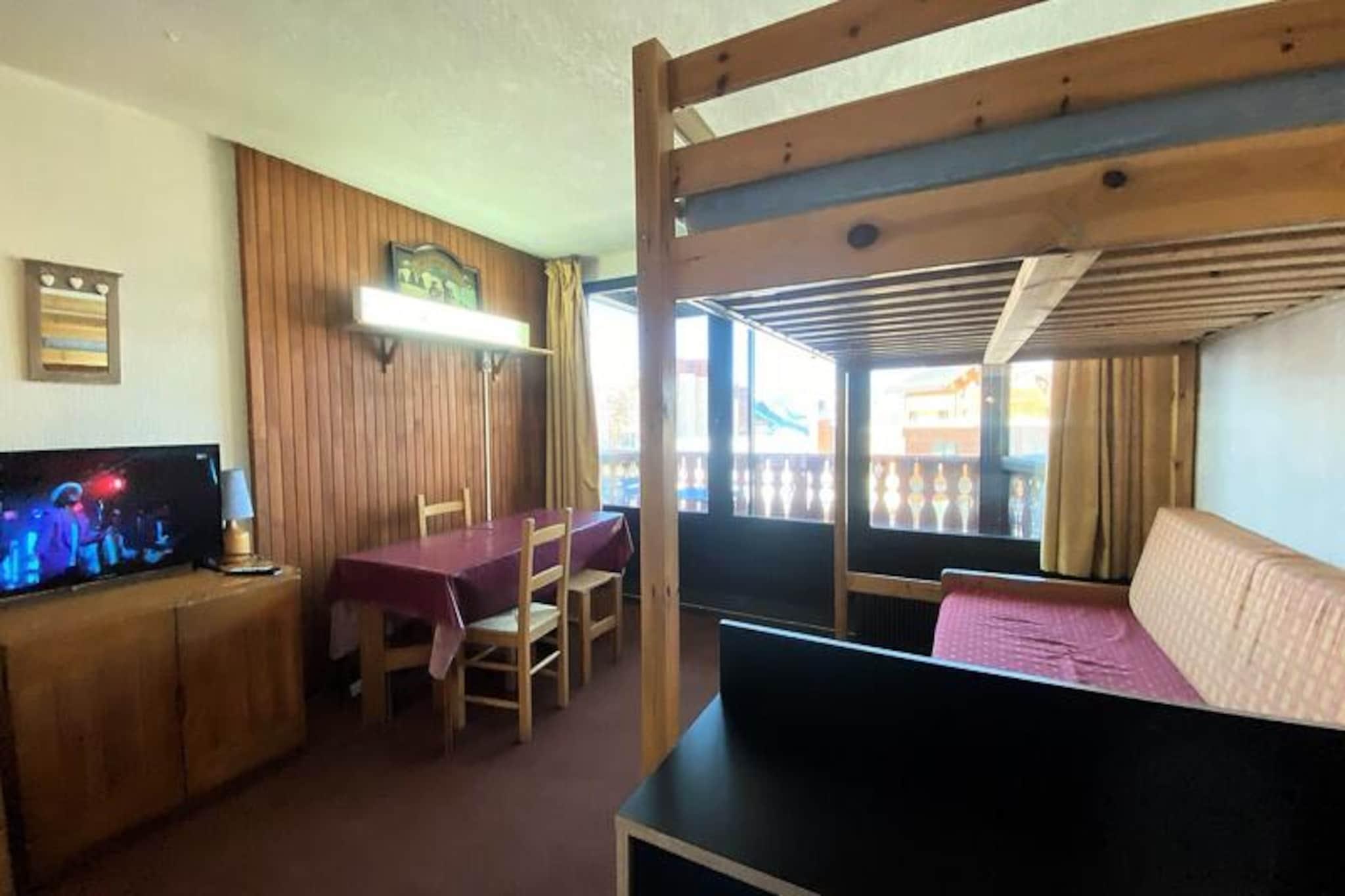 Højt over det pulserende hjerte af Val Thorens tilbyder dette hyggelige studie i LES NEVES-residensen en førsteplads til energien og spændingen ved en af ??Alpernes mest berømte skisportssteder. Med sin sydvestvendte verandabalkon kan du nyde panoramaudsigten over Val Thorens skiområde og de livlige gader nedenfor, hvilket gør det til det perfekte tilflugtssted for dem, der søger en dynamisk alpin flugt. Uanset om du er her for pisterne eller afterskiing, placerer denne beliggenhed dig i centrum af det hele. Studiet på 28 m² er omhyggeligt designet til at maksimere komfort og bekvemmelighed. Det åbne køkken forbinder problemfrit med den primære opholdsstue, hvor en udtræksseng giver et hyggeligt sted at slappe af efter en dag med eventyr. To køjesenge i entréen tilbyder ekstra sovepladser, hvilket gør det ideelt til en lille gruppe venner. Det separate toilet og brusebad sikrer praktisk anvendelighed, mens fraværet af en opvaskemaskine opvejes af charmen ved dets kompakte og funktionelle layout. Kun 50 meter fra pisterne har du ubesværet adgang til skiløb i verdensklasse. Boligen ligger overfor Péclet indkøbscenter, hvor du finder et supermarked, butikker og restauranter, der opfylder alle dine behov. For natteravne summer det omkringliggende område af barer og natklubber, der tilbyder uendelige underholdningsmuligheder. Familier eller dem, der søger et mere roligt ophold, kan dog overveje alternative indkvarteringsmuligheder. Vælg dette livlige studie til en uforglemmelig alpin ferie, hvor spændingen ved pisterne og pulsen i Val Thorens mødes. Med sin uovertrufne beliggenhed og livlige atmosfære er det den ultimative base for både eventyrere og nattelivsentusiaster.