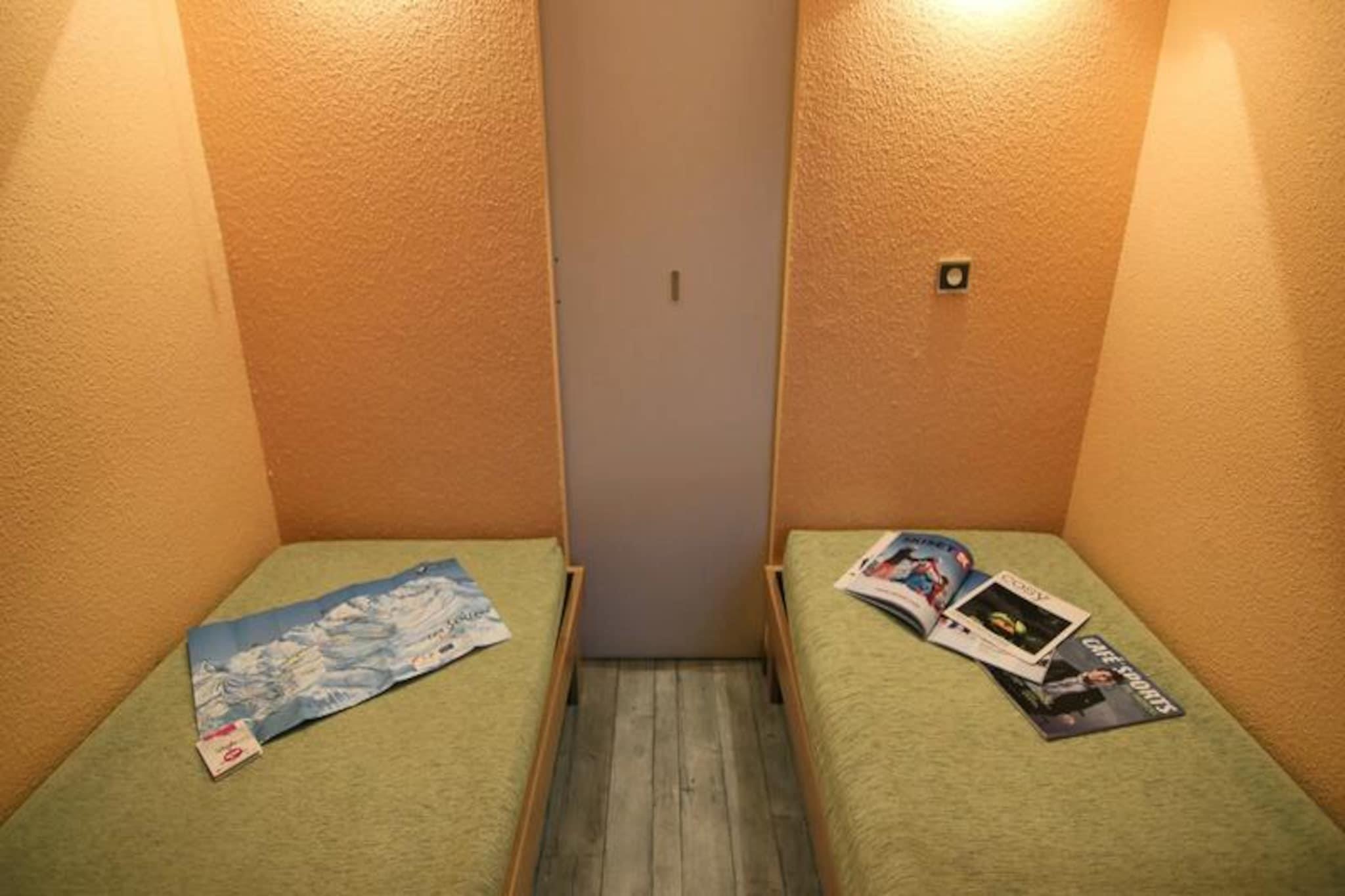 Ved indgangen til det pulserende Arolles-distrikt tilbyder denne hyggelige lejlighed i Altineige-residensen et perfekt tilflugtssted for dem, der søger både eventyr og bekvemmelighed. Med sin førsteklasses beliggenhed nær indgangen til resortet er du kun få skridt fra Val Thorens' livlige energi, omgivet af restauranter, barer, butikker og Caron shopping- og sportscenter. Uanset om du er her for pisterne eller afterskiing, placerer denne ejendom dig lige i hjertet af det hele. \n\nDen 25 m² store lejlighed, der ligger på 4. sal med elevatoradgang, er omhyggeligt designet til at rumme op til fire gæster. Stuen har en udtrækssovesofa, der kan laves om til to enkeltsenge, mens et separat soveværelse med to enkeltsenge sikrer privatliv og komfort. Et veludstyret tekøkken med mikrobølgeovn/grill, elektrisk komfur, køleskab og opvaskemaskine gør det nemt at tilberede måltider efter en dag med alpine eventyr. Den sydvestvendte balkon inviterer dig til at slappe af med en fantastisk udsigt, mens solen går ned over bjergene. Moderne bekvemmeligheder som et tv og et separat badeværelse og toilet bidrager til dit opholds bekvemmelighed.\n\nBare et stenkast fra pisterne har du nem adgang til noget af det bedste skiløb i verden. Den nærliggende SKISET sportsbutik i stueetagen sikrer, at du altid er klar til den næste tur. Ud over skiløb tilbyder Arolles-distriktet en dynamisk atmosfære med et travlt natteliv, lokale spisesteder og essentielle tjenester som et minimarked og en busstation lige på den anden side af gaden.\n\nUanset om du er en erfaren skiløber eller blot ønsker at nyde charmen ved de franske alper, er denne lejlighed den perfekte base for en uforglemmelig bjergferie. Lad Val Thorens' magi fange dig, mens du skaber minder for livet.