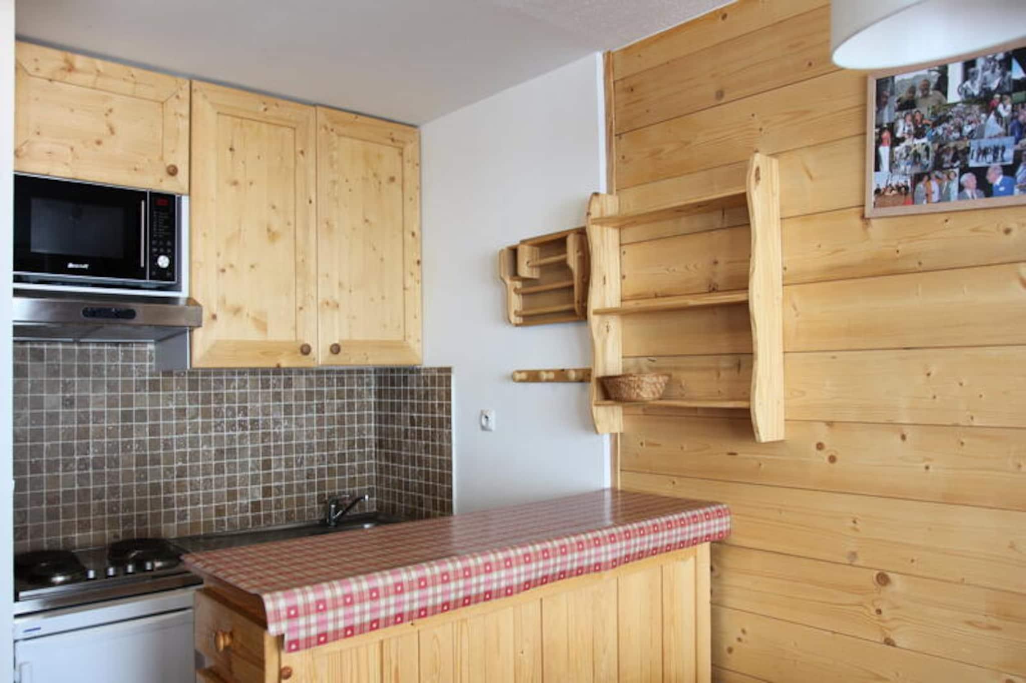 Højt over det pulserende feriested Val Thorens tilbyder LE ROC DE PECLET et fredeligt tilflugtssted med direkte adgang til pisterne. Forestil dig at vågne op til den friske alpine luft og træde ud på sneen via en charmerende trætrappe, klar til at bane dig vej gennem de uberørte løjper i et af verdens mest berømte skisportssteder. Med sin syd-/østvendte balkon inviterer dette hyggelige studio dig til at nyde morgensolen og den betagende udsigt over bjergene, hvilket skaber en rolig kulisse for din ferie. \n\nStudioet er designet til op til fire gæster og har en smart indretning med køjesenge i entréen og en udtræksseng i opholdsstuen, hvilket sikrer komfort og praktisk anvendelighed. Det åbne køkken er udstyret med moderne faciliteter, herunder mikrobølgeovn, køleskab, opvaskemaskine og komfur, hvilket gør det nemt at tilberede solide måltider efter en dag med eventyr. Badeværelset har toilet, og selvom sengelinned, håndklæder og rengøringsservice er tilgængelige efter reservation, finder du alt, hvad du behøver for et selvforsynende ophold. Bemærk venligst, at kæledyr ikke er tilladt, og parkeringsordninger kræver forudbestilling. \n\nBeliggende nær Péclet indkøbscenter, tilbyder residensen nem adgang til lokale butikker, restauranter og afterski-aktiviteter, alt sammen inden for gåafstand. Uanset om du er her for at stå på ski, snowboarde eller blot nyde den unikke charme i Val Thorens, sikrer residensens førsteklasses beliggenhed, at du altid er i centrum af begivenhederne. \n\nVælg LE ROC DE PECLET for en uforglemmelig alpeferie, hvor ro møder eventyr, og hvert øjeblik er indrammet af de franske alpers majestætiske skønhed.