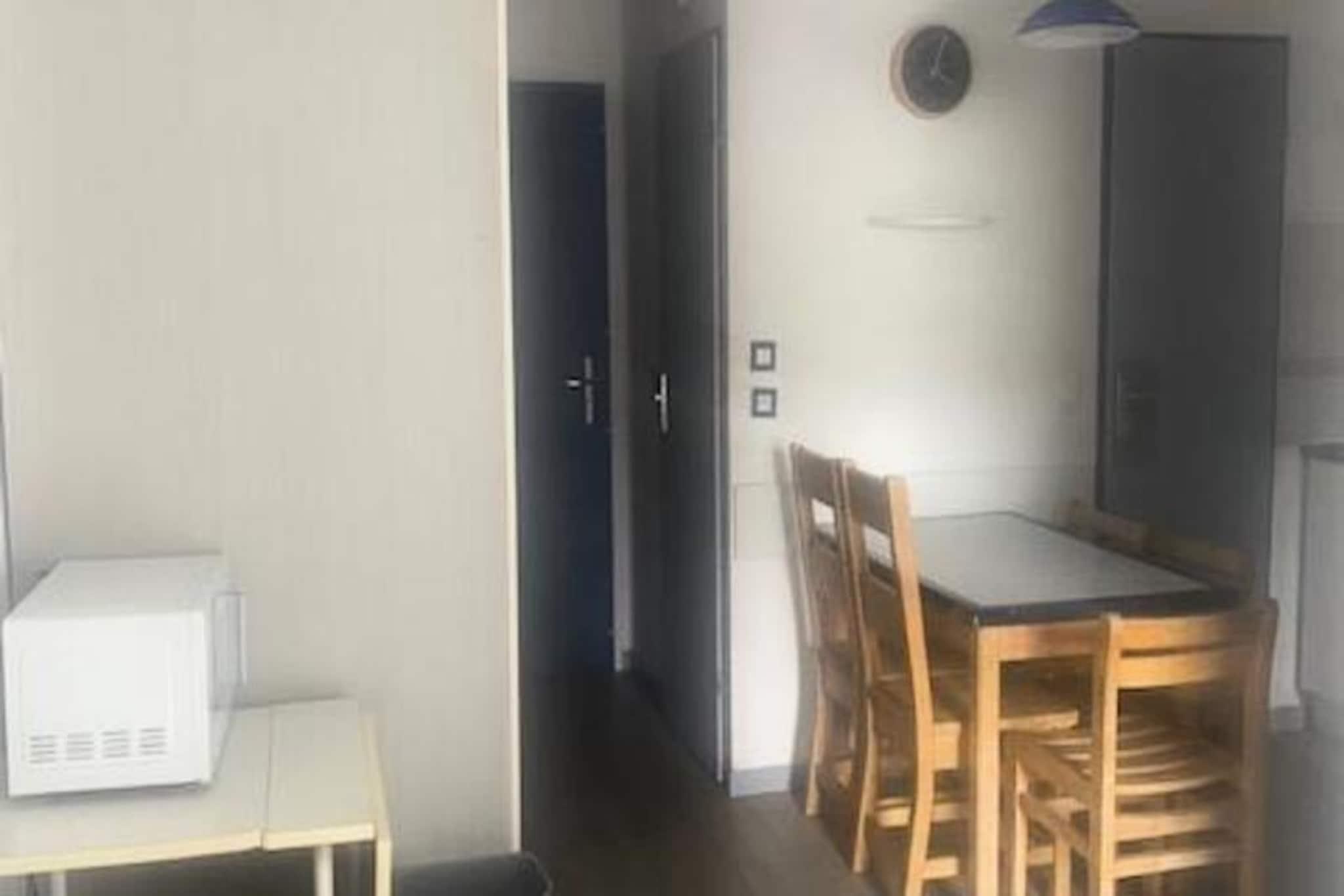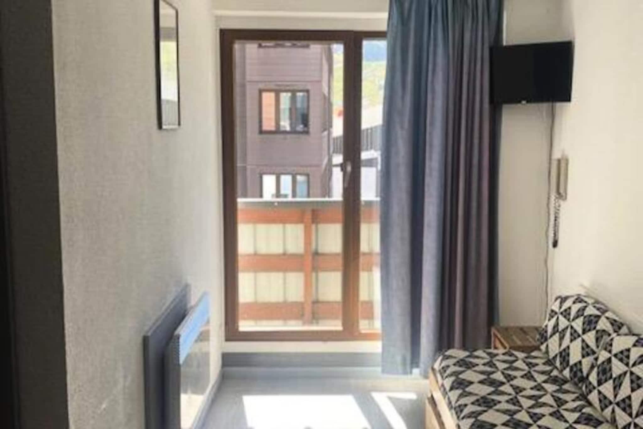 Ved porten til Val Thorens, hvor alpine eventyr møder pulserende energi, tilbyder Altineige-residensen et hyggeligt tilflugtssted for rejsende, der søger både komfort og bekvemmelighed. Beliggende i det livlige Arolles-distrikt er denne ejendom en favorit blandt unge, sporty besøgende, der er ivrige efter at udforske den dynamiske atmosfære i feriestedet. Med pisterne kun et stenkast væk, vil du finde dig selv perfekt placeret til at dykke ned i de verdensklasse ski- og snowboardmuligheder, der gør Val Thorens til en berømt destination. Den sydøstvendte balkon inviterer dig til at nyde bjergudsigten og den friske alpine luft, hvilket sætter tonen for et uforglemmeligt ophold. \n\nIndenfor er den 25 m² store lejlighed omhyggeligt designet til at rumme op til fire gæster. Indretningen inkluderer et tekøkken udstyret med en miniovn, keramisk kogeplade, køleskab og opvaskemaskine, hvilket sikrer, at du har alt, hvad du behøver for at tilberede solide måltider efter en dag på pisterne. Stuen har en udtrækssovesofa, der kan laves om til to enkeltsenge, et tv og en mikrobølgeovn for ekstra bekvemmelighed. En hyggelig krog med to enkeltsenge giver ekstra soveplads, mens badeværelset med bruser og separat toilet sikrer praktisk anvendelighed og komfort. Kæledyr er velkomne, hvilket gør det til et ideelt valg for familier eller grupper, der rejser med pelsede venner. \n\nUd over boligen summer Arolles-distriktet af aktivitet. Caron shopping- og sportscenter, der ligger lige på den anden side af gaden, tilbyder et udvalg af butikker, restauranter og barer, hvilket sikrer, at du aldrig er langt fra underholdning eller fornødenheder. SKISET sportsbutikken i stueetagen dækker alt dit udstyrsbehov, mens den nærliggende busstation giver nem adgang til at udforske den bredere region. Uanset om du er her for spændende vintersport eller blot for at nyde den livlige alpine atmosfære, er Altineige-residensen din port til det bedste af Val Thorens.