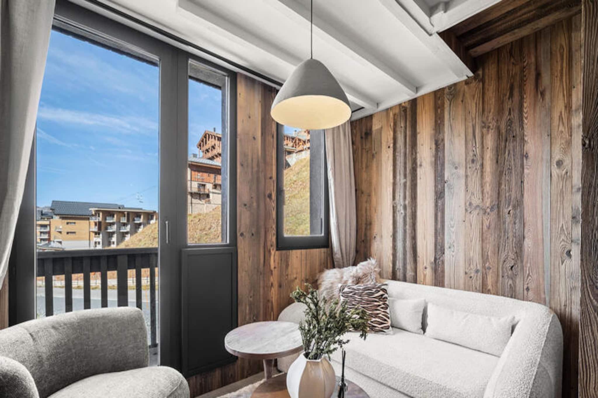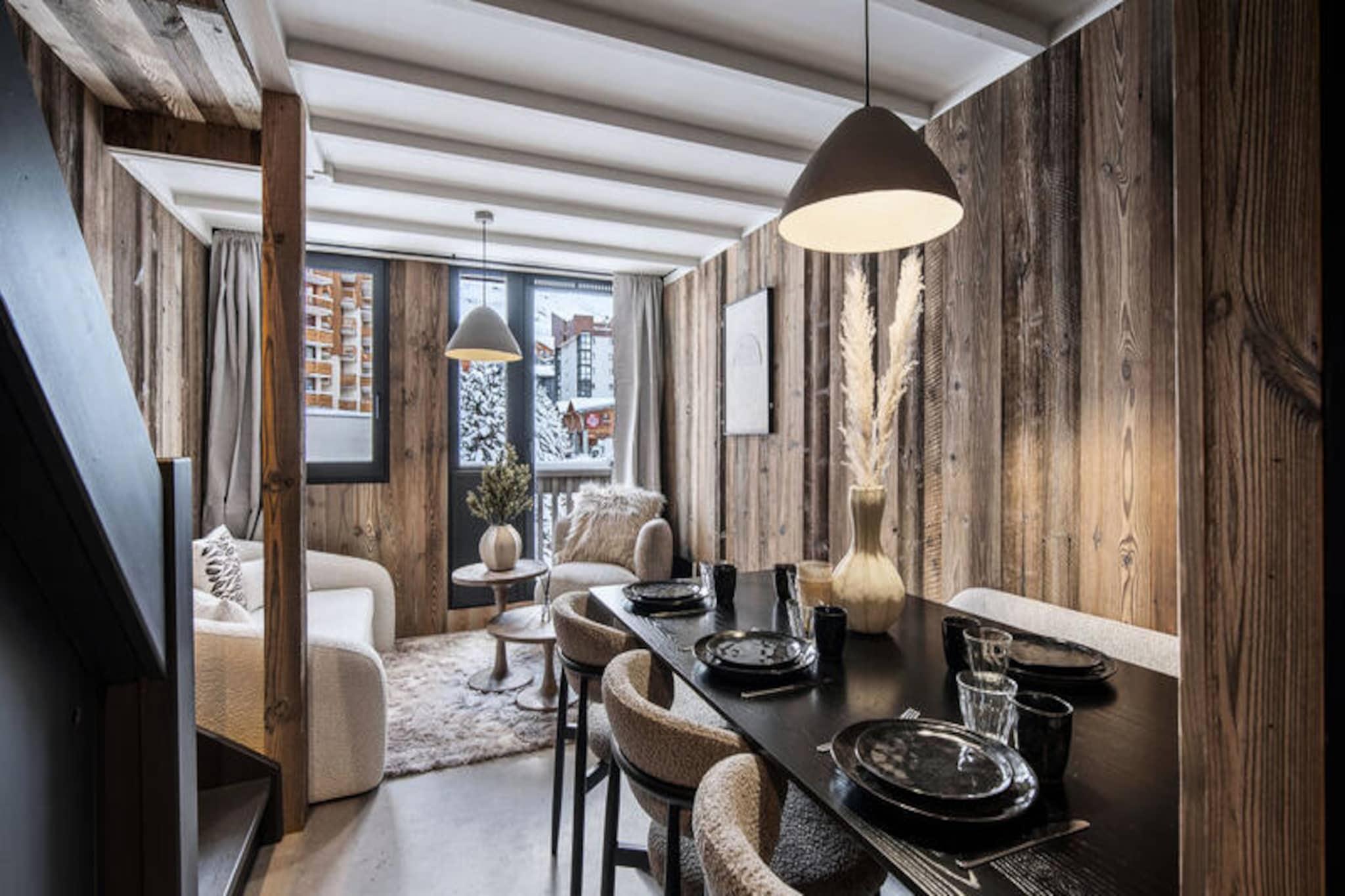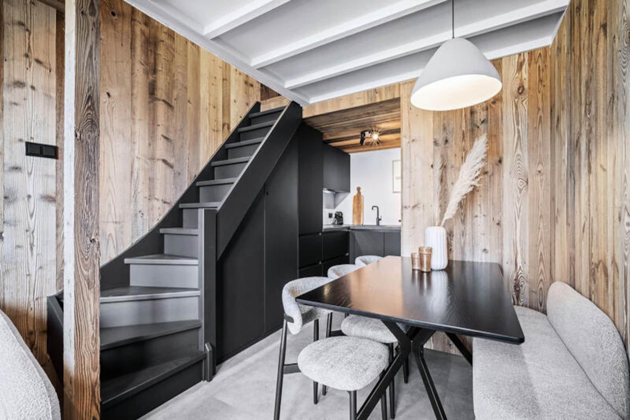 I hjertet af Belleville-distriktet i Val Thorens tilbyder denne charmerende duplexlejlighed et roligt tilflugtssted midt i de franske alpers pulserende energi. Den nyrenoverede lejlighed på 33 m² er omhyggeligt designet til at give komfort og stil til op til fire gæster. Uanset om du søger en hyggelig vinterferie eller en forfriskende sommerferie, er denne ejendom perfekt placeret til at få mest muligt ud af dit alpine eventyr. Fra sin centrale, men fredelige beliggenhed har du nem adgang til feriestedets berømte pister og livlige faciliteter. \n\nLejligheden strækker sig over to etager og tilbyder en smart planløsning, der maksimerer plads og funktionalitet. I stueetagen finder du en indbydende entré, en hytte med køjesenge og et roligt soveværelse med en dobbeltseng. Den nederste etage har en åben stue med en sofa, et fuldt udstyret køkken og en balkon, hvor du kan nyde den friske bjergluft. Et moderne badeværelse med bruser og et separat toilet fuldender bekvemmelighederne i dette hjem væk fra hjemmet. Med inkluderede tjenester såsom sengetøj, badeværelsesprodukter og opredte senge ved ankomst er dit ophold designet til at være lige så problemfrit, som det er behageligt. \n\nVal Thorens, kendt som det højest beliggende skisportssted i Europa, tilbyder uovertruffen adgang til skiområdet Les Trois Vallées med over 600 kilometer pister. Udover skiløb forvandles stedet til et sommerparadis med vandrestier, mountainbiking og betagende alpine udsigter. Den delvist gågadelignende landsby sikrer en rolig atmosfære, mens de nærliggende butikker, restauranter og afterski-steder byder på uendelig underholdning. \n\nUanset om du er tiltrukket af spændingen ved pisterne eller tiltrækningen af ??alpin ro, er denne duplexlejlighed din indgang til en uforglemmelig Val Thorens-oplevelse. Lad de majestætiske tinder og det pulserende landsbyliv skabe minder, der vil vare hele livet.