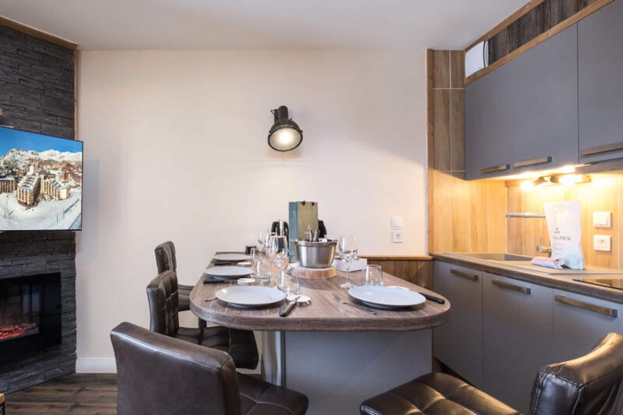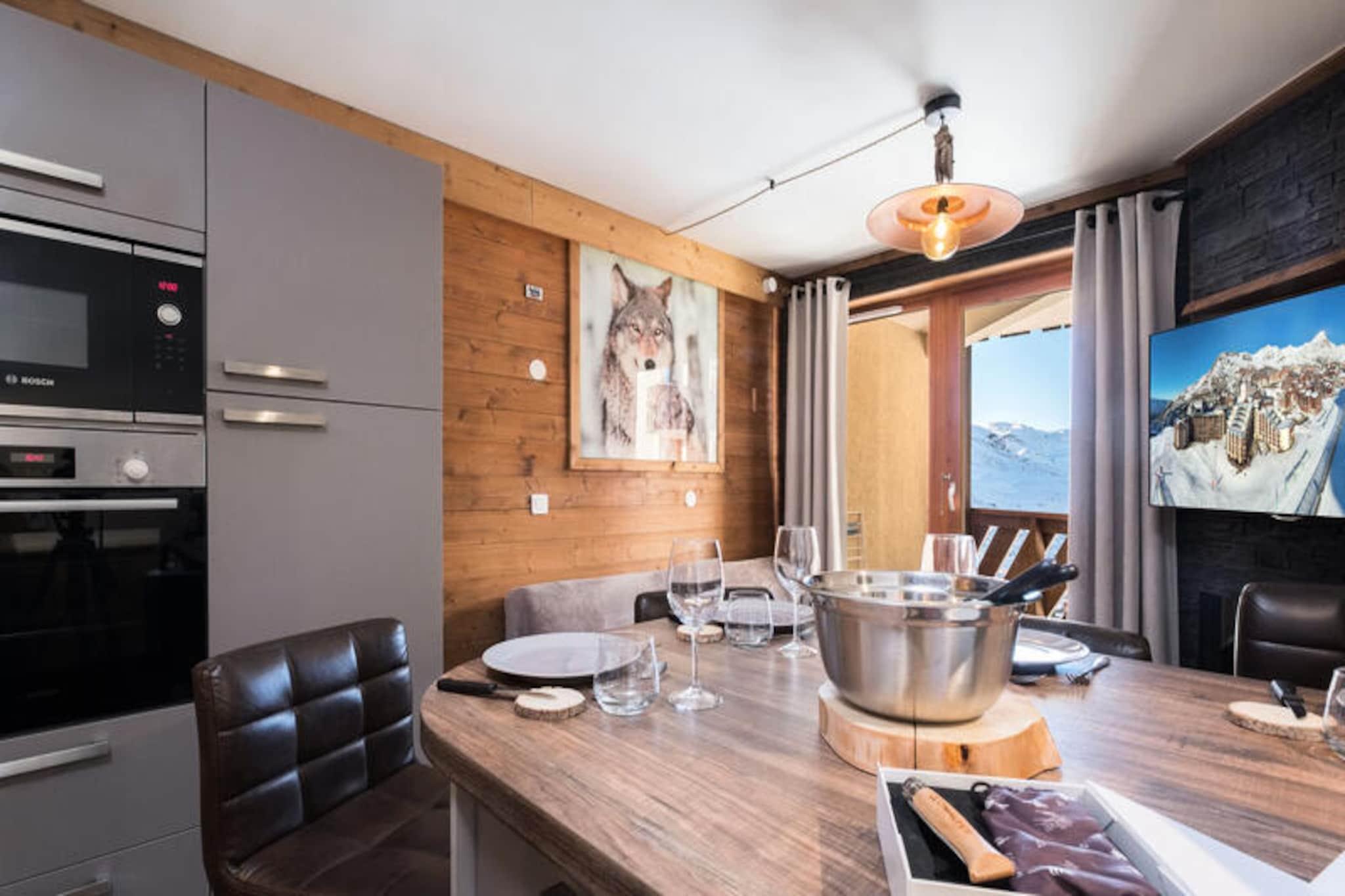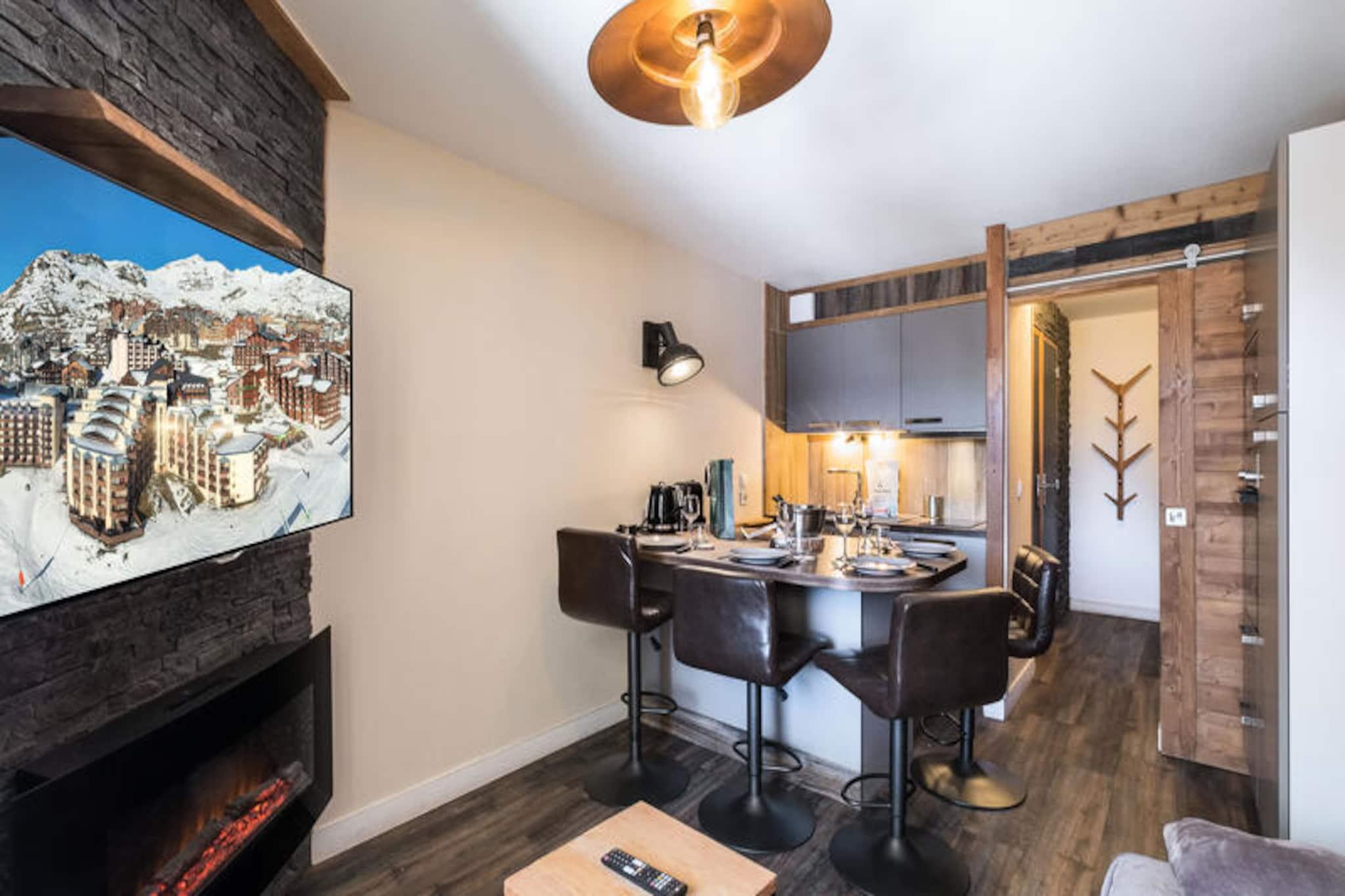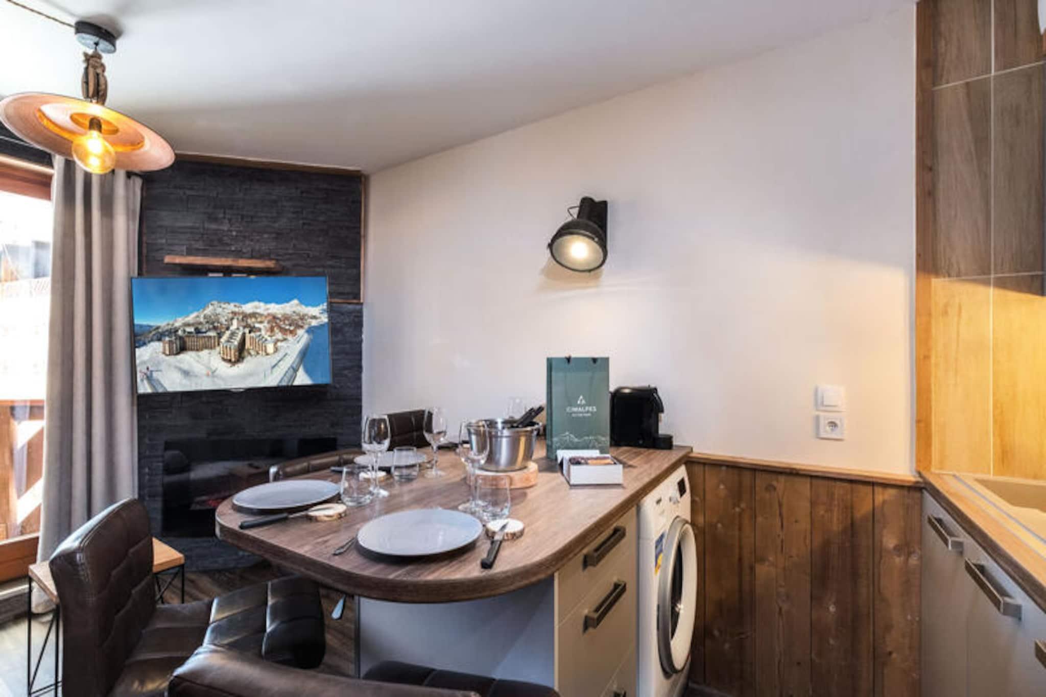 I hjertet af Soleil-distriktet i Val Thorens tilbyder denne charmerende lejlighed i Machu Pichu-residensen et uovertruffent alpint tilflugtssted med direkte adgang til ski-in/ski-out. Fra den vestvendte balkon kan gæsterne beundre den fantastiske udsigt over Sommet de la Masse, en betagende kulisse for dine bjergeventyr. Uanset om du er her for spændingen ved pisterne eller den fredfyldte skønhed i de franske alper, lover dette hyggelige tilflugtssted et mindeværdigt ophold. Den 26 m² store lejlighed er omhyggeligt designet til at rumme op til fire gæster, hvilket gør den ideel til par eller små familier. Det åbne køkken og stue skaber et indbydende rum til at slappe af efter en dag på pisterne, mens det private soveværelse med en dobbeltseng og en sovealkove med køjesenge sikrer afslappende nætter. Et moderne badeværelse og separat toilet bidrager til bekvemmeligheden, og den minimalistiske indretning forstærker følelsen af ??ro og komfort. Gæsterne vil sætte pris på de ekstra faciliteter, herunder et skiskab til nem opbevaring af udstyr og en privat overdækket parkeringsplads lige overfor residensen. Machu Pichu-residensen tilbyder også en række inkluderede tjenester, såsom en personlig velkomst, sengetøj, toiletartikler og redte senge ved ankomst, hvilket sikrer en problemfri og stressfri oplevelse. Residensen ligger ved foden af ??pisterne og er perfekt placeret til at udforske det verdensberømte Val Thorens-skiområde. Ud over skiløb tilbyder Soleil-distriktet en række afterski-muligheder, restauranter og shopping, alt sammen inden for gåafstand. Uanset om du søger eventyr eller afslapning, er denne lejlighed din port til en uforglemmelig alpin flugt.