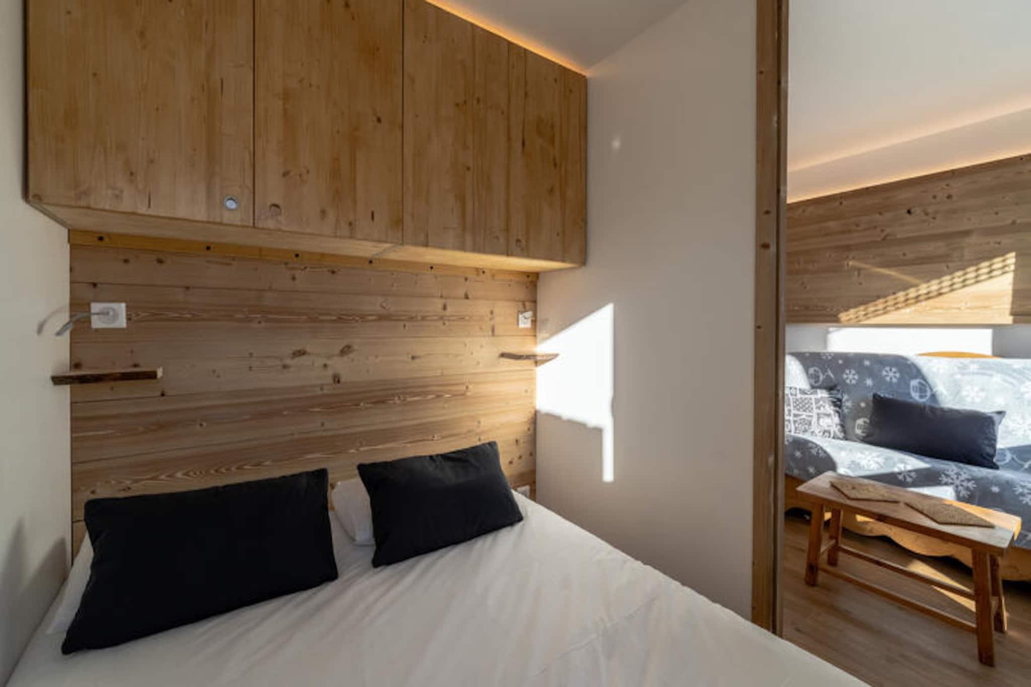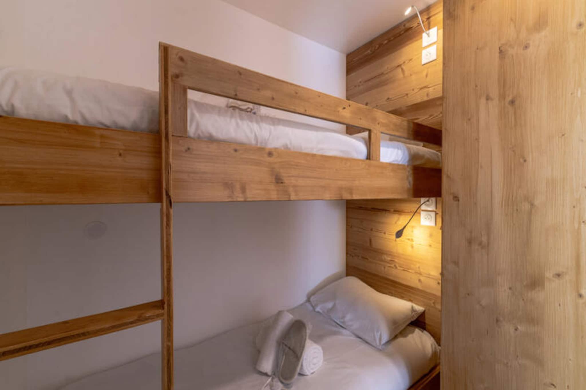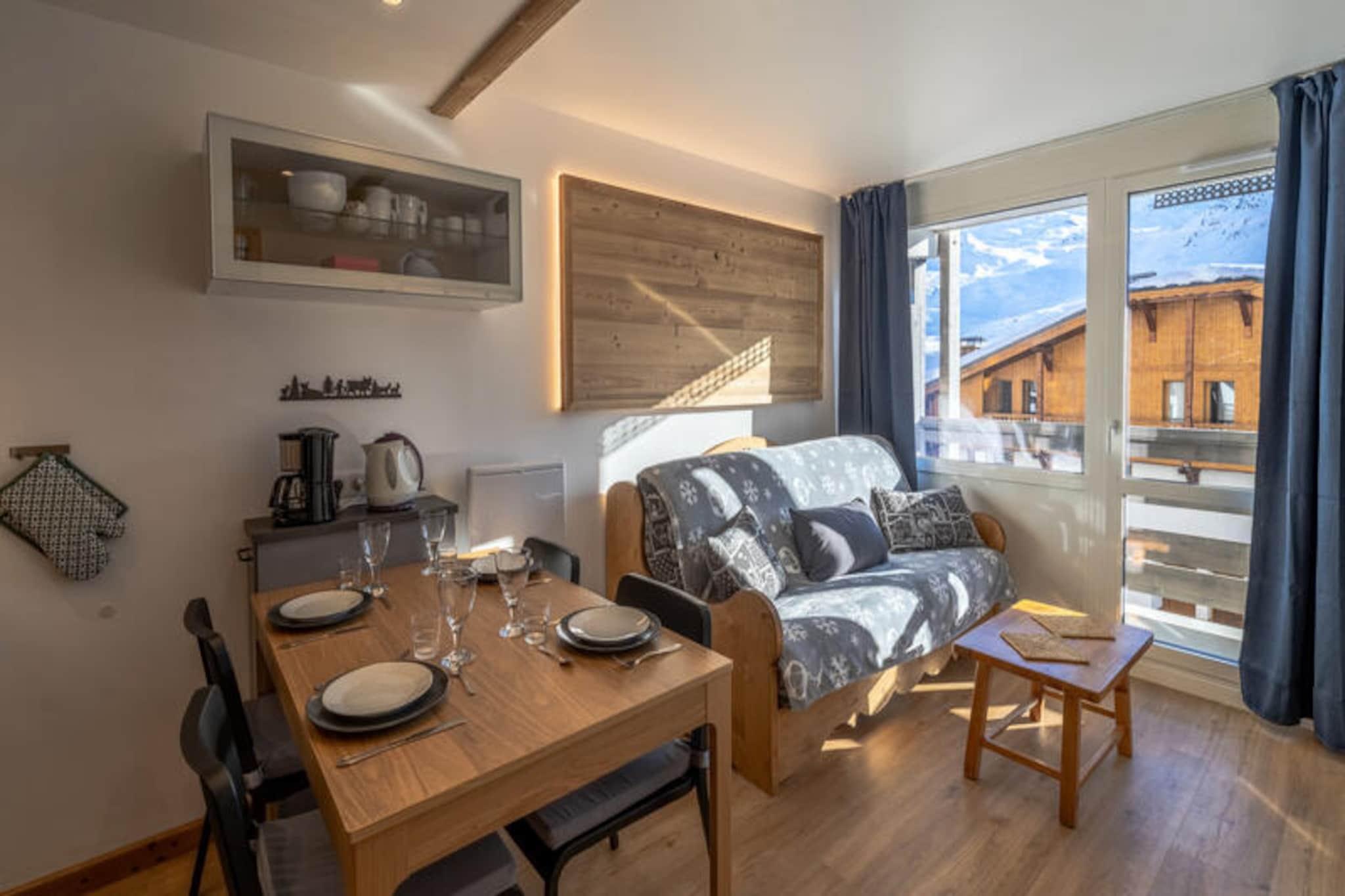 Højt over Tarentaise-dalen, hvor sneen glitrer under den alpine sol, tilbyder denne smukt renoverede lejlighed i Les Lauzières-residensen et perfekt tilflugtssted for dit Val Thorens-eventyr. Beliggende kun få skridt fra pisterne og det pulserende feriestedscentrum, kombinerer den spændingen ved ski-in, ski-out-bekvemmelighed med komforten ved en varm og indbydende hjemmebase. Uanset om du er her for skiløb i verdensklasse eller den livlige afterskiing-scene, placerer denne lejlighed dig i hjertet af det hele. \n\nLejligheden er designet til at rumme op til fire gæster og har en gennemtænkt planløsning med et hyggeligt soveværelse med to enkeltsenge, en charmerende hytte med en dobbeltseng og et moderne brusebad med separat toilet. Den åbne stue og det fuldt udstyrede køkken tilbyder et indbydende sted at slappe af og dele måltider efter en dag på pisterne. Med inkluderede faciliteter såsom Wi-Fi, sengetøj og toiletartikler samt en personlig velkomst og slutrengøring gøres dit ophold så problemfrit som muligt. \n\nTræd udenfor, og du vil blive fordybet i Val Thorens' energi med det berømte skisportsområde, travle butikker og fremragende spisemuligheder, alt sammen inden for rækkevidde. Udover skiløb tilbyder feriestedet et væld af aktiviteter, fra sneskovandring til kælkning, hvilket sikrer, at hvert øjeblik er fyldt med spænding. For dem, der søger et strejf af afslapning, tilbyder det nærliggende sportscenter wellnessfaciliteter til at slappe af. \n\nVælg denne lejlighed for dens uovertrufne beliggenhed, moderne komfort og løftet om uforglemmelige alpine minder. Uanset om du snor dig gennem frisk puddersne eller nyder en stille aften ved vinduet, venter Val Thorens' magi på dig.