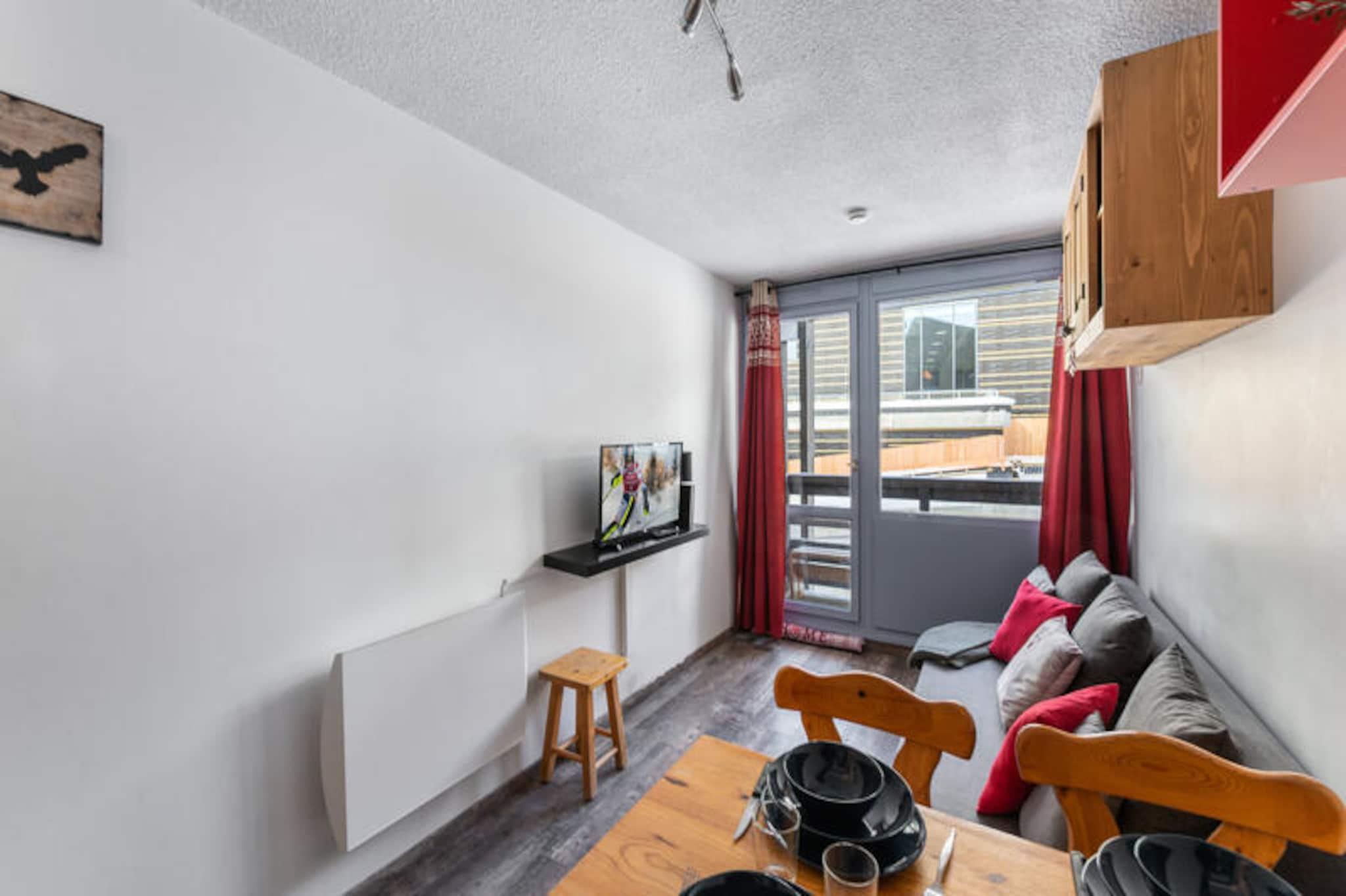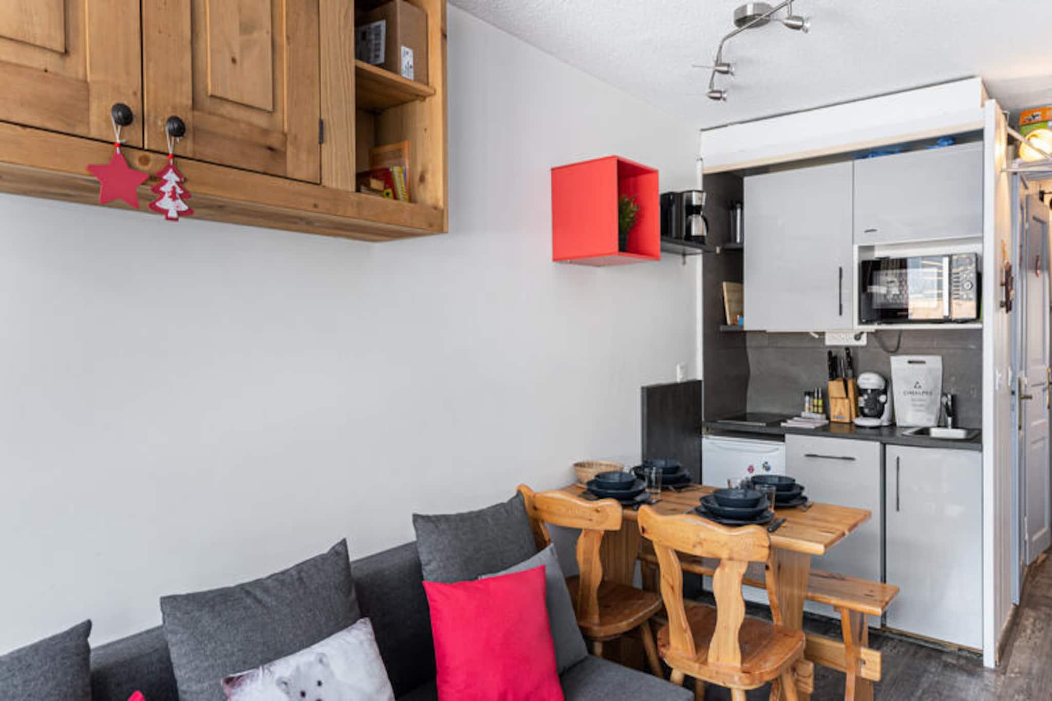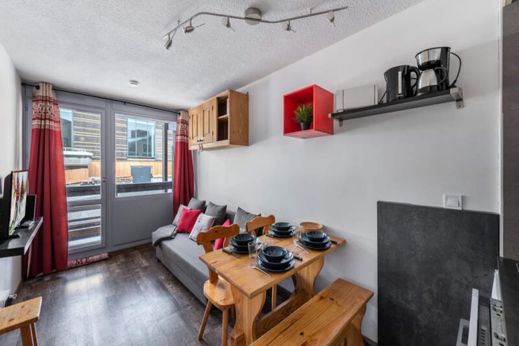 Højt over verden i hjertet af Val Thorens tilbyder denne charmerende lejlighed i Les Lauzières-residensen et hyggeligt alpint tilflugtssted for op til fire gæster. Med sin førsteklasses beliggenhed kun få skridt fra pisterne og det pulserende feriestedscentrum er det den perfekte base for en uforglemmelig bjergflugt. Forestil dig at starte dine morgener med den friske bjergluft og afslutte dine dage med de gyldne nuancer af alpine solnedgange, alt sammen fra komforten i dit oase på sjette sal. Indvendigt er lejligheden omhyggeligt designet til både komfort og funktionalitet. Den åbne opholdsstue har et veludstyret køkken, perfekt til at tilberede solide måltider efter en dag på pisterne. Hytteområdet med to enkeltsenge og den hyggelige opholdsstue sikrer et afslappende ophold for familier eller små grupper. Moderne faciliteter, herunder frisk sengetøj, badeværelsesartikler og opredte senge ved ankomst, tilføjer et strejf af luksus til dit alpine eventyr. Derudover sikrer slutrengøring en problemfri afrejse. Val Thorens er et paradis for sneentusiaster og tilbyder direkte adgang til de verdensberømte pister i Les Trois Vallées. Udover skiløb kan feriestedet prale af en livlig atmosfære med butikker, restauranter og afterski-muligheder kun en kort gåtur væk. Om sommeren forvandles bjergene til et paradis for vandreture og mountainbiking med betagende udsigter fra alle sider. Uanset om du søger spændende vintersport eller fredfyldte sommerlandskaber, kombinerer denne lejlighed bekvemmelighed, komfort og magien i de franske alper. Dit alpine eventyr venter.