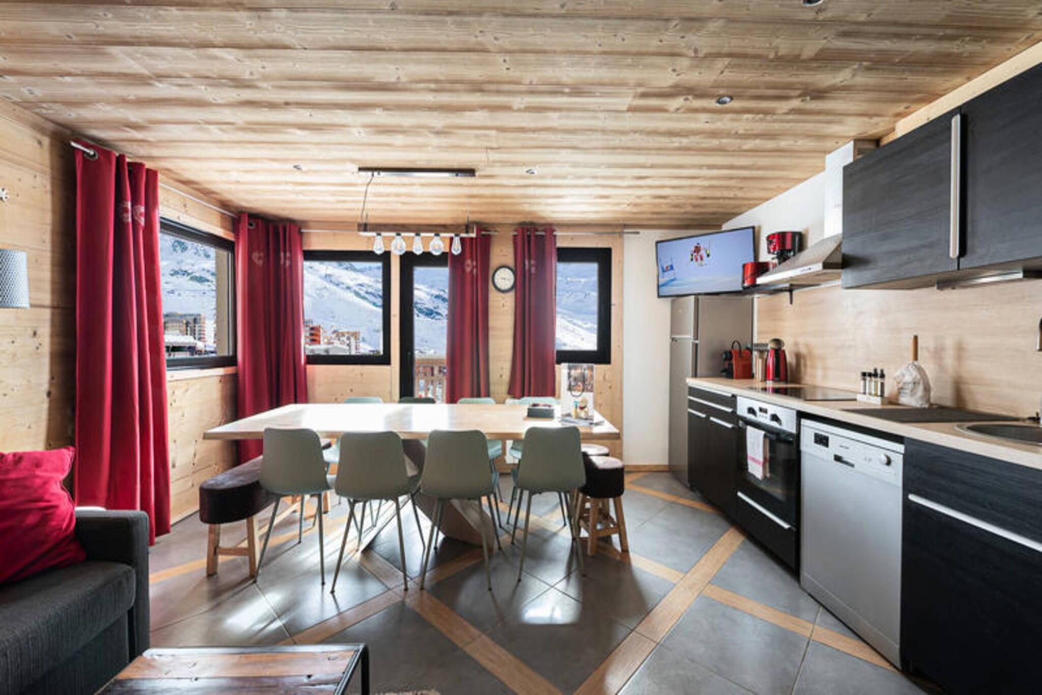 I hjertet af det verdenskendte feriested Val Thorens tilbyder dette rummelige alpine fristed en uovertruffen bjergoplevelse for grupper og familier. Forestil dig at vågne op til den friske bjergluft og den betagende panoramaudsigt over de snedækkede skråninger, alt sammen fra din egen komfortable altan. Med sin førsteklasses beliggenhed ved foden af skråningerne og kun få skridt fra den første skilift sikrer denne lejlighed, at du altid er i centrum af begivenhederne i et af de mest livlige skisportssteder i de franske Alper. Lejligheden er 85 kvadratmeter stor og er omhyggeligt designet til nemt at kunne rumme op til 12 gæster. Den varme og indbydende stue har et åbent køkken og spiseplads, der er perfekt til at dele måltider og historier efter en dag på pisterne. Indretningen omfatter to soveværelser med dobbeltsenge og eget badeværelse med brusebad, et tredje soveværelse med dobbeltseng, et soveværelse med to enkeltsenge og to hyggelige soveværelser med køjesenge, hvilket gør den ideel til familier eller vennegrupper. Ekstra faciliteter såsom støvletørrer, skiskabe og Wi-Fi sikrer et problemfrit og behageligt ophold. Val Thorens er et paradis for vintersportsentusiaster og tilbyder direkte adgang til det store skisportsområde Three Valleys. Udover skiløb byder feriestedet på en livlig atmosfære med en række butikker, restauranter og après-ski-muligheder kun en kort gåtur væk. Om sommeren forvandles regionen til et paradis for vandreture, mountainbiking og udforskning af det fantastiske alpine landskab. Med sin uovertrufne beliggenhed, moderne faciliteter og exceptionelle tjenester såsom sengelinned, opredte senge ved ankomst og rengøring ved afrejse lover denne ejendom en uforglemmelig alpin ferie. Uanset om du er her for eventyr eller afslapning, vil hvert øjeblik i Val Thorens give dig lyst til at vende tilbage.