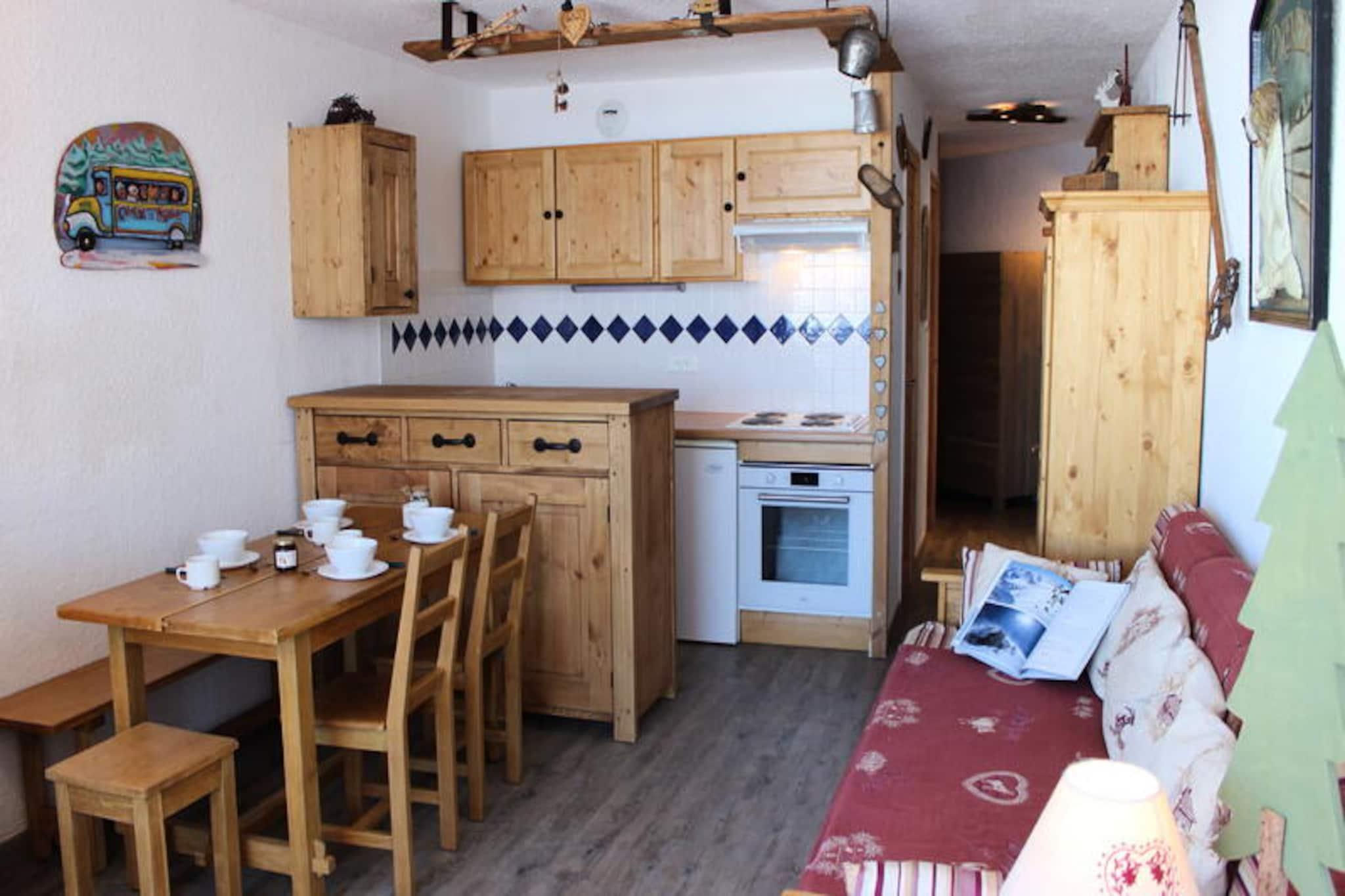 Højt over de livlige gader i Val Thorens inviterer denne charmerende lejlighed i Péclet-distriktet dig til at opleve magien i de franske alper. Med sin førsteklasses beliggenhed kun få skridt fra pisterne og skiliftens billetkontor begynder dit alpine eventyr i det øjeblik, du træder udenfor. Boligen er perfekt beliggende overfor Péclet indkøbscenter, der tilbyder et udvalg af lokale butikker, et sherpa-supermarked, hyggelige bagerier og livlige restauranter og barer til at fuldende dit ophold. Uanset om du er her for spændende skidage eller afslapning efter skiløb, er dette den ideelle base for din bjergferie. Indenfor er den 35 m² store lejlighed omhyggeligt designet til at rumme op til fire gæster. Stuen har en komfortabel udtrækssovesofa, der kan laves om til to enkeltsenge, mens det separate soveområde har robuste køjesenge, perfekt til familier eller små grupper. Tekøkkenet er fuldt udstyret med moderne faciliteter, herunder keramisk kogeplade, ovn, mikrobølgeovn, køleskab og opvaskemaskine, hvilket gør det nemt at tilberede solide måltider efter en dag på pisterne. En sydvestvendt orientering sikrer, at lejligheden er fyldt med naturligt lys, hvilket skaber en varm og indbydende atmosfære. Residensens uovertrufne beliggenhed placerer dig i hjertet af Val Thorens' pulserende energi. Skiudlejningsbutikker, herunder det berømte Skiset og Goitschel Sport, er bekvemt placeret lige på den anden side af gaden, hvilket sikrer, at du altid er klar til dit næste eventyr. Efter en dag med skiløb eller snowboarding kan du slappe af med et besøg på de nærliggende barer og pubber eller nyde et lækkert måltid på en af ??de lokale restauranter. For dem, der ønsker at udforske ud over pisterne, byder det omkringliggende område på en betagende udsigt og uendelige muligheder for vandreture og sneskovandring. Uanset om du er en erfaren skiløber eller en førstegangsbesøgende, lover dette hyggelige tilflugtssted i Val Thorens en uforglemmelig alpin flugt. Med sin perfekte blanding af komfort, bekvemmelighed og charme er det den ultimative destination for at skabe dyrebare minder i hjertet af Les Trois Vallées.