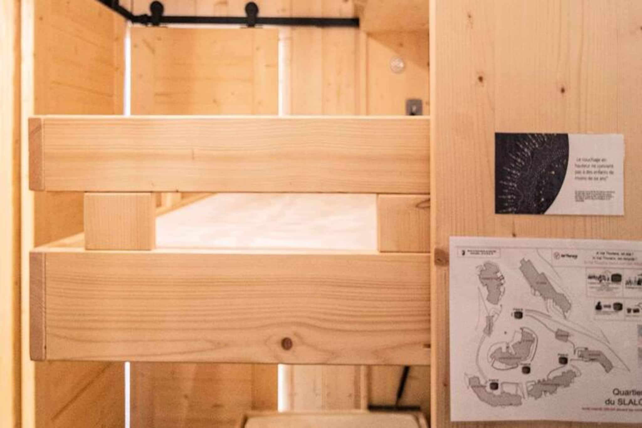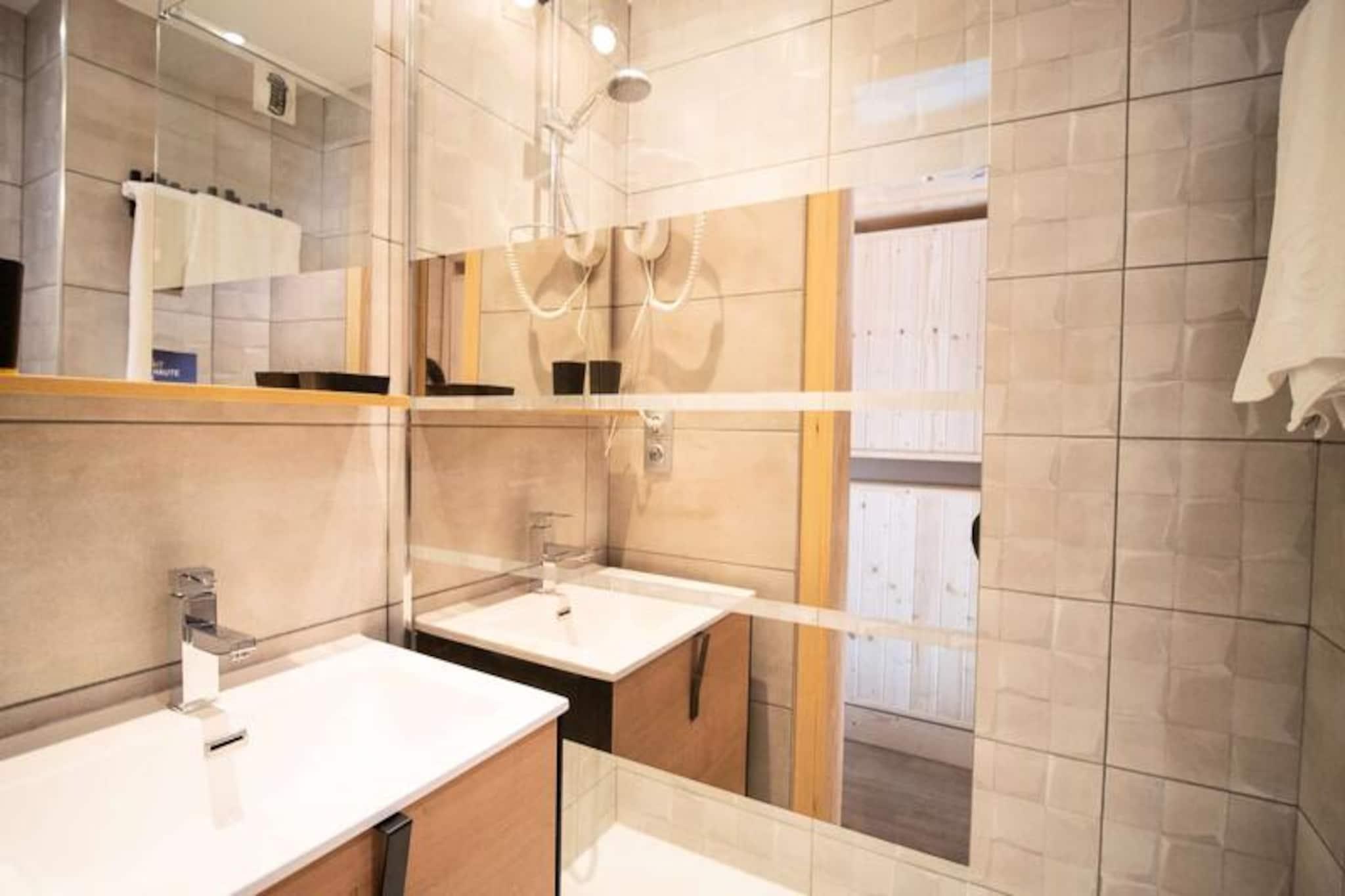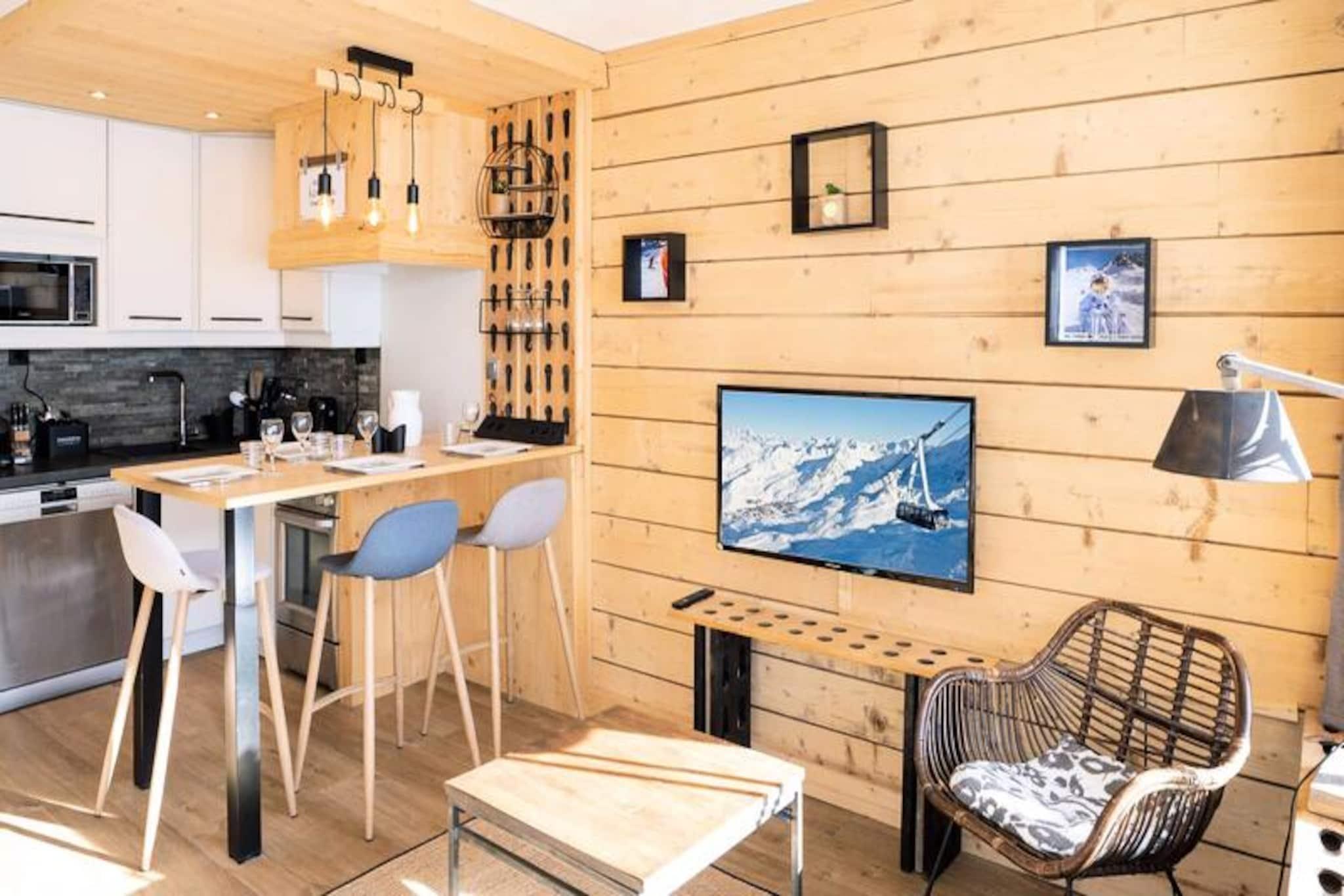 Med en betagende udsigt over Val Thorens' snedækkede tinder tilbyder denne smukt renoverede lejlighed på 25 m² et hyggeligt tilflugtssted for op til fire gæster. Beliggende i den charmerende Roc de Péclet I-residens er denne ejendom perfekt placeret lige ved pisterne, hvilket gør den til en drømmedestination for skientusiaster. Det rolige slalomområde tilbyder en fredelig atmosfære, samtidig med at det stadig er tæt på al action, hvilket sikrer en balance mellem spænding og afslapning. Lejlighedens moderne bjergindretning skaber en varm og indbydende atmosfære. Den primære opholdsstue har en komfortabel sovesofa (140 cm) og et tv, perfekt til at slappe af efter en dag på pisterne. Det fuldt udstyrede åbne køkken inkluderer moderne apparater såsom keramisk kogeplade, ovn, mikrobølgeovn, opvaskemaskine og en Nespresso-kaffemaskine, så du har alt, hvad du behøver for at tilberede lækre måltider. En hyggelig sovealkove med køjesenge og et separat badeværelse med bruser og håndklædetørrer bidrager til komforten og bekvemmeligheden i dette dejlige rum. Yderligere faciliteter inkluderer et skiskab og en støvsuger. Kun få skridt væk ligger indkøbscentret Péclet, der tilbyder et udvalg af butikker, et apotek og et marked, der åbner to gange om ugen, hvor du kan opleve lokale specialiteter. Ejendommens førsteklasses beliggenhed giver dig mulighed for at stå på ski direkte ud på pisterne, mens det rolige kvarter sikrer afslappende aftener. Uanset om du er her for at kæmpe dig gennem frisk puddersne eller blot nyde den alpine charme, er denne lejlighed din port til en uforglemmelig Val Thorens-oplevelse.