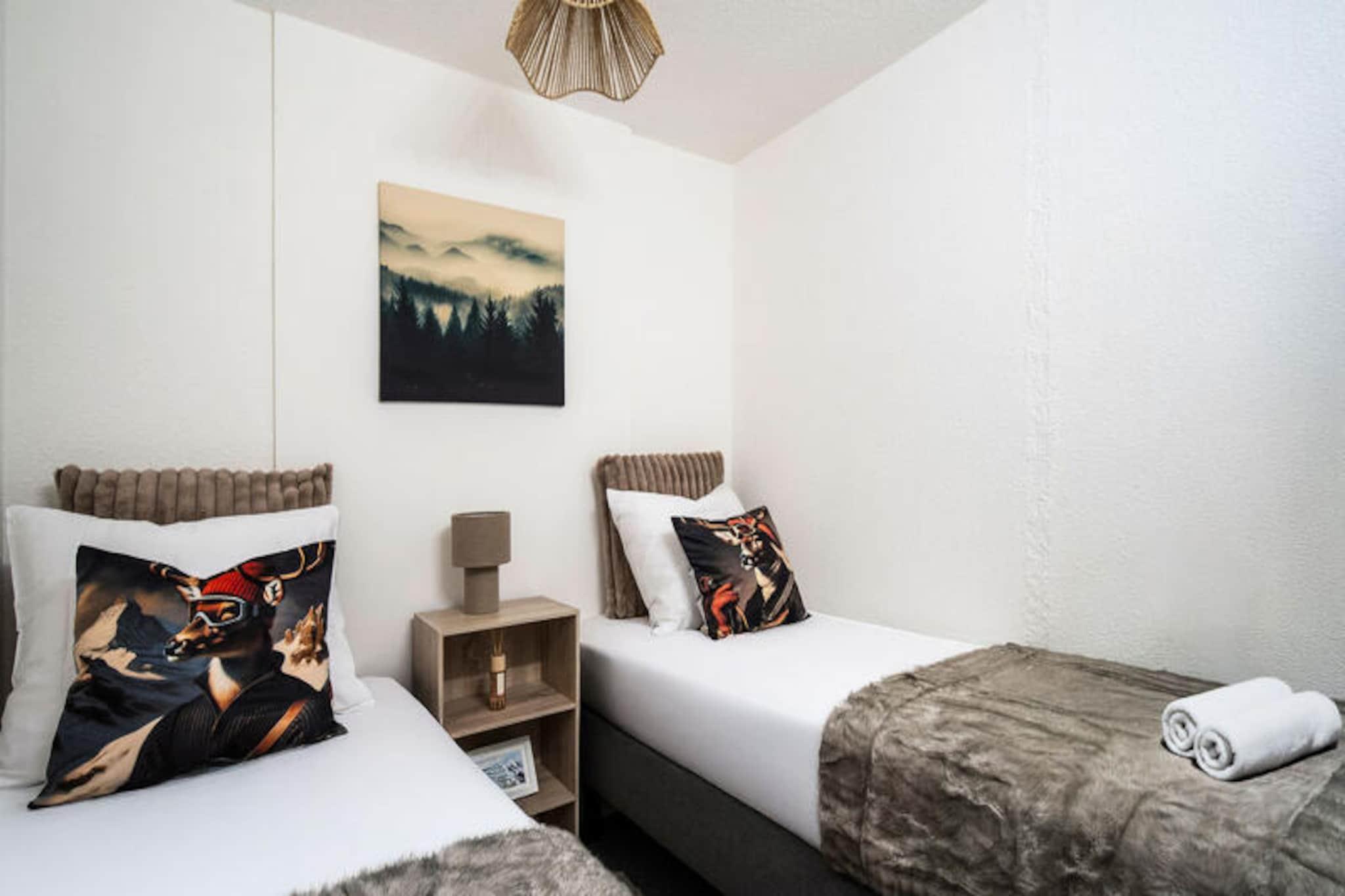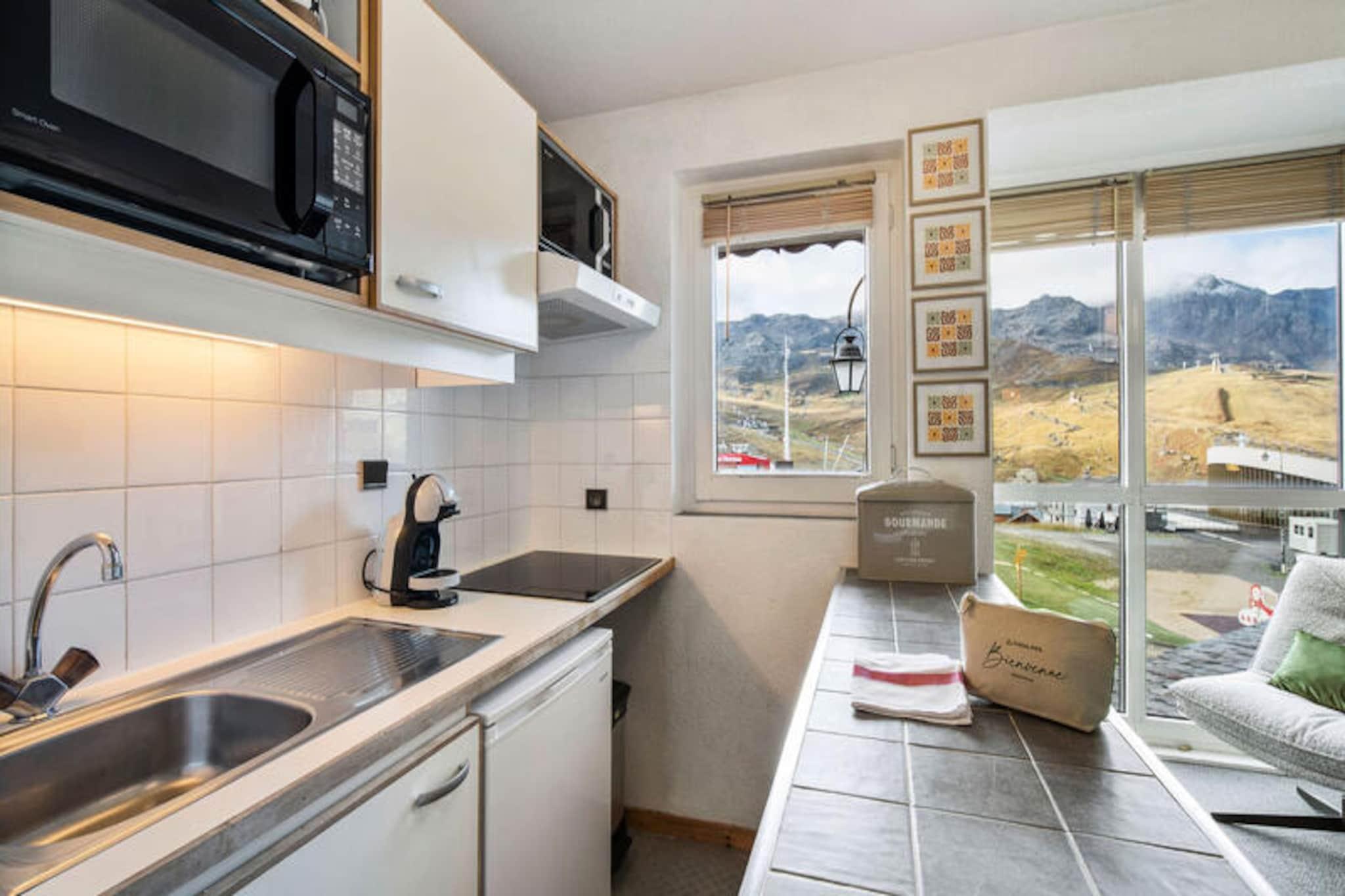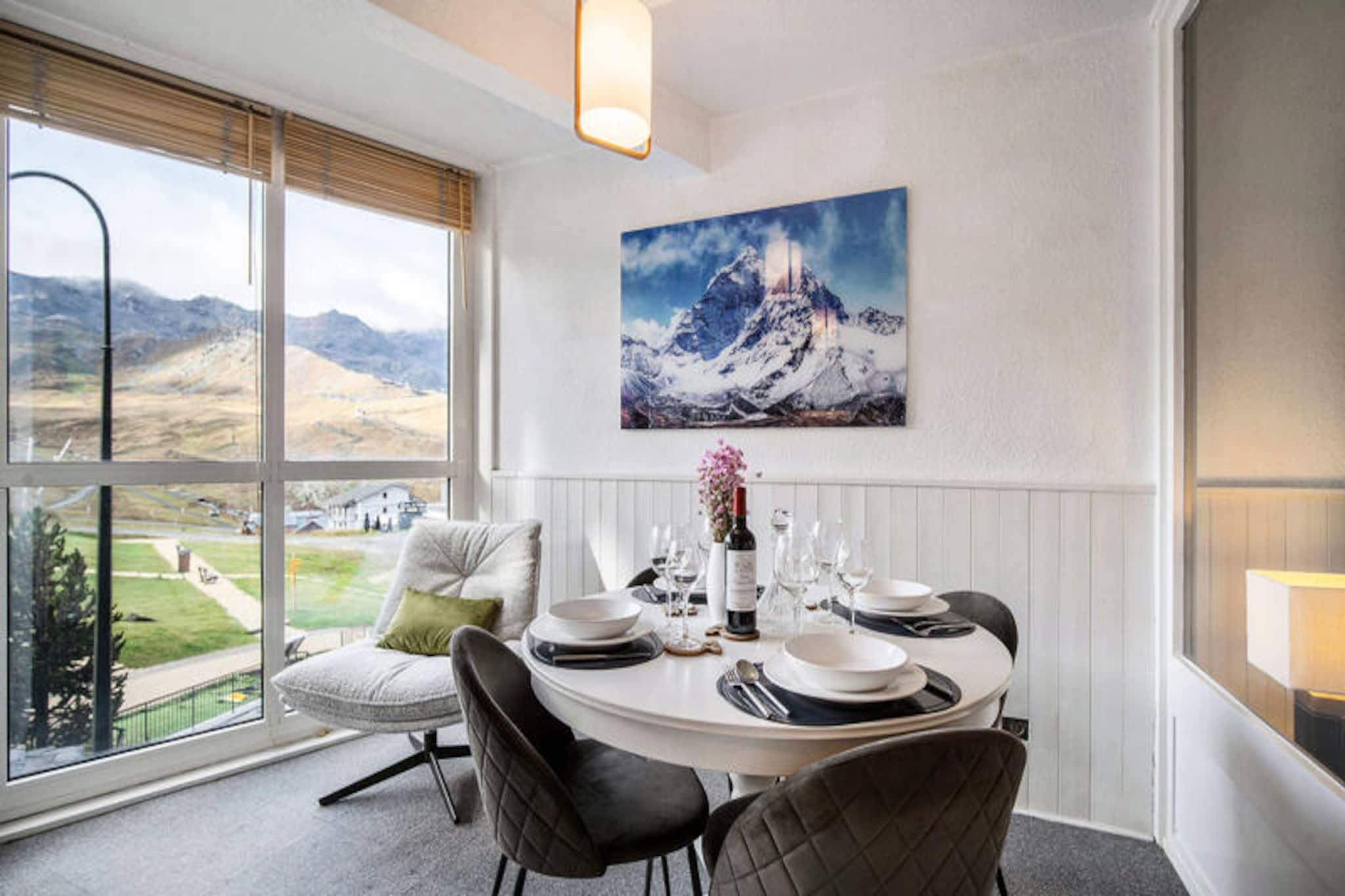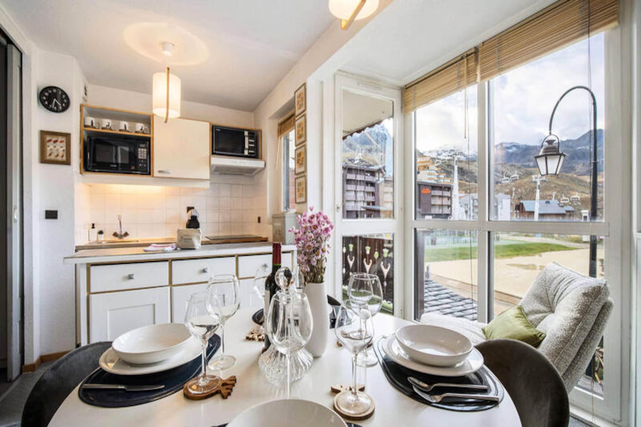 Midt i Val Thorens' pulserende energi tilbyder denne charmerende lejlighed i Eskival Residence en problemfri ski-in/ski-out-oplevelse, der placerer dig direkte ved foden af ??pisterne. Forestil dig at træde ud af din dør og glide ud på uberørt sne, omgivet af de majestætiske tinder i de franske alper. Med en perfekt beliggenhed i hjertet af feriestedet, befinder du dig kun få øjeblikke fra livlige butikker, restauranter og afterski-oplevelser, hvilket gør det til et ideelt tilflugtssted for både eventyr og afslapning. \n\nLejligheden er designet til komfortabelt at rumme op til fire gæster og strækker sig over 43 kvadratmeter med en gennemtænkt planløsning. To hyggelige soveværelser, hver med to enkeltsenge, giver afslappende plads efter en dag på pisterne. Det åbne køkken og spisestue inviterer dig til at dele måltider og historier, mens den separate stue tilbyder et roligt sted at slappe af. En privat balkon giver dig mulighed for at nyde den friske alpeluft og nyde den fantastiske udsigt over bjergene. Yderligere faciliteter inkluderer et moderne brusebad, et separat toilet og praktiske skibokse i stueetagen til at holde dit udstyr organiseret.\n\nUd over lejlighedens komfort lokker Val Thorens med sit skiløb i verdensklasse og sin pulserende atmosfære. Uanset om du udforsker de vidtstrakte pister i Les Trois Vallées, forkæler dig selv med lokalt Savoyard-køkken eller blot slentrer gennem feriestedets livlige gader, er der noget for enhver smag. Gæsterne kan også drage fordel af inkluderede tjenester såsom en varm velkomst, premium sengetøj, opredte senge ved ankomst og slutrengøring, hvilket sikrer en problemfri ferie.\n\nMed sin uovertrufne beliggenhed, hyggelige atmosfære og gennemtænkte faciliteter lover denne Eskival Residence-lejlighed en uforglemmelig alpin flugt. Uanset om du søger spændende eventyr eller fredfyldte bjergøjeblikke, er dette den perfekte base for din Val Thorens-ferie.