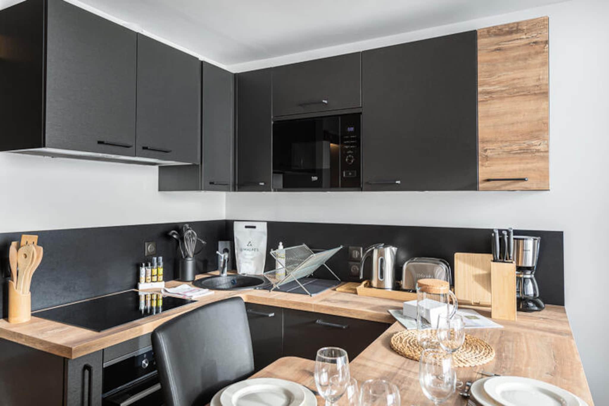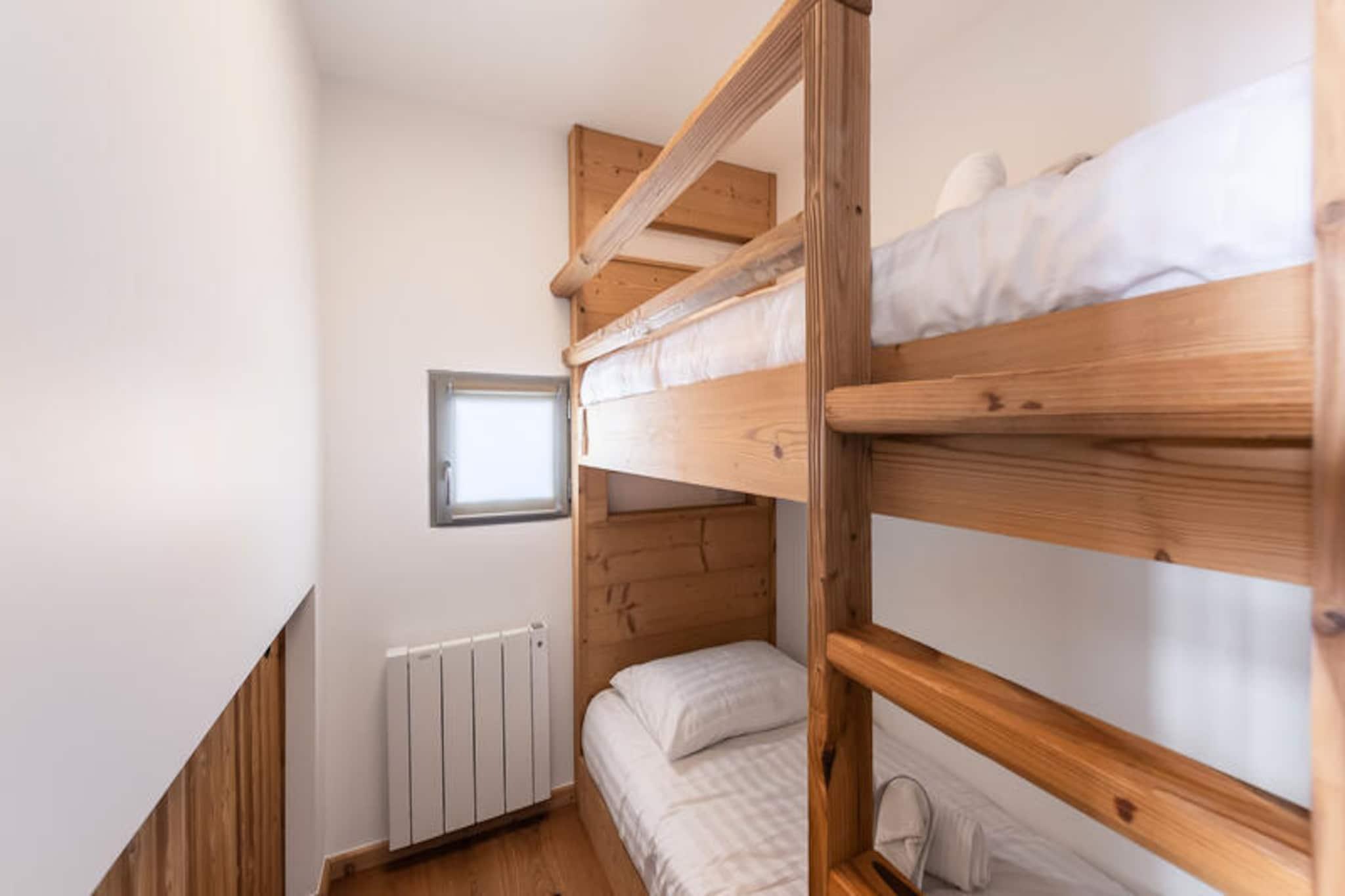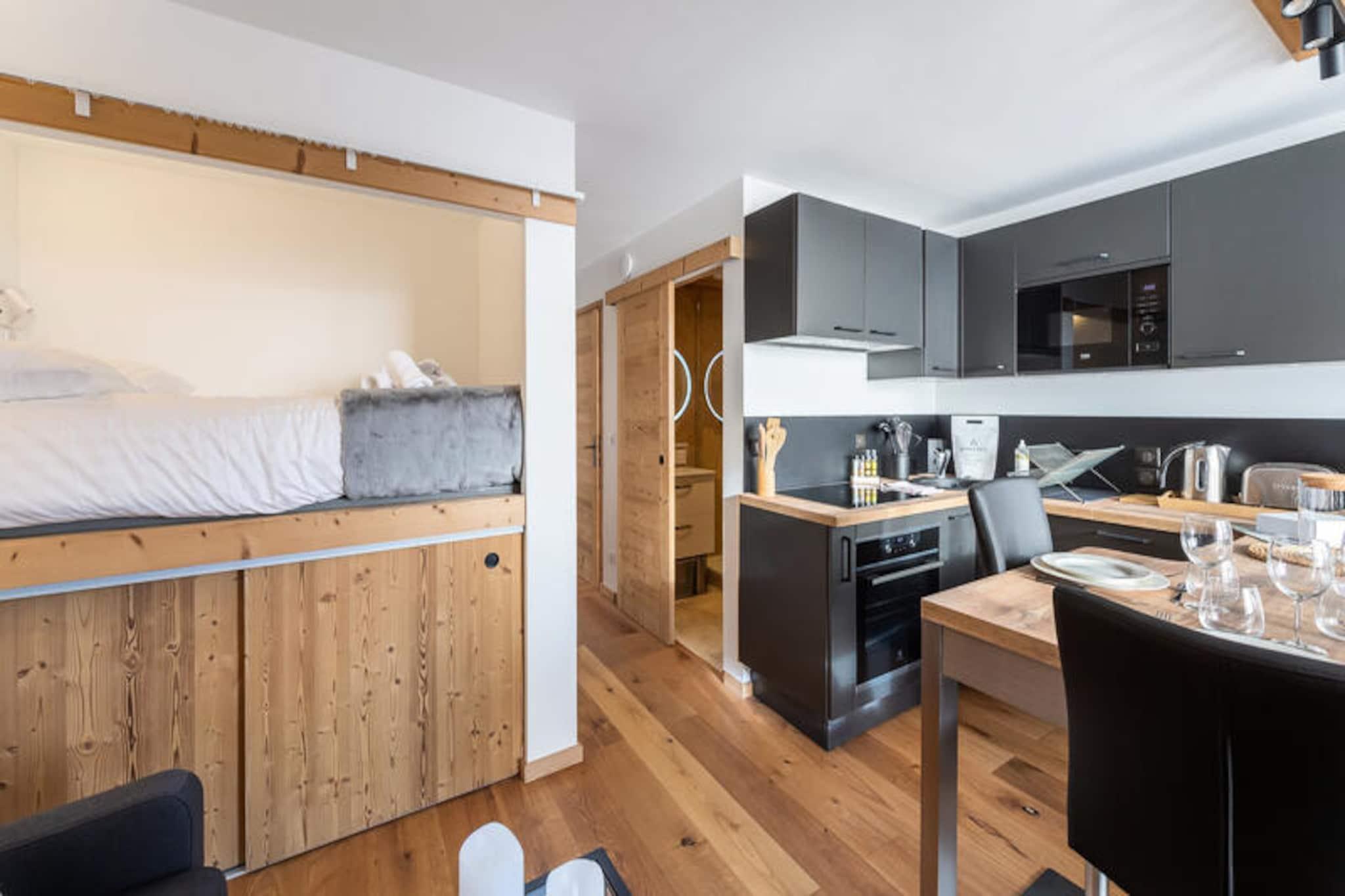Midt i Val Thorens' pulserende energi tilbyder Orsière Residence et roligt tilflugtssted med en uovertruffen beliggenhed direkte ved pisterne. Forestil dig at træde ud af skirummet og glide direkte ud på de uberørte pister i det verdensberømte skiområde Les Trois Vallées. Beliggende på Place Caron, det livlige centrum af feriestedet, kombinerer denne bolig roen i en fredelig ejerlejlighed med bekvemmeligheden ved at have butikker, restauranter og aktiviteter kun et stenkast væk. Uanset om du er her for spændende dage på pisterne eller for at nyde den festlige alpine atmosfære, placerer Orsière Residence dig i hjertet af det hele. Orsière 46-lejligheden er blevet omhyggeligt renoveret for at give et hyggeligt, men moderne rum til op til fire gæster. Den åbne stue og køkken skaber et varmt og indbydende område at slappe af efter en dag med eventyr. Det smarte design inkluderer et sammenklappeligt spisebord for at maksimere pladsen og rigelig opbevaringsplads overalt. Bjergsuiten har en hyggelig alkove med en dobbeltseng, mens soveværelset i hytten tilbyder charmerende køjesenge, perfekt til familier eller nære venner. Det elegante badeværelse kan prale af en bruseniche, der er ideel til at lindre trætte muskler, og den møblerede balkon tilbyder en betagende udsigt over pisterne og den majestætiske top La Masse. Med ægte ski-in/ski-out-adgang kan du få mest muligt ud af din tid på bjerget. Ud over skiløb tilbyder Val Thorens et væld af aktiviteter, lige fra afterskiing til butikker og gourmetmad. Når solen går ned, kan du slappe af på din balkon og se bjergtoppene gløde i det svindende lys. Orsière Residence er mere end bare et sted at bo – det er din port til uforglemmelige alpine minder.