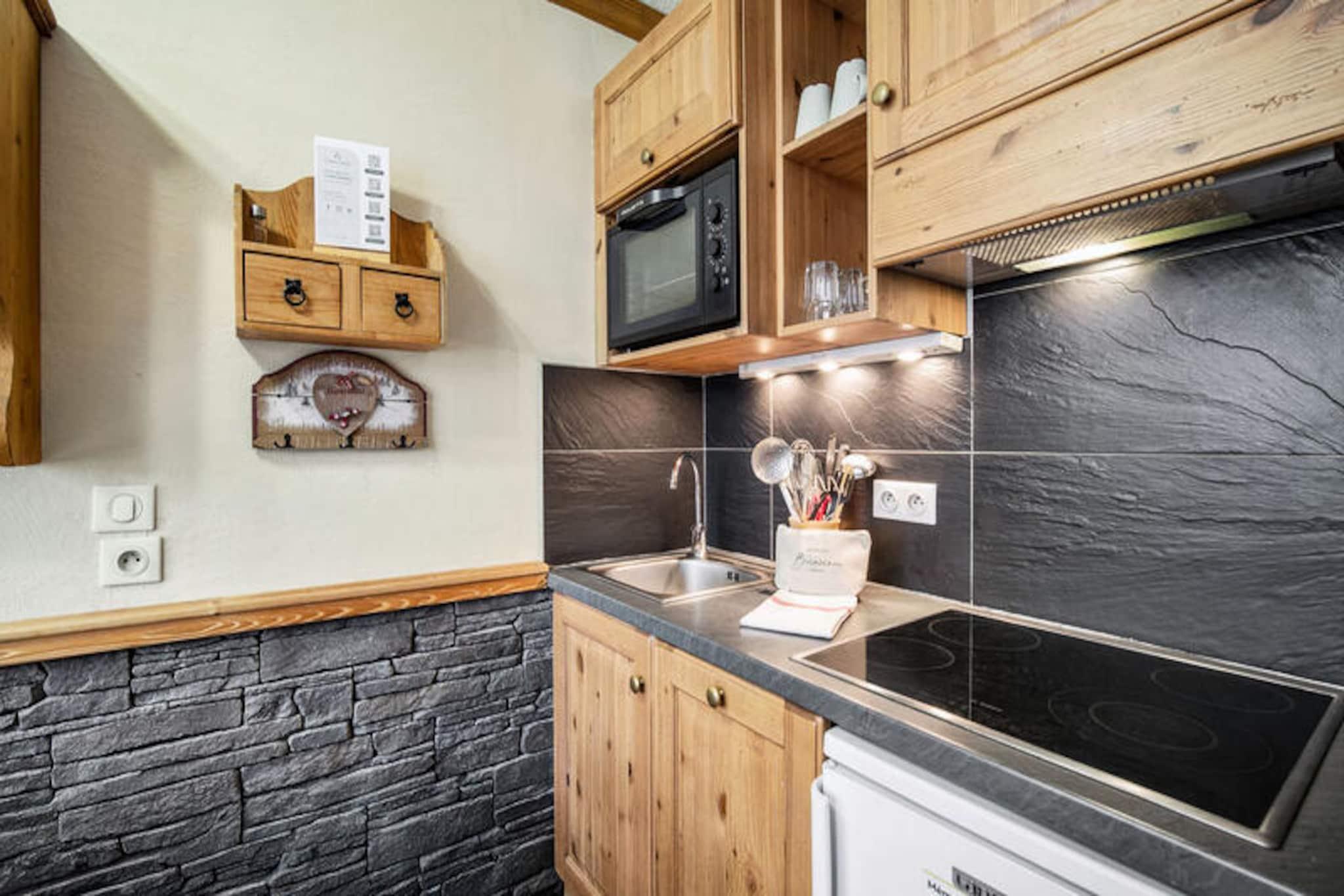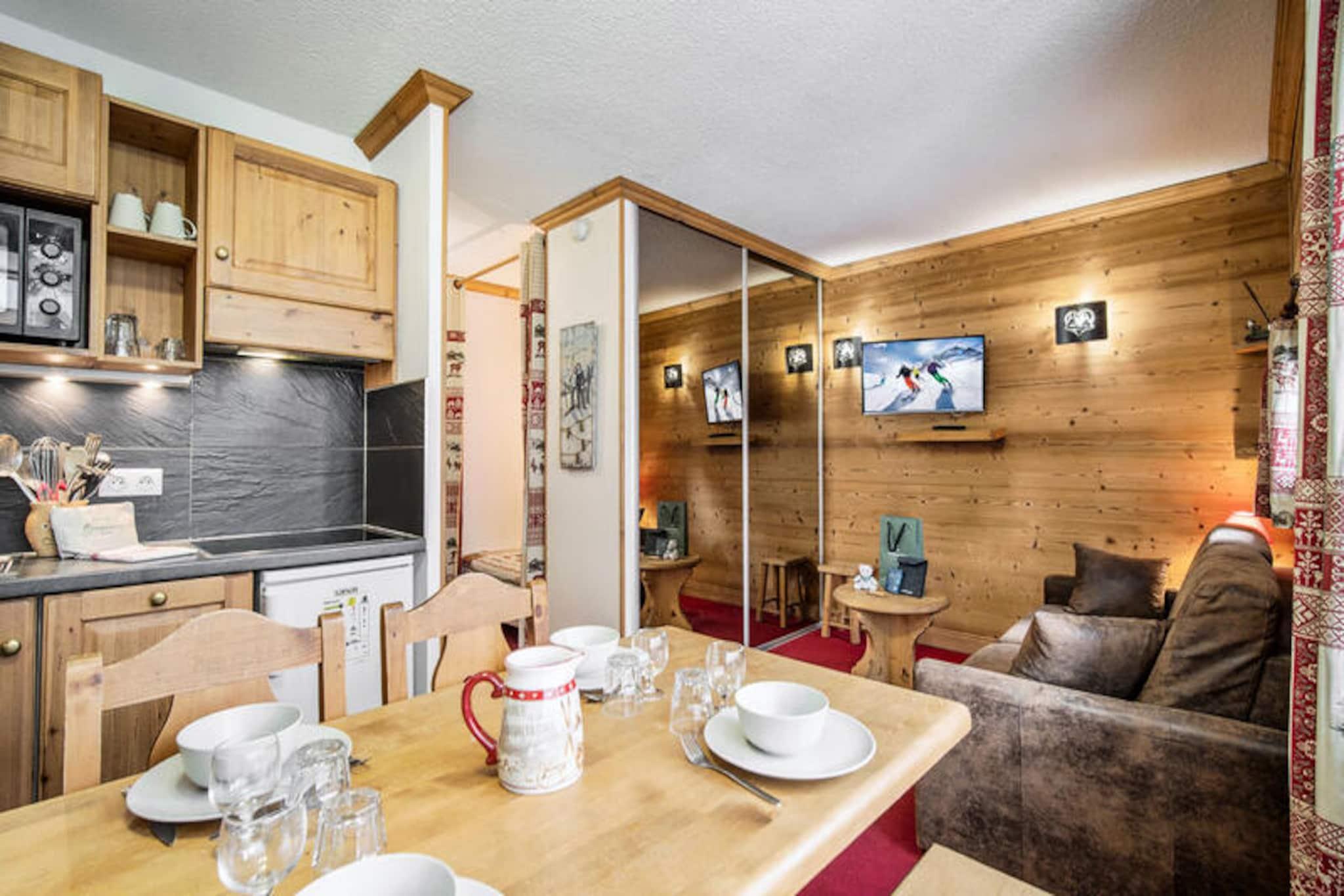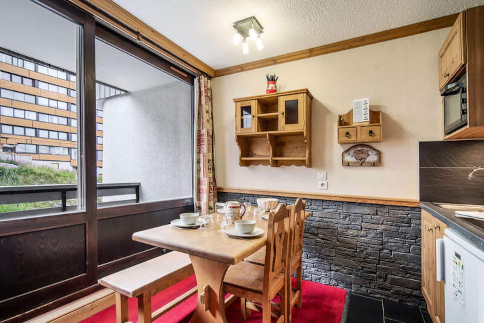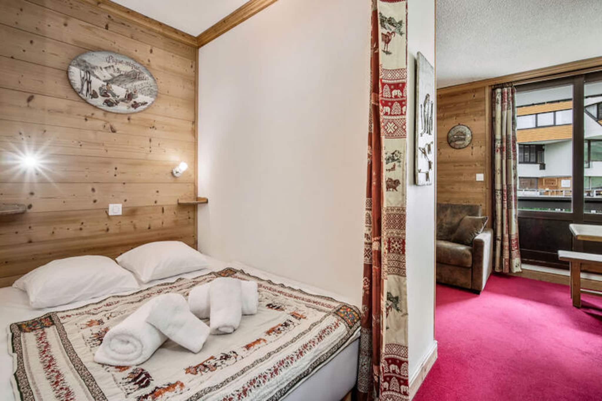 Midt i Val Thorens' dynamiske charme tilbyder Orsière Residence et roligt tilflugtssted direkte på pisterne, der sikrer ubesværet ski-in/ski-out-adgang for vinterentusiaster. Forestil dig at vågne op til den friske alpine luft, træde ud på din balkon for at beundre de snedækkede tinder og gå direkte ind i en dag med spændende eventyr uden besværet med transport. Beliggende på Place Caron, det pulserende hjerte af feriestedet, kombinerer denne residens ro med bekvemmelighed, hvilket gør den til den ideelle base for at udforske de utallige aktiviteter, butikker og restauranter, der ligger kun få skridt væk. \n\nIndvendigt er lejligheden omhyggeligt designet til at rumme op til fire gæster. Den åbne stue og køkken skaber et indbydende rum til fælles øjeblikke, uanset om det er at nyde et hjemmelavet måltid eller slappe af efter en dag på pisterne. Indretningen inkluderer en hyggelig hytte med en dobbeltseng, en anden hytte med køjesenge, et moderne badeværelse med bruser og et separat toilet, hvilket sikrer komfort og praktisk anvendelighed. Balkonen giver et privat sted at nyde den betagende udsigt over bjergene og tilføjer et strejf af magi til dit ophold. Gæsterne bliver mødt med personlig service, herunder redte senge ved ankomst, premium sengetøj, toiletartikler og slutrengøring, hvilket sikrer en problemfri og afslappende oplevelse. For ekstra bekvemmelighed er der concierge-service, der tilbyder skræddersyede muligheder såsom liftkort og aktivitetsbookinger. Uanset om du er her for skiløb i verdensklasse eller den livlige afterskiing-atmosfære, lover Orsière Residence en uforglemmelig alpin ferie. Med sin uovertrufne beliggenhed og hyggelige faciliteter er det det perfekte valg til at skabe dyrebare minder i hjertet af de franske alper.
