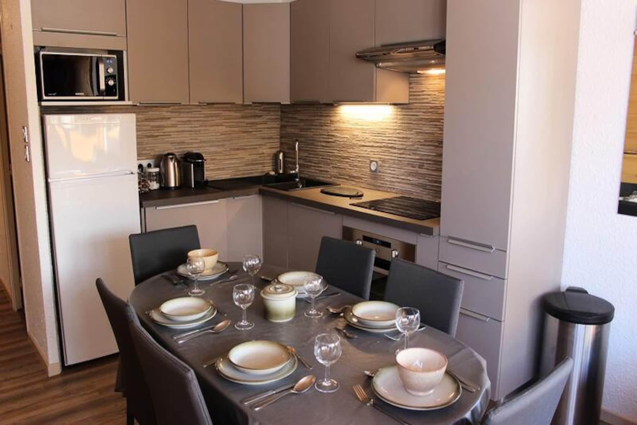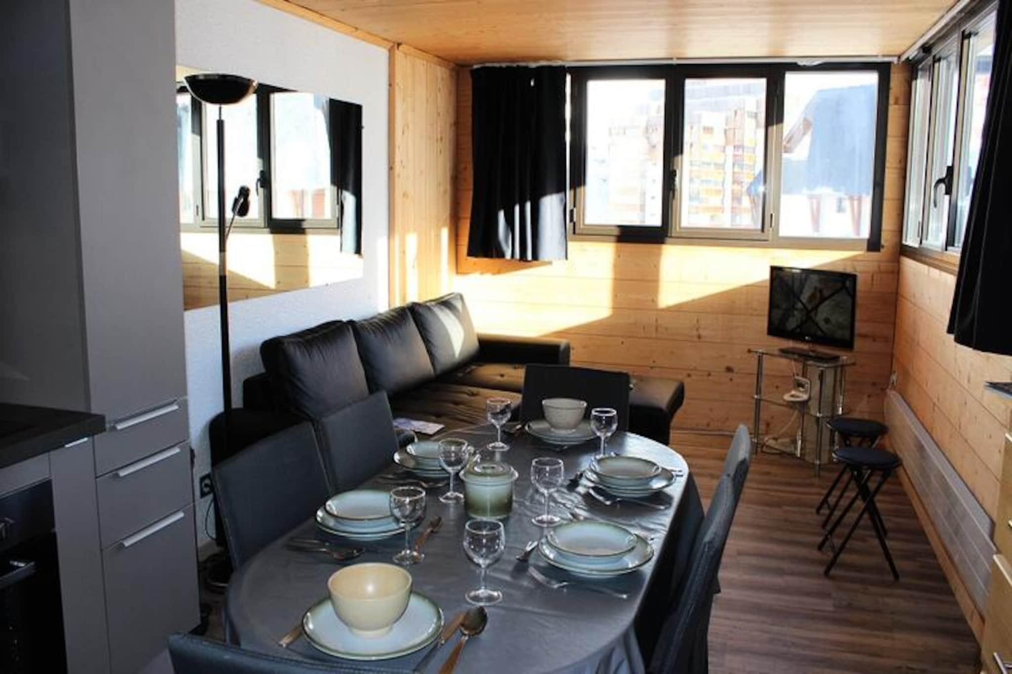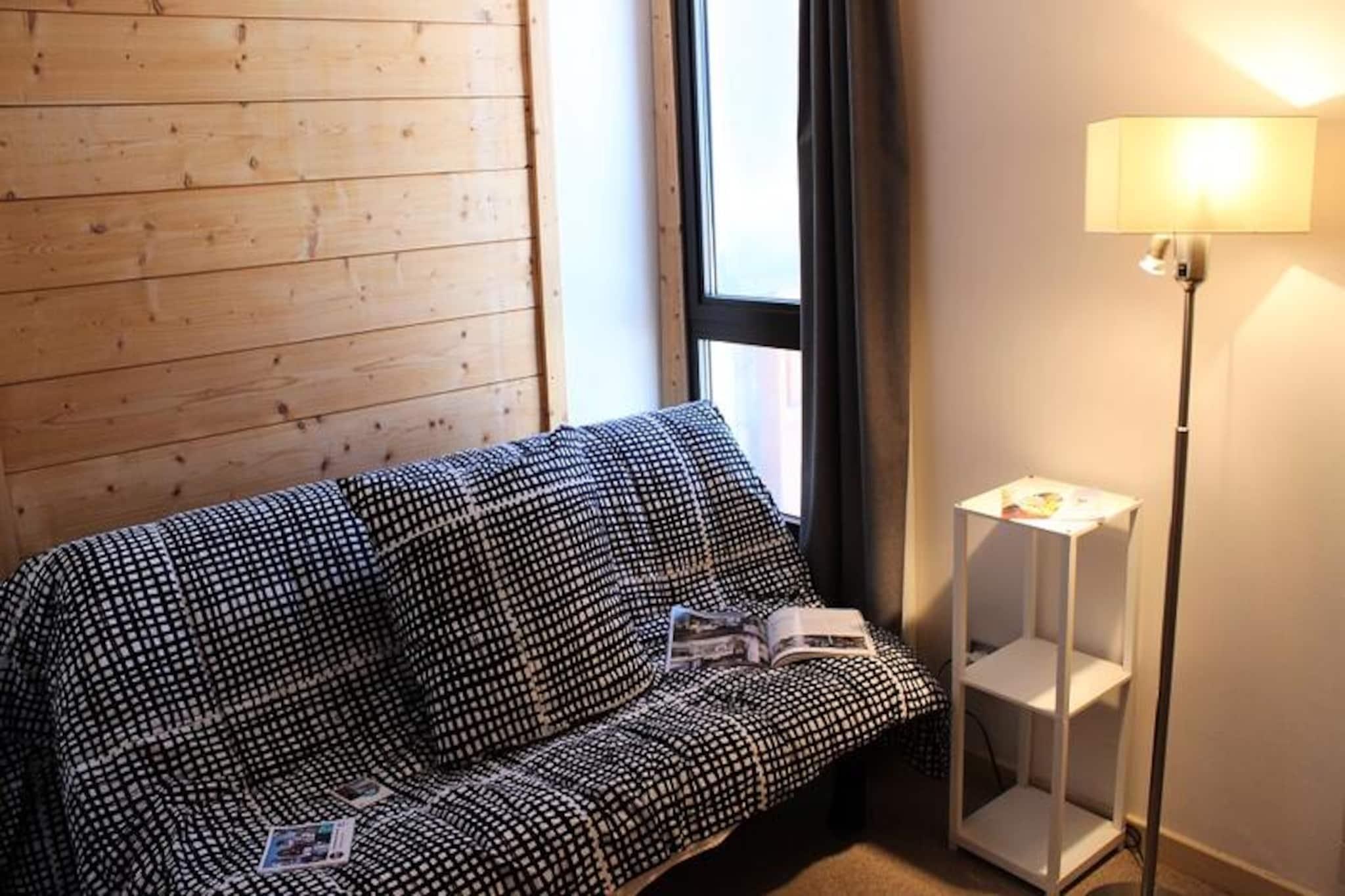 I det pulserende Péclet-distrikt i Val Thorens tilbyder denne hyggelige lejlighed i Les Trois Vallées-residensen en perfekt base for dine alpine eventyr. Beliggende i den øvre del af feriestedet placerer den dig i hjertet af begivenhederne, med Péclet-indkøbscentret lige på den anden side af gaden. Her finder du alt, hvad du behøver, fra et sherpa-supermarked og bageri til skiudlejningsbutikker, restauranter og livlige afterski-barer. Skiliftkontoret og adgangen til pisten ligger kun 50 meter væk, hvilket gør det nemt at dykke ned i verdensklasse skiløb i Les Trois Vallées-området. Denne 45 m² store lejlighed, der ligger på 5. sal med elevatoradgang, har komfortabel plads til op til seks gæster. Stuen har en sovesofa til to personer, et fjernsyn og en varm og indbydende atmosfære til at slappe af efter en dag på pisterne. Tekøkkenet er fuldt udstyret med ovn, mikrobølgeovn, komfur, køleskab/fryser, opvaskemaskine og endda en vaskemaskine, hvilket sikrer bekvemmelighed under hele dit ophold. Et separat soveområde med køjesenge og et moderne brusebad med separat toilet fuldender planløsningen og tilbyder både praktisk anvendelighed og komfort. Val Thorens er et paradis for vintersportsentusiaster med sine højtliggende pister og betagende udsigt over bjergene. Udover skiløb kan du nyde det pulserende landsbyliv med travle butikker, gourmetrestauranter og et livligt natteliv. Uanset om du er her for at grave dig gennem sneen eller blot nyde den alpine charme, tilbyder denne lejlighed det perfekte tilflugtssted for en uforglemmelig ferie i de franske alper.