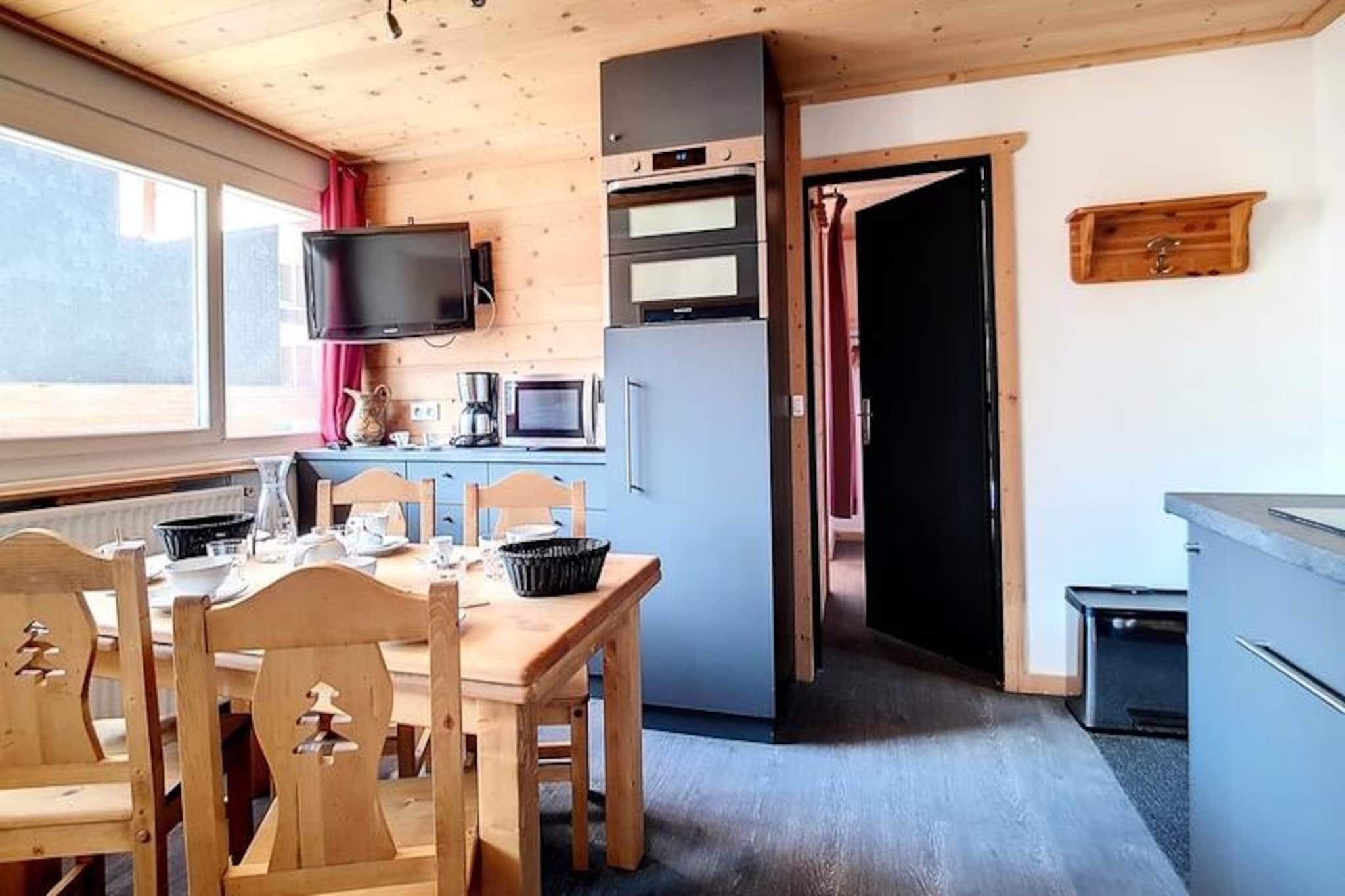 I det rolige Croisette-distrikt tilbyder dette charmerende alpine tilflugtssted en perfekt blanding af komfort og bekvemmelighed til din bjergferie. Kun 100 meter fra pisterne og den travle Croisette-indkøbsarkade er denne bolig en ideel base for skientusiaster og dem, der ønsker at udforske Alpernes pulserende hjerte. De rolige omgivelser og den nemme adgang til faciliteter gør det til et paradis for både afslapning og eventyr. Denne hyggelige 3-værelses lejlighed er på 36 m² og er omhyggeligt designet til at rumme op til seks gæster. Den vestvendte lejlighed, der ligger på første sal med elevatoradgang, inviterer dig til at slappe af i den varme eftermiddagssol. Stuen har en komfortabel sofa og et fjernsyn, mens soveværelset i sovesalstil tilbyder to sæt enkeltkøjesenge, adskilt af et mørklægningsgardin for privatliv. Et andet soveværelse med en dobbeltseng sikrer afslappende nætter efter en dag på pisterne. Det fuldt udstyrede køkken inkluderer keramiske kogeplader, køleskab, ovn, mikrobølgeovn, opvaskemaskine og mere, hvilket gør det nemt at tilberede solide måltider. Yderligere detaljer som parketgulv og en skopumptørrer bidrager til komforten og det praktiske ved dit ophold. Træd udenfor, og find dig selv kun få øjeblikke fra pisterne, hvor spændende alpine eventyr venter. Den nærliggende Croisette-indkøbsarkade tilbyder et udvalg af butikker, restauranter og afterski-muligheder, så du har alt, hvad du behøver, lige ved hånden. Gratis parkering ved foden af ??boligen øger bekvemmeligheden, selvom tilgængeligheden er begrænset. Uanset om du er her for at grave dig gennem frisk puddersne eller blot nyde den fantastiske udsigt over bjergene, er denne bolig din indgang til en uforglemmelig alpin flugt. Med sin hyggelige atmosfære og uovertrufne beliggenhed lover den et ophold fyldt med kære minder.