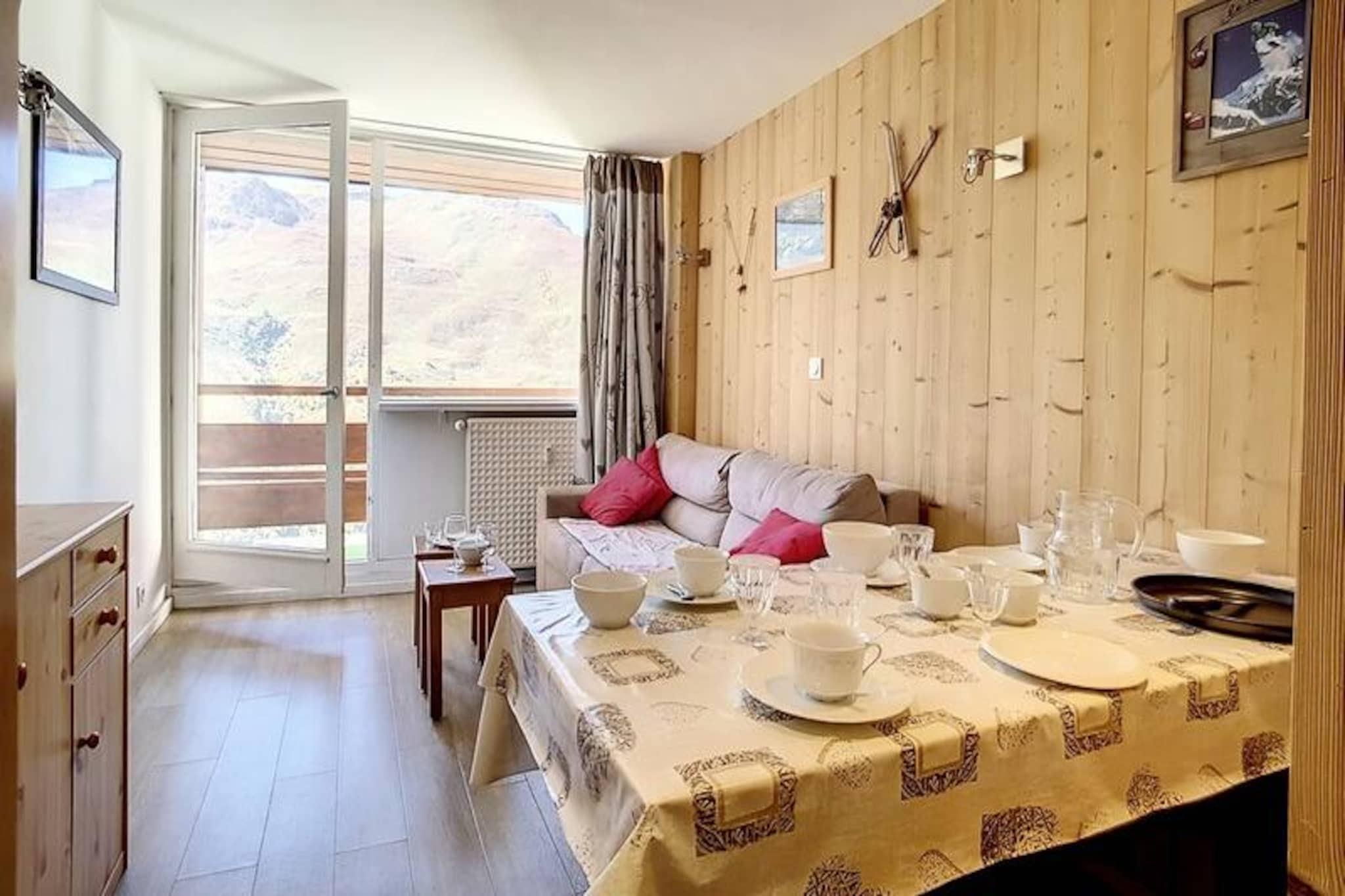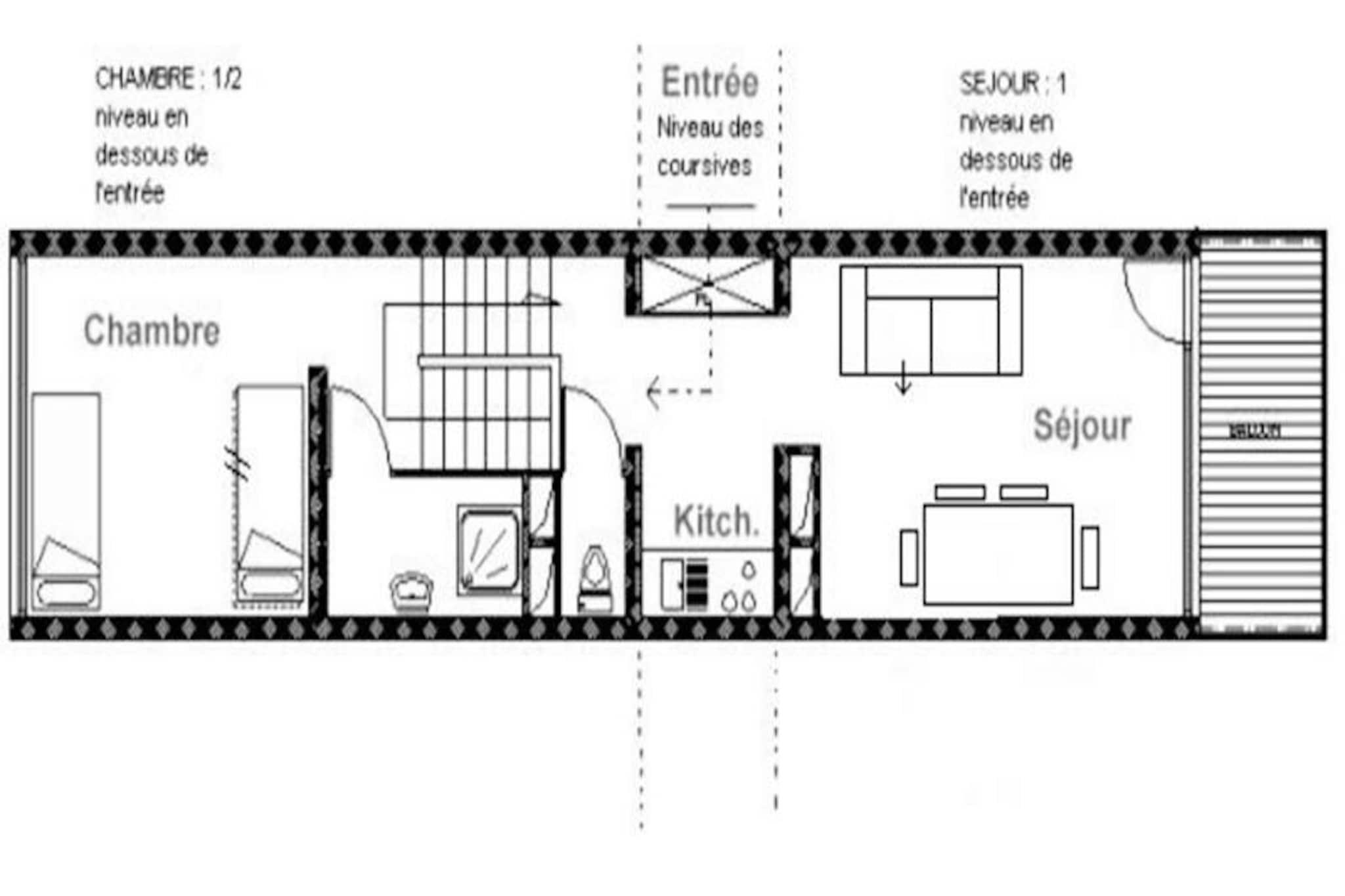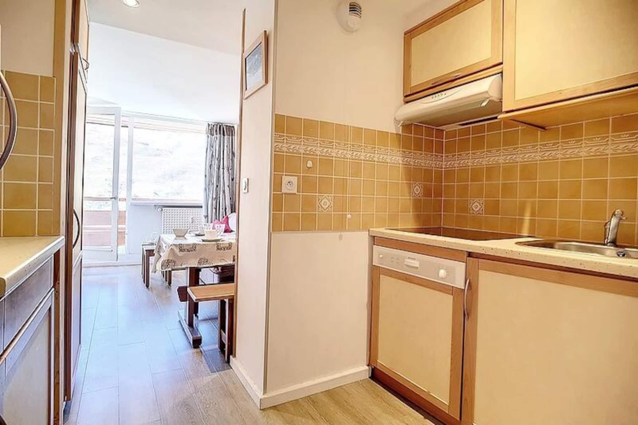 Résidence Les Lauzes er badet i de franske alpers gyldne nuancer og tilbyder et roligt tilflugtssted i Croisette-distriktet i Les Menuires. Denne charmerende duplexlejlighed er perfekt placeret kun 100 meter fra pisterne og inviterer dig til at omfavne spændingen ved alpine eventyr. Med en sydvestvendt balkon kan du nyde en betagende udsigt over de omkringliggende tinder og varmen fra eftermiddagssolen, når den går ned over bjerglandskabet. Den fredelige atmosfære i boligen sikrer en afslappende tilflugt, mens den nærliggende Croisette-indkøbscenter tilføjer bekvemmelighed og livlighed til dit ophold. \n\nIndenfor er den totalrenoverede toværelseslejlighed på 36 m² og har komfortabel plads til op til fem gæster. Stuen har en hyggelig dobbeltsovesofa og et fladskærms-tv, perfekt til afslapning efter en dag på pisterne. Soveværelset er udstyret med to sæt køjesenge, ideelt til familier eller vennegrupper. Et moderne badeværelse med bruser og separat toilet sørger for praktisk anvendelighed, mens det fuldt udstyrede køkken kan prale af keramisk kogeplade, stort køleskab, opvaskemaskine, mikrobølgeovn/grill, brødrister, elkedel og kaffemaskine, hvilket sikrer alle hjemmets bekvemmeligheder. Linoleumsgulve overalt tilføjer et strejf af moderne stil, og der er tæpper for ekstra hygge. \n\nTræd udenfor og oplev charmen ved Les Menuires, hvor gratis parkering ved foden af ??boligen (afhængigt af tilgængelighed) gør det nemt at udforske området. Uanset om du står på ski ned ad uberørte pister eller slentrer gennem Croisette-arkaden, tilbyder beliggenheden uendelige muligheder for eventyr og afslapning. Med sine rolige omgivelser og moderne faciliteter er Résidence Les Lauzes det perfekte valg for dem, der søger en mindeværdig alpeferie. \n\nLad de franske alpers skønhed og komforten i denne dejlige lejlighed skabe uforglemmelige minder for dig og dine kære.