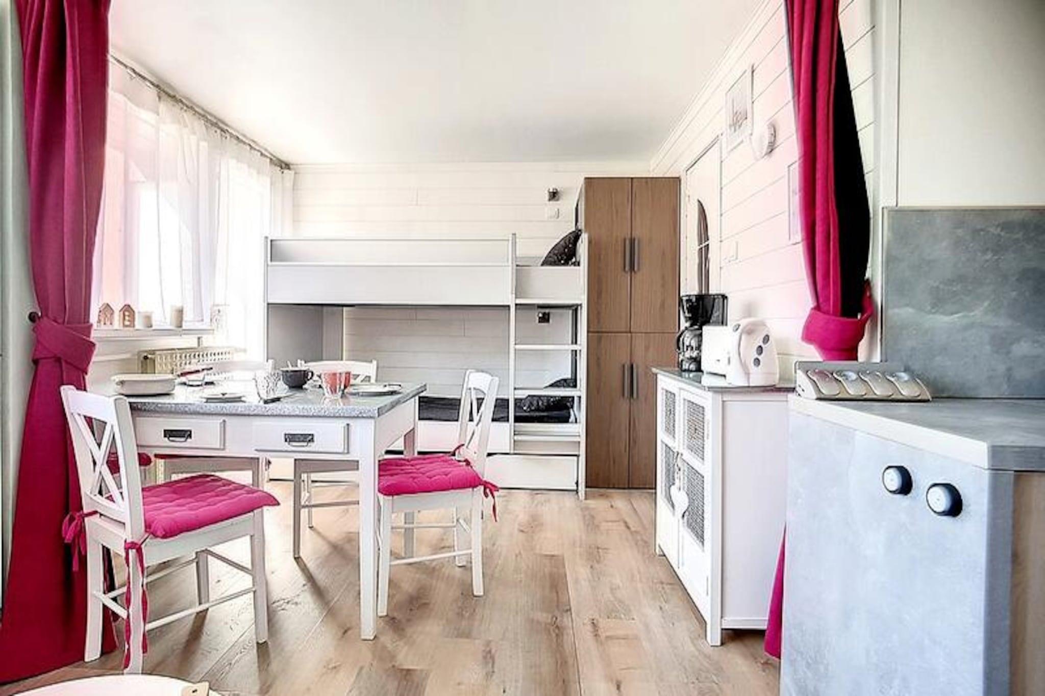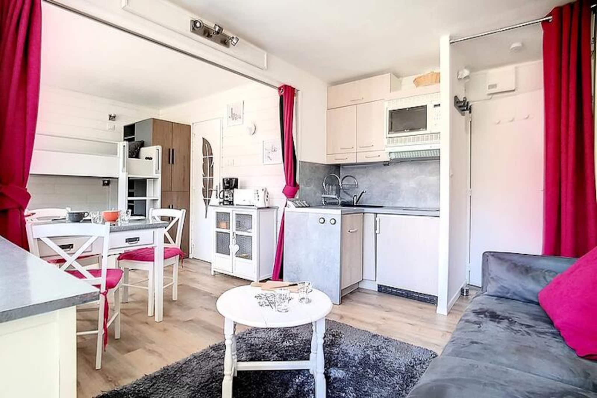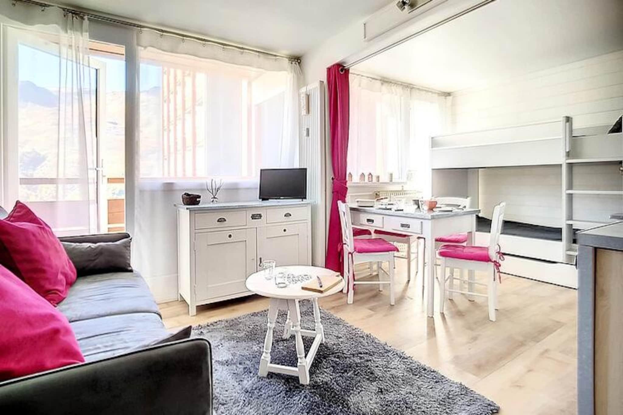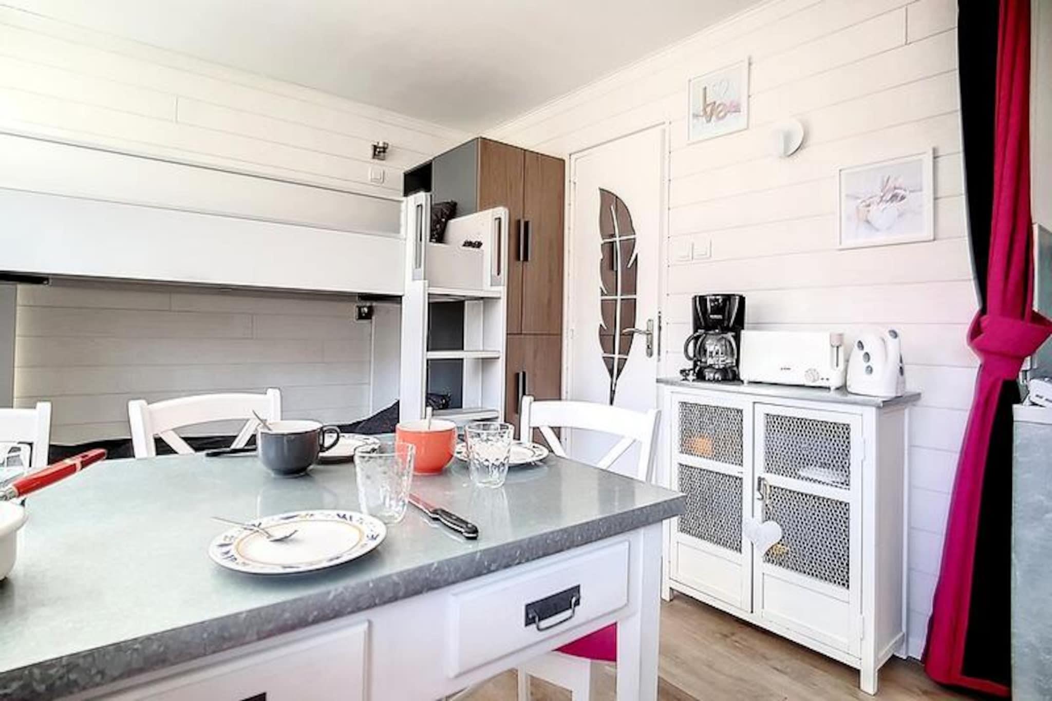 I det fredfyldte Croisette-distrikt, hvor charmen fra de franske alper møder moderne bekvemmeligheder, tilbyder Résidence Les Lauzes et roligt tilflugtssted kun 100 meter fra pisterne. Forestil dig at starte din dag med den friske bjergluft, træde ud af dit hyggelige studie og finde dig selv øjeblikke væk fra spændende alpine eventyr. Residensens fredelige atmosfære, kombineret med dens nærhed til Croisette-indkøbscentret, gør det til et ideelt valg for dem, der søger både afslapning og tilgængelighed. Gratis parkering ved foden af ????residensen bidrager til at gøre dit ophold lettere, afhængigt af tilgængelighed. \n\nDenne omhyggeligt designede 24 m² store studiolejlighed, beliggende på 2. sal med elevatoradgang, har komfortabel plads til op til fire gæster. Opholdsstuen har en dobbelt sovesofa og to enkeltkøjesenge, perfekt til familier eller små grupper. En sydvestvendt balkon inviterer dig til at slappe af med en fantastisk udsigt, mens rullegardinen sikrer privatliv og komfort. Det fuldt udstyrede køkken inkluderer keramiske kogeplader, en kombineret ovn/mikrobølgeovn, køleskab, opvaskemaskine, brødrister, elkedel og kaffemaskine, hvilket gør det nemt at tilberede måltider efter en dag på pisterne. Moderne bekvemmeligheder såsom et fjernsyn og et veludstyret badeværelse med bruser og toilet fuldender rummet. Bemærk venligst, at køjesengene ikke er egnede til børn under seks år, og lejligheden er røgfri og kæledyrsfri.\n\nUd over boligen tilbyder Croisette-distriktet en pulserende blanding af shopping, restauranter og afterski-muligheder, alt sammen inden for gåafstand. Uanset om du er skientusiast eller sommervandrer, giver beliggenheden problemfri adgang til det bedste af Alperne. Fra spændende pister til naturskønne stier lover hvert øjeblik her uforglemmelige minder. Vælg Résidence Les Lauzes for en harmonisk blanding af alpin charme og moderne komfort, der sikrer en ferie, der hænger ved i dit hjerte længe efter, du er taget afsted.
