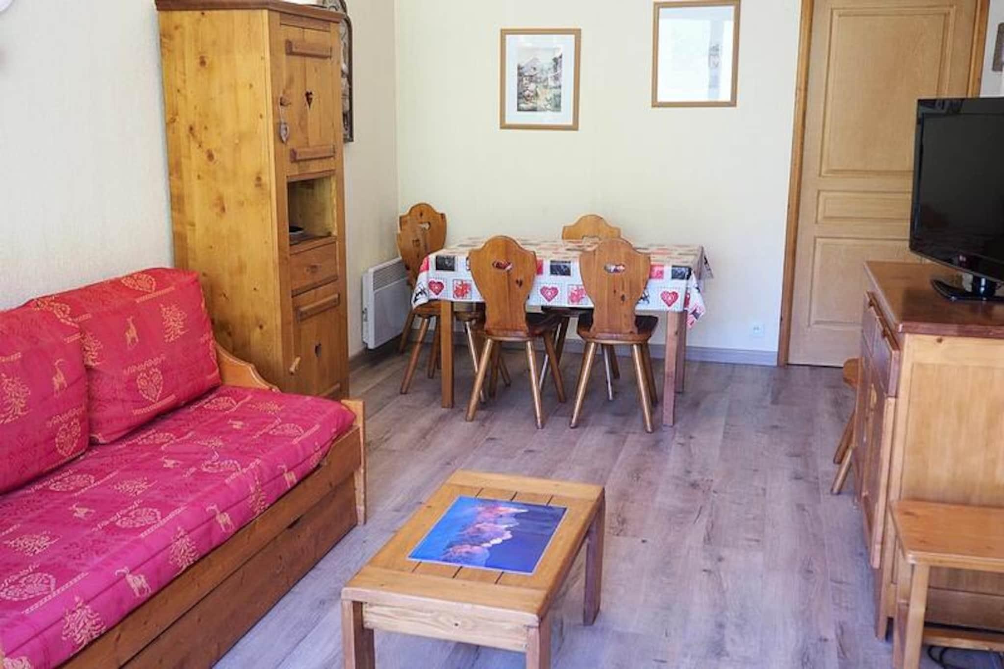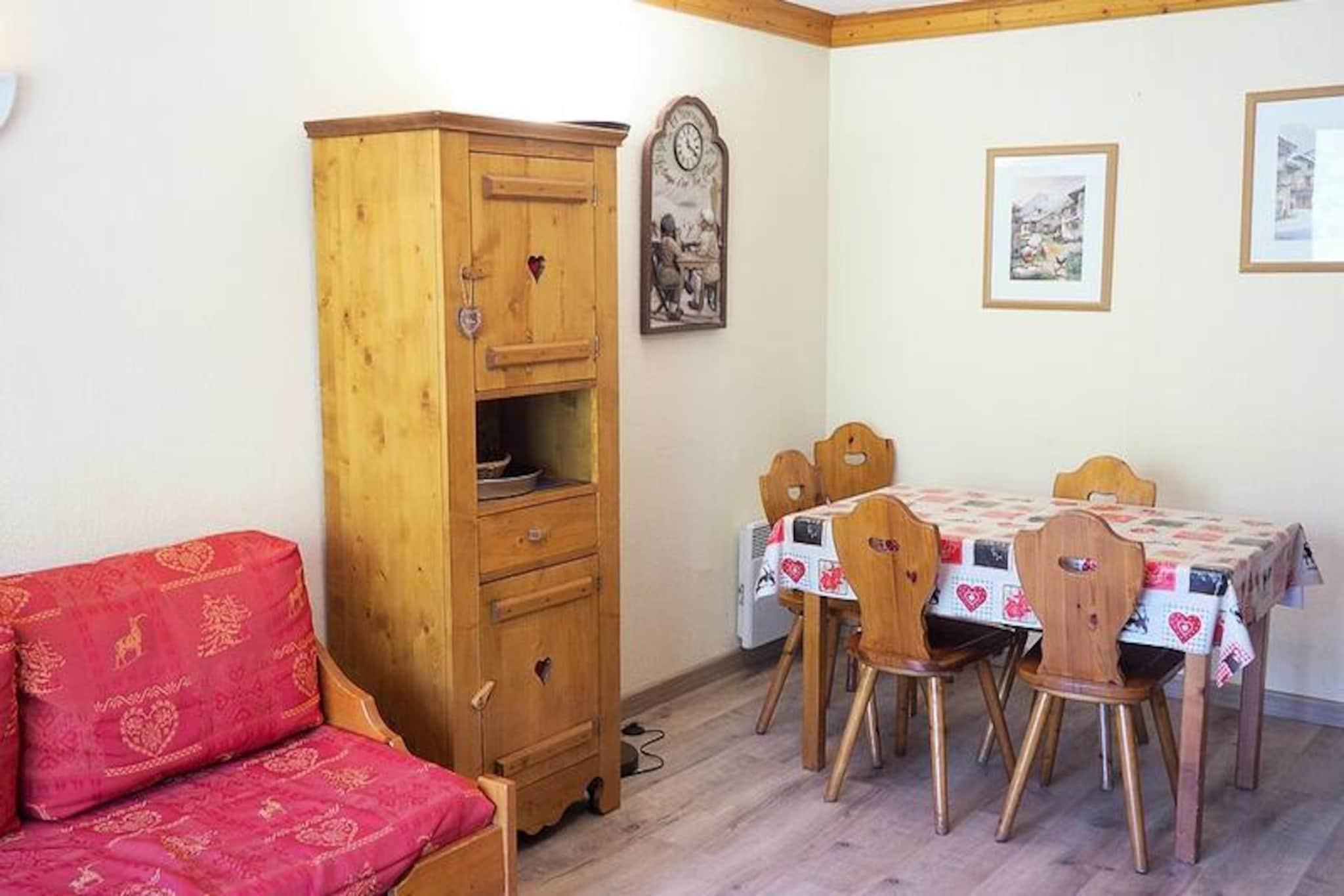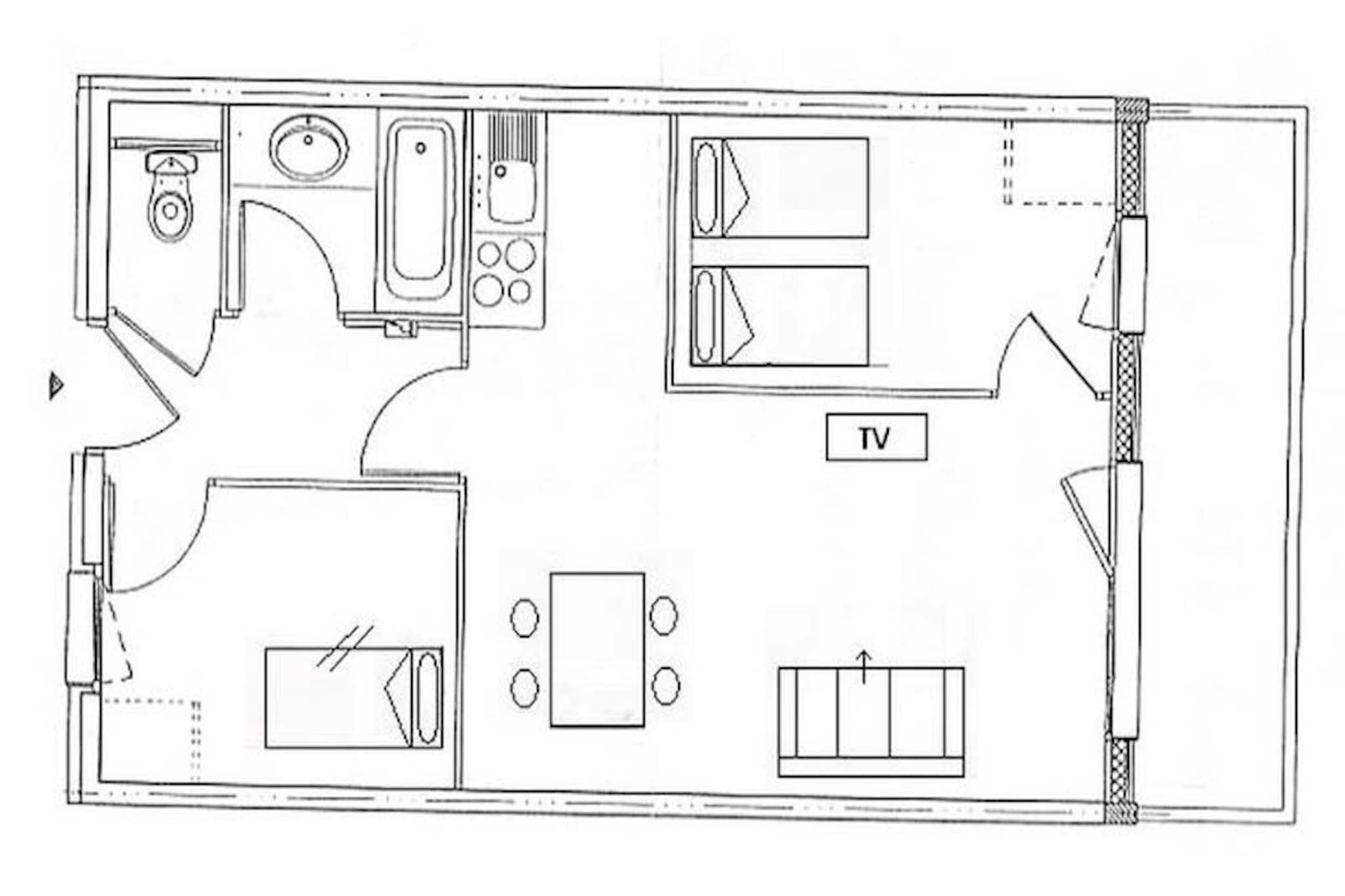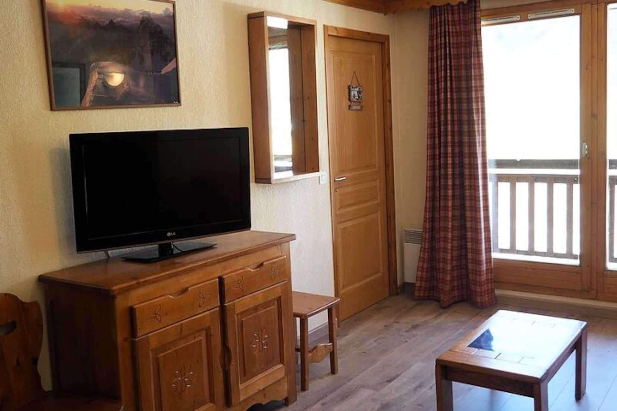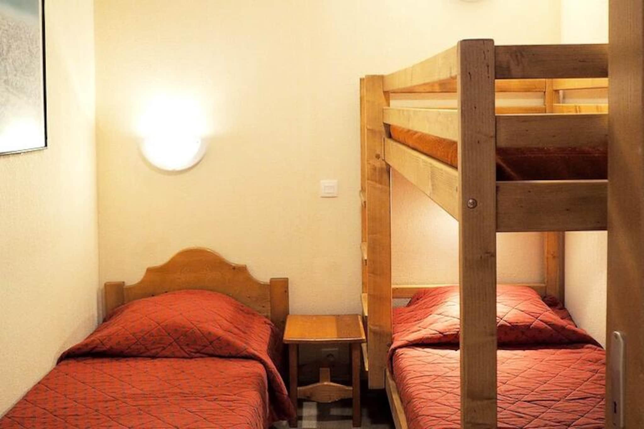 Højt over det travle Bruyères-distrikt inviterer denne charmerende alpelejlighed dig til at opleve magien i de franske alper i komfort og stil. Med skilifter og pister lige uden for døren begynder dine dage ubesværet, mens du glider ind i den uberørte sne i Les Menuires. Fra den sydvestvendte balkon kan du nyde de gyldne nuancer af den nedgående sol, mens bjergene hvisker historier om eventyr og ro. Boligen har en perfekt beliggenhed og tilbyder nem adgang til hjertet af Bruyères, kun 200 meter væk, der fyldt med restauranter, butikker og underholdningsmuligheder. \n\nDenne hyggelige 3-værelses lejlighed på femte sal er designet til op til seks gæster og er et afslappende paradis efter en dag med alpin udforskning. Stuen har en enkelt sovesofa og en udtræksseng, mens to soveværelser tilbyder fleksible sovearrangementer, herunder køjesenge og enkeltsenge. Det fuldt udstyrede køkken med keramisk kogeplade, mikrobølgeovn, køleskab og opvaskemaskine sikrer, at du kan tilberede solide måltider til dine eventyr. Moderne bekvemmeligheder som tv og laminatgulv bidrager til komforten, mens badeværelset med badekar tilbyder et beroligende tilflugtssted. \n\nBruyères-distriktet er et centrum for aktivitet og tilbyder et vandland, wellnesscenter, biograf, skiskole og endda en kælkebane til familiesjov. Børnene kan nyde legepladsen, mens de voksne udforsker de lokale butikker eller nyder et måltid på en af ??de indbydende restauranter. Om aftenen forvandles områdets pulserende atmosfære til en hyggelig alpelandsby, der er perfekt til afslapning. \n\nUanset om du er her for spændingen ved pisterne eller charmen ved bjergene, kombinerer denne lejlighed bekvemmelighed, komfort og en betagende udsigt for at skabe en uforglemmelig alpin ferie.