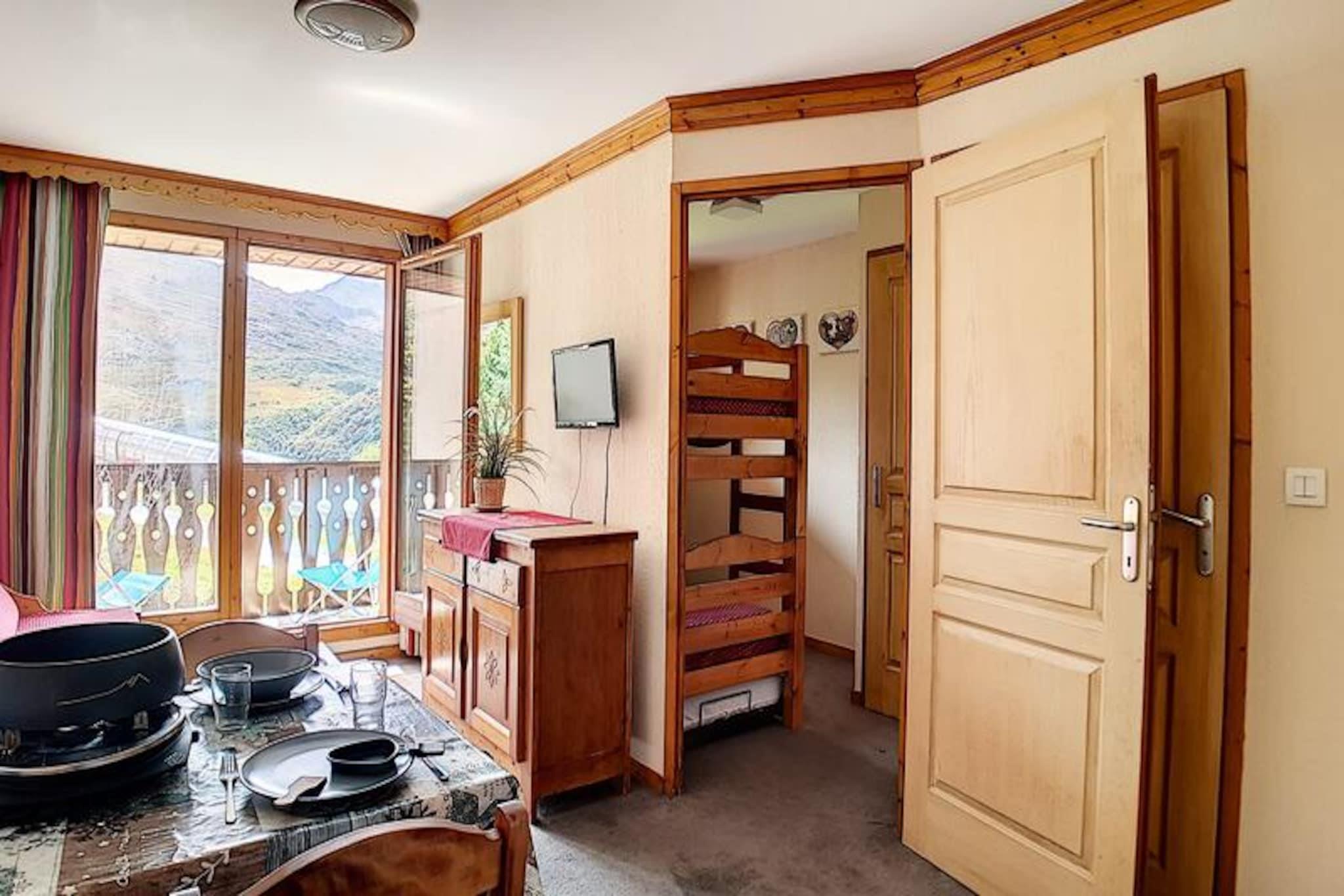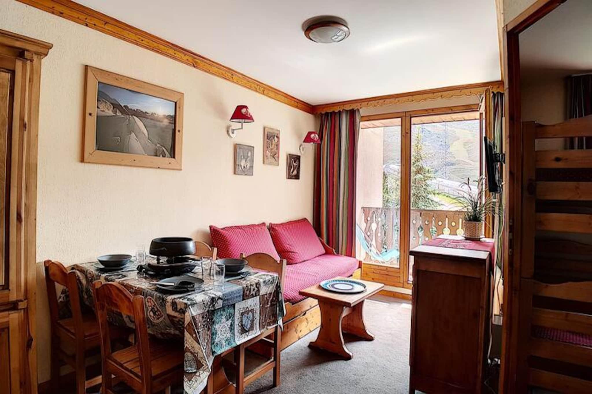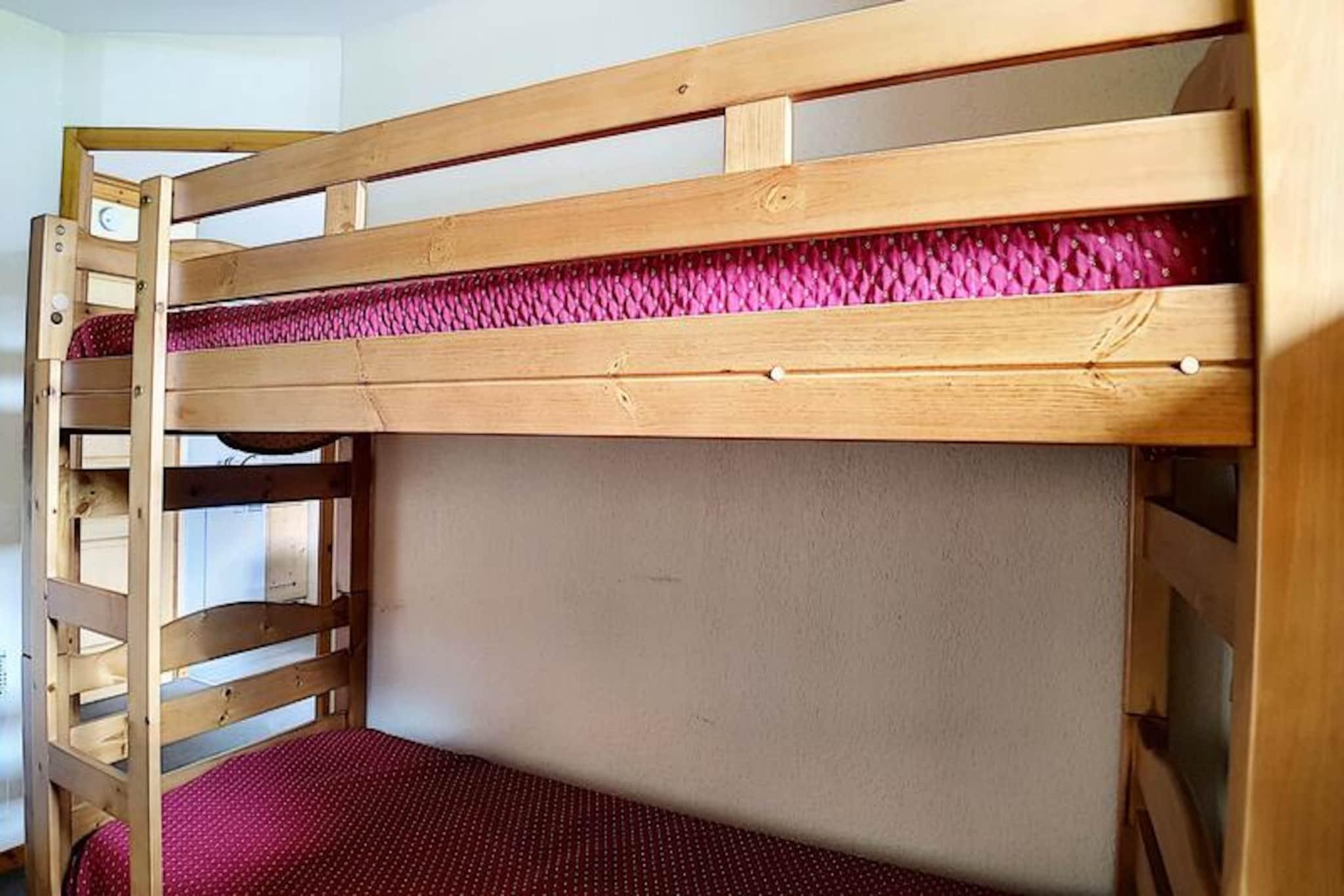 Højt over de glitrende pister i Les Menuires tilbyder denne hyggelige lejlighed i Valmonts A-residensen et varmt tilflugtssted for både vintersportsentusiaster og sommereventyrere. Ejendommen ligger i det livlige Bruyères-distrikt, kun få skridt fra skilifter og pister, hvilket sikrer ubesværet adgang til det berømte skiområde Les Trois Vallées. Fra den sydvendte balkon kan du nyde det alpine solskin og den betagende udsigt, der sætter tonen for en uforglemmelig bjergferie. Uanset om du er her for at grave dig gennem frisk puddersne eller udforske naturskønne vandrestier, placerer denne beliggenhed dig i hjertet af det hele. \n\nLejligheden er perfekt designet til op til fire gæster og har en komfortabel stue med en enkelt sovesofa og en udtræksseng samt et separat soveværelse med køjesenge og en ekstra udtræksseng. Det fuldt udstyrede køkken har moderne bekvemmeligheder såsom keramisk kogeplade, mikrobølgeovn, køleskab, opvaskemaskine, elkedel, kaffemaskine og brødrister - ideelt til at tilberede solide måltider efter en dag med eventyr. Badeværelset har et afslappende badekar, og det separate toilet gør det nemmere. Denne ikke-ryger lejlighed er beklædt med tæpper for ekstra varme og sikrer et hyggeligt ophold med tæpper og Wi-Fi mod betaling. \n\nBruyères-distriktet er et pulserende centrum med restauranter, butikker, en biograf, et vandland, wellnesscenter, skiskole og endda en kælkebane til familiesjov. Den nærliggende legeplads og turistkontoret gør det nemt at planlægge dine dage, mens parkeringspladsen Balcons des Bruyères sikrer problemfri ankomst og afrejse. Uanset om du søger spændende nedkørsler, rolige alpine vandreture eller blot en rolig ferie, inviterer denne charmerende bolig dig til at opleve magien i de franske alper.