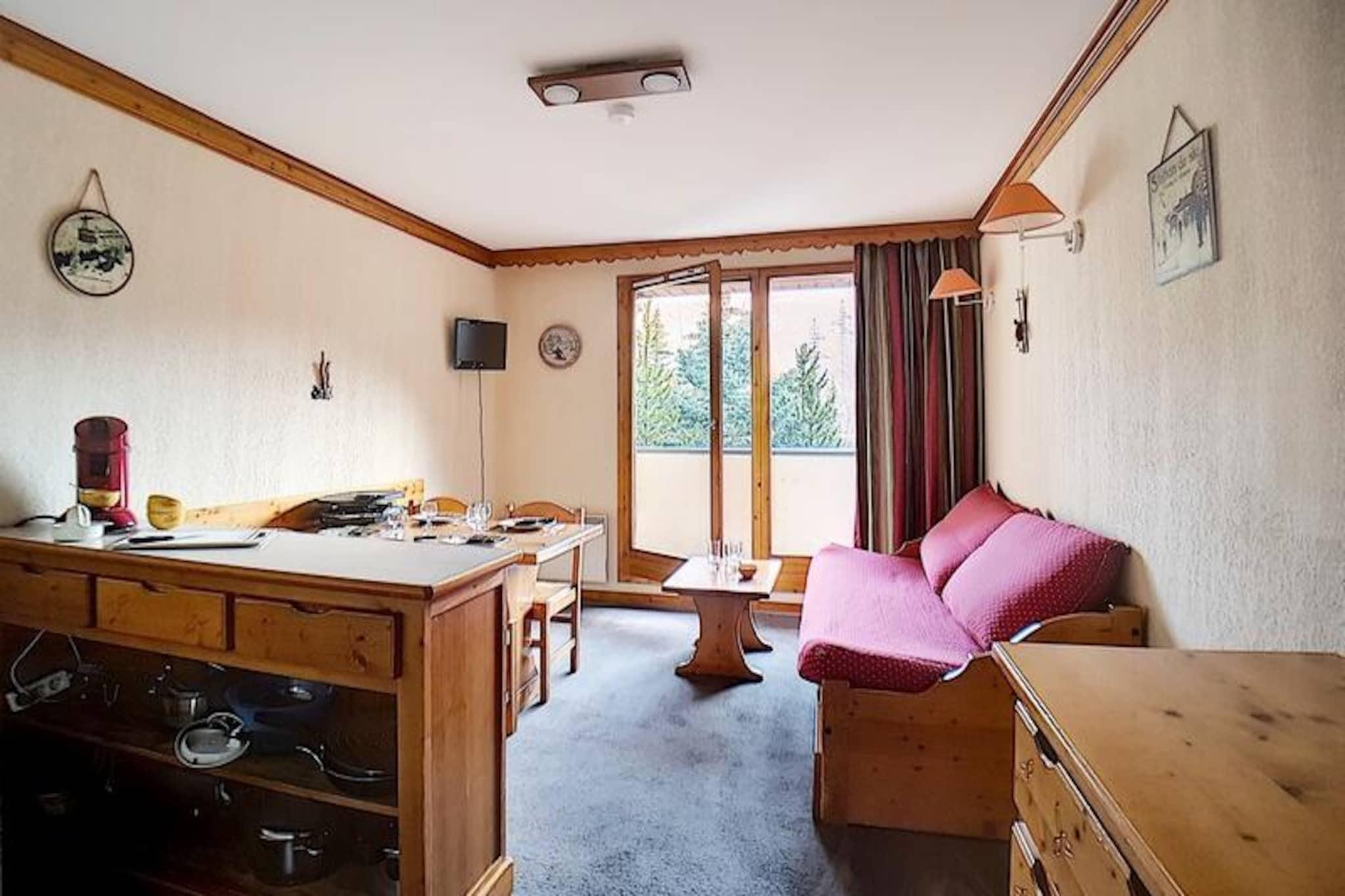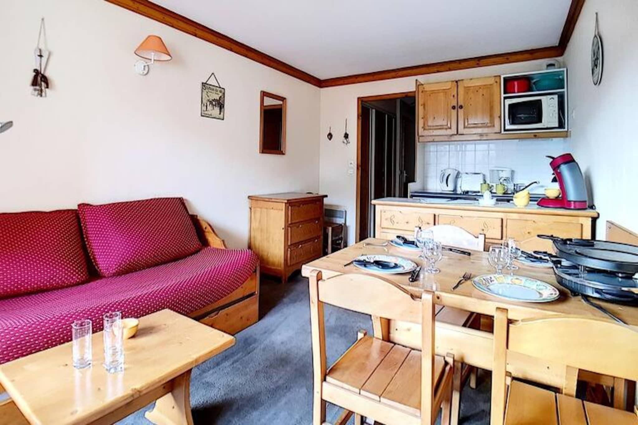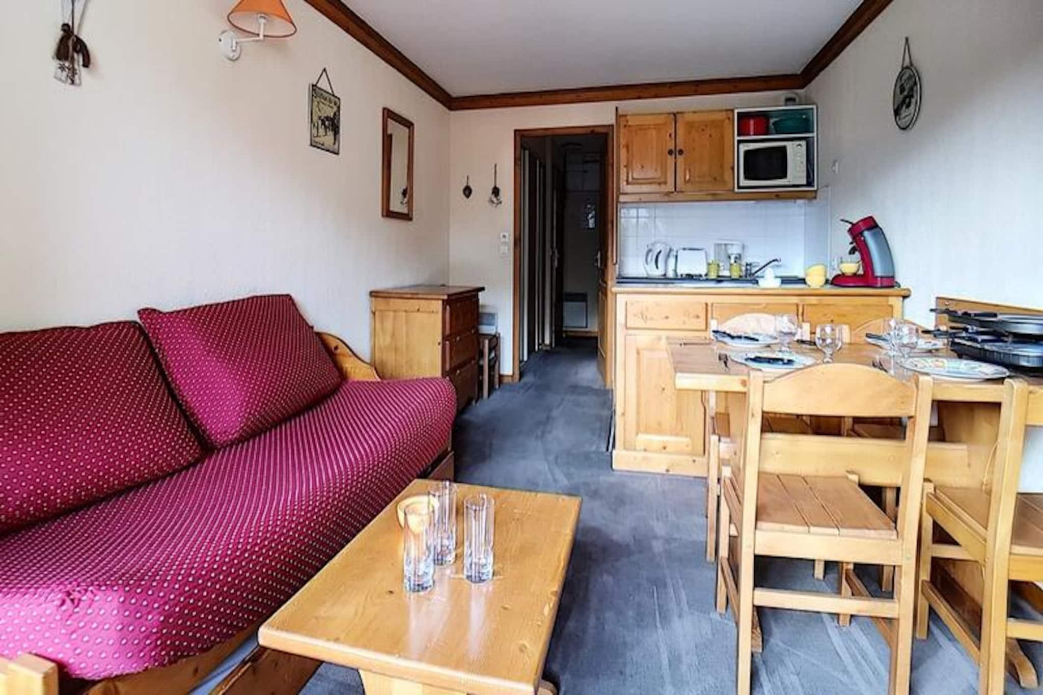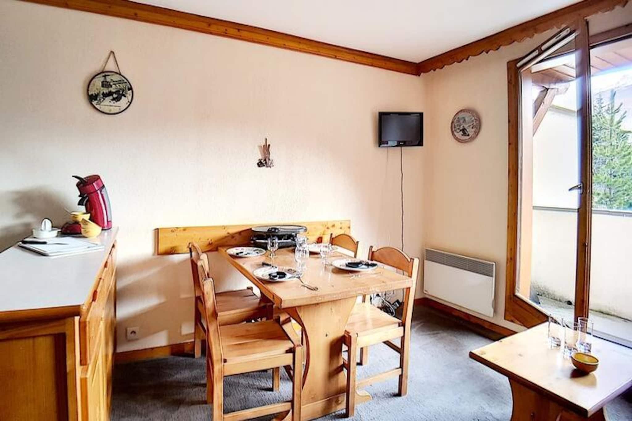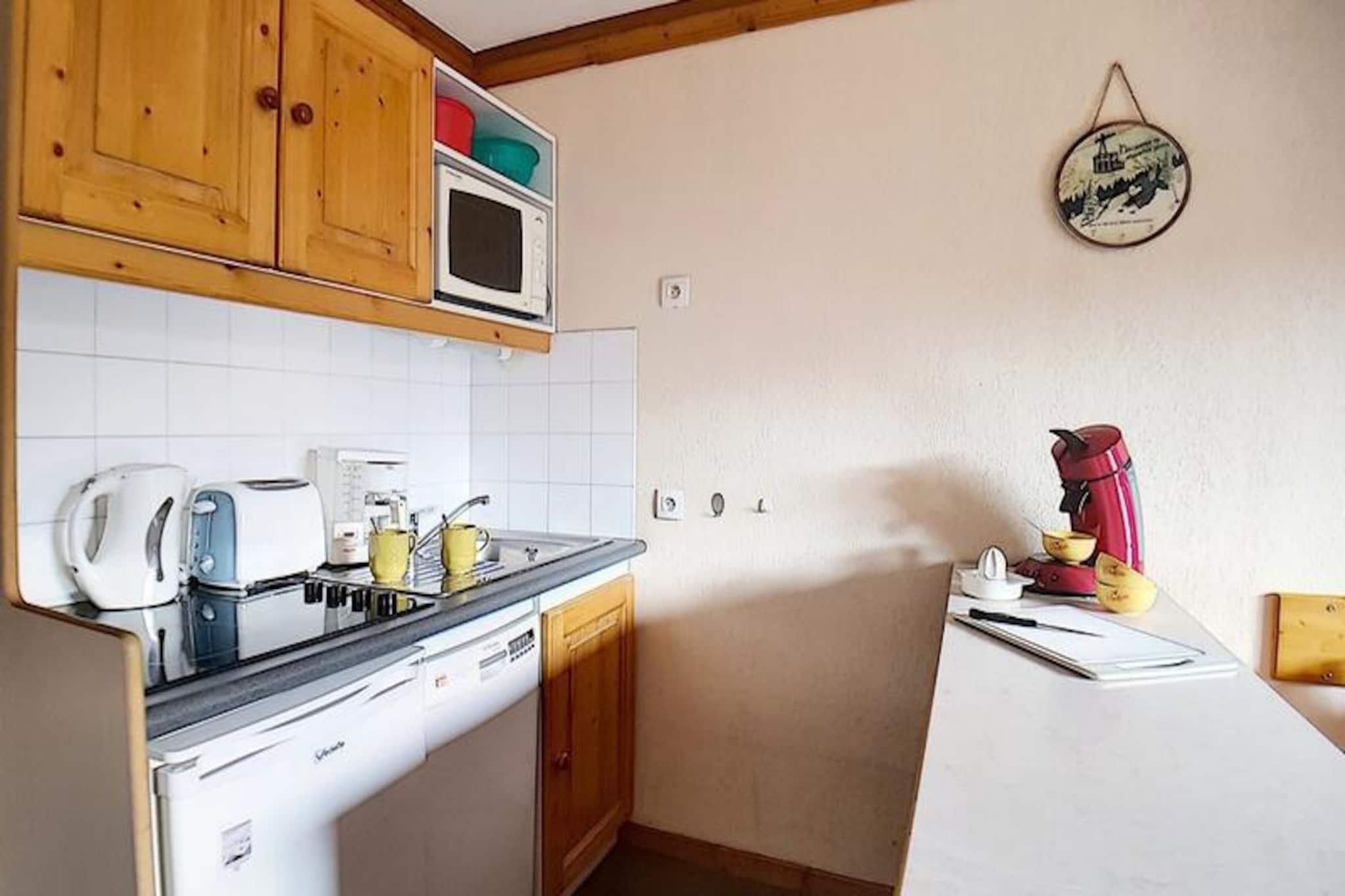 Højt over det travle Bruyères-distrikt tilbyder denne charmerende lejlighed et hyggeligt tilflugtssted med betagende udsigt over de omkringliggende pister. Beliggende på 7. sal i Valmonts A-residensen har gæsterne direkte adgang til skilifterne og pisterne, hvilket gør den til den perfekte base for vintersportsentusiaster. Med sin sydvendte balkon kan du nyde den alpine sol og rolige øjeblikke midt i de majestætiske tinder af Les Menuires. Uanset om du er her for at stå på ski eller blot for at slappe af, kombinerer denne bolig bekvemmelighed med komfort i hjertet af de franske alper. \n\nIndvendigt er lejligheden omhyggeligt designet til at rumme op til fire gæster. Stuen har en enkelt sovesofa og en udtræksseng, mens soveværelset har to hyggelige enkeltsenge. Køkkenet er fuldt udstyret med moderne apparater, herunder keramisk kogeplade, opvaskemaskine, mikrobølgeovn/grill og kaffemaskiner, så du kan tilberede lækre måltider efter en dag på pisterne. Badeværelset med badekar og separat toilet bidrager til bekvemmeligheden, mens de tæppebelagte gulve og den varme indretning skaber en indbydende atmosfære. Bemærk venligst, at lejligheden er røgfri og kæledyrsfri, hvilket sikrer et rent og roligt miljø for alle besøgende. \n\nBruyères-distriktet er et livligt knudepunkt med alt, hvad du behøver, kun få skridt væk. Udforsk de lokale restauranter og butikker, slap af i wellnesscentret, eller nyd familievenlige aktiviteter som kælkebane og legeplads. Den nærliggende biograf og vandland tilbyder underholdning for alle aldre, mens skiskolen henvender sig til både begyndere og erfarne skiløbere. Med betalt Wi-Fi-adgang kan du holde forbindelsen, mens du fordyber dig i Les Menuires alpine charme. \n\nUanset om du søger spændende eventyr på pisterne eller fredelige øjeblikke omgivet af natur, tilbyder denne lejlighed de ideelle rammer for en uforglemmelig ferie i de franske alper. Lad bjergenes skønhed og Bruyères' pulserende energi skabe minder for livet.