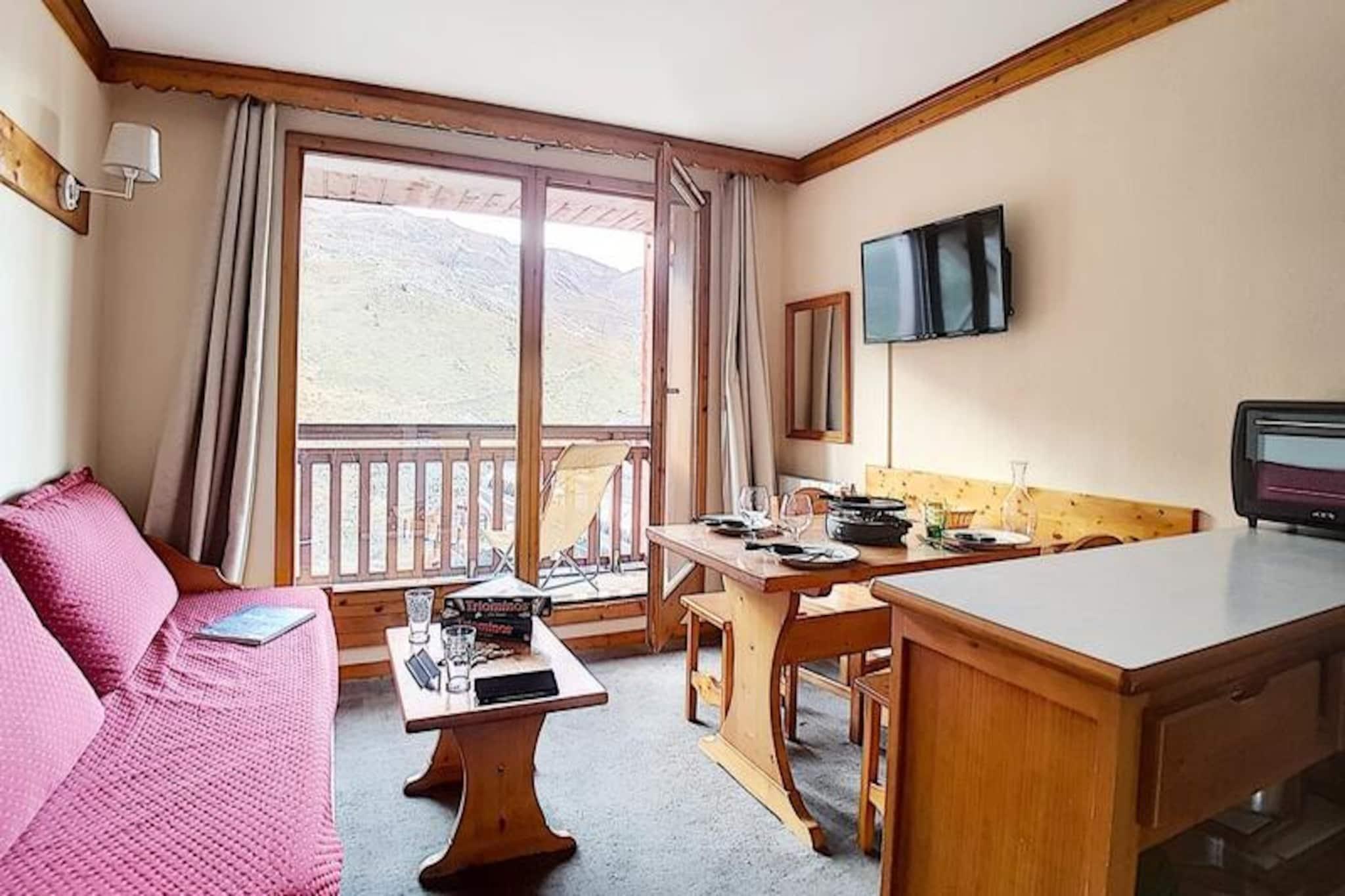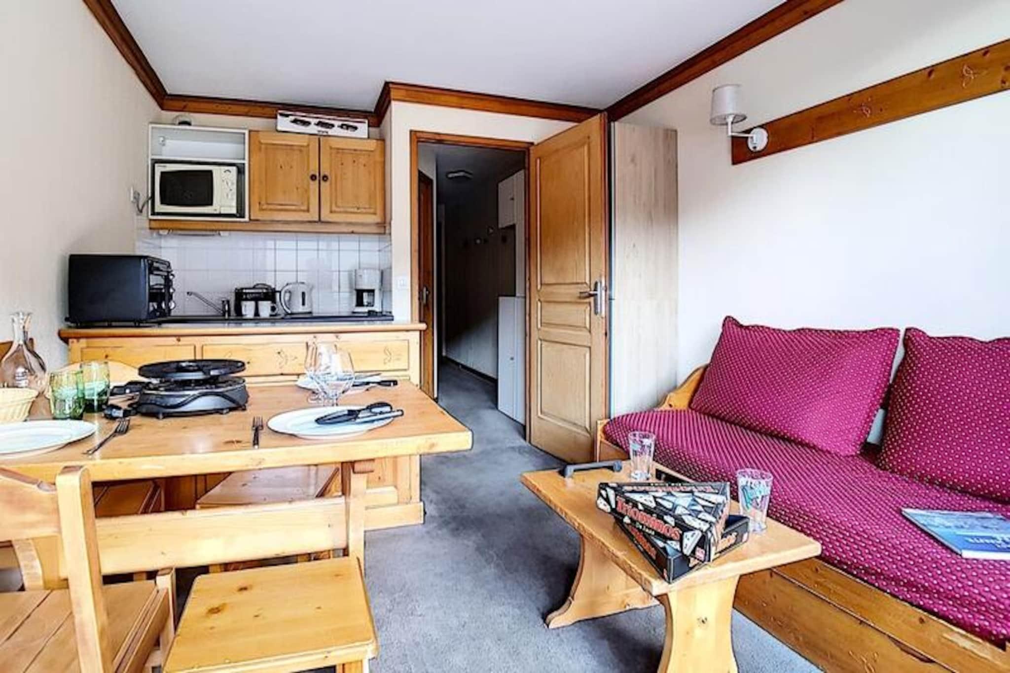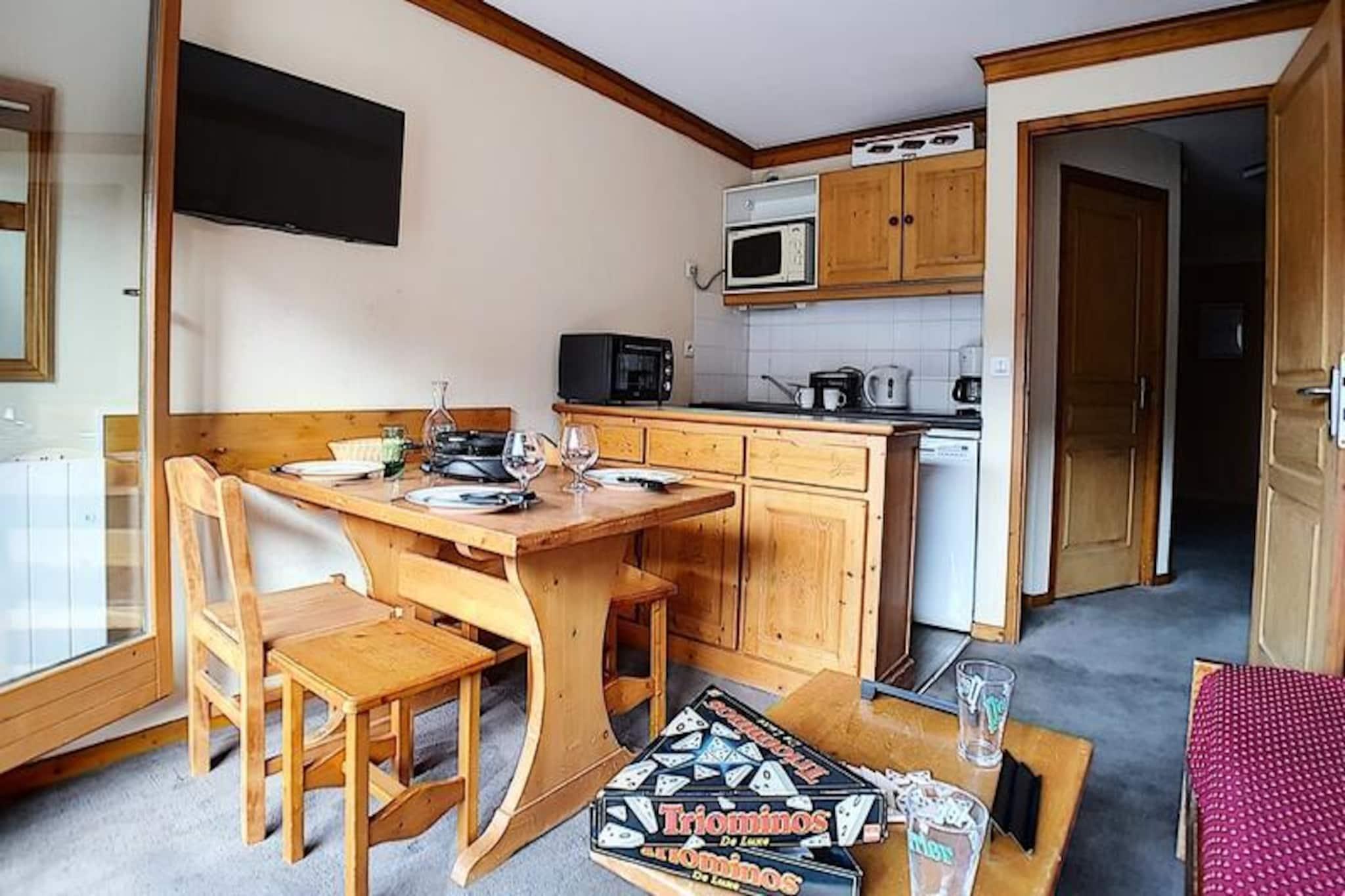 Højt over det travle Bruyères-distrikt inviterer denne charmerende alpelejlighed dig til at opleve magien i de franske alper i enhver sæson. Med skilifter og pister kun få skridt fra din dør kan du vågne op til den friske bjergluft og begive dig direkte ud i en dag med eventyr. Uanset om du snor dig gennem frisk puddersne eller nyder sommersolen på naturskønne stier, tilbyder denne bolig den perfekte base for din alpeferie. Den sydvestvendte balkon tilbyder et roligt tilflugtssted, hvor du kan nyde den betagende udsigt over de omkringliggende tinder og dale. \n\nIndenfor er lejligheden omhyggeligt designet til at rumme op til fire gæster. Stuen har en sovesofa, der kan åbnes hurtigt, og et tv til hyggelige aftener efter en dag udendørs. Soveværelset har en komfortabel dobbeltseng, der sikrer afslappende nætter. Det veludstyrede køkken inkluderer moderne apparater såsom keramisk kogeplade, ovn, mikrobølgeovn, køleskab, opvaskemaskine og essentielle redskaber som elkedel, kaffemaskine og brødrister, hvilket gør det nemt at tilberede måltider og snacks. Badeværelset er udstyret med badekar, vægmonteret hårtørrer og toilet, hvilket gør dit ophold endnu mere bekvemt. Lejligheden er belagt med tæpper overalt og er røgfri, med tæpper for ekstra komfort. \n\nSelve Bruyères-distriktet er et centrum for aktivitet og bekvemmelighed. Inden for 200 meter finder du restauranter, butikker, et turistkontor, en biograf, en skiskole, en kælkebane og endda et vandland og wellnesscenter. Familier vil sætte pris på den nærliggende legeplads, mens eventyrere nemt kan udforske pisterne og stierne. Adgangen til boligen er sikker, med en elevator og et adgangskodesystem, der sikrer ro i sindet. \n\nUanset om du søger spændende vintersport eller rolige sommervandreture, lover denne hyggelige lejlighed i hjertet af Les Menuires en uforglemmelig alpin flugt.