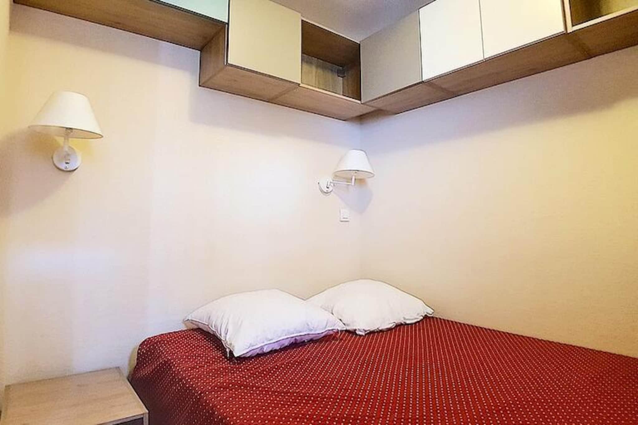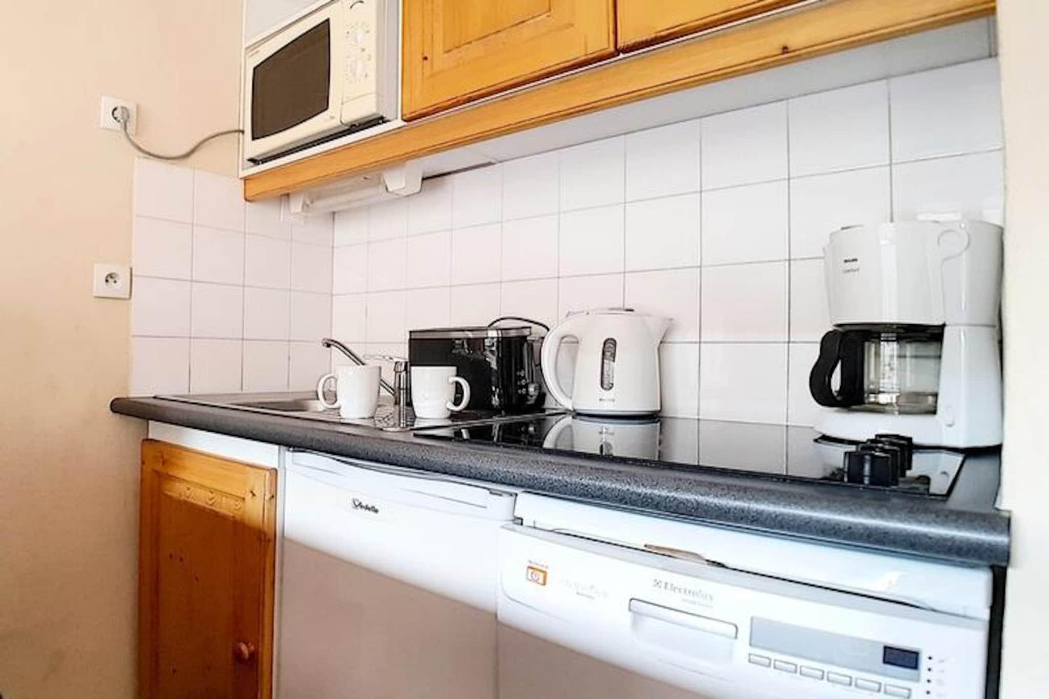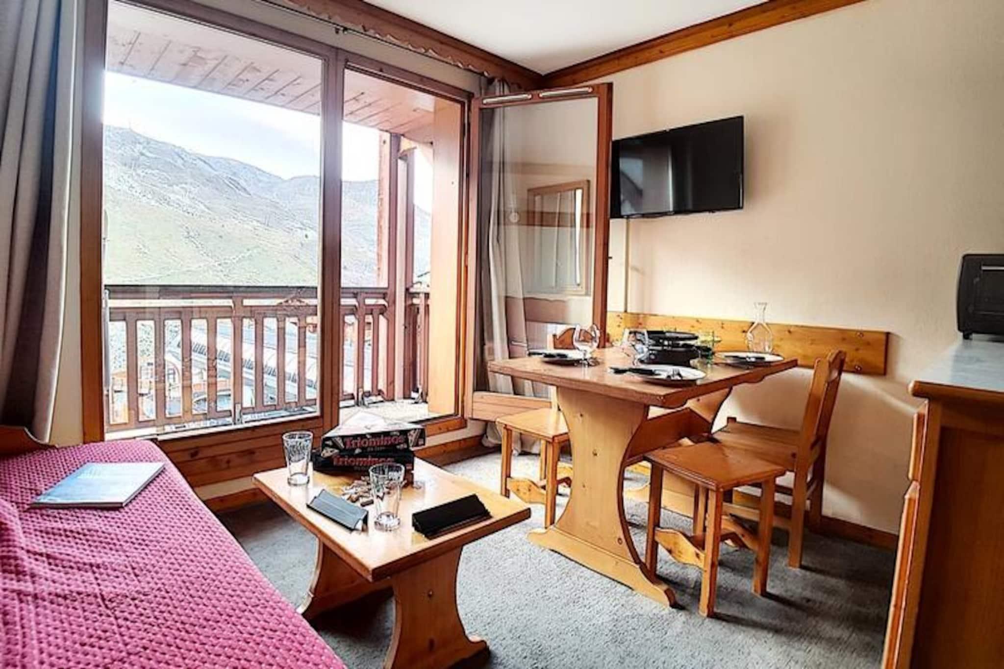 Højt over det travle Bruyères-distrikt inviterer denne charmerende alpelejlighed dig til at opleve magien i de franske alper i enhver sæson. Med skilifter og pister kun få skridt fra din dør kan du vågne op til den friske bjergluft og begive dig direkte ud i en dag med eventyr. Uanset om du snor dig gennem frisk puddersne eller nyder sommersolen på naturskønne stier, tilbyder denne bolig den perfekte base for din alpeferie. Den sydvestvendte balkon tilbyder et roligt tilflugtssted, hvor du kan nyde den betagende udsigt over de omkringliggende tinder og dale. \n\nIndenfor er lejligheden omhyggeligt designet til at rumme op til fire gæster. Stuen har en sovesofa, der kan åbnes hurtigt, og et tv til hyggelige aftener efter en dag udendørs. Soveværelset har en komfortabel dobbeltseng, der sikrer afslappende nætter. Det veludstyrede køkken inkluderer moderne apparater såsom keramisk kogeplade, ovn, mikrobølgeovn, køleskab, opvaskemaskine og essentielle redskaber som elkedel, kaffemaskine og brødrister, hvilket gør det nemt at tilberede måltider og snacks. Badeværelset er udstyret med badekar, vægmonteret hårtørrer og toilet, hvilket gør dit ophold endnu mere bekvemt. Lejligheden er belagt med tæpper overalt og er røgfri, med tæpper for ekstra komfort. \n\nSelve Bruyères-distriktet er et centrum for aktivitet og bekvemmelighed. Inden for 200 meter finder du restauranter, butikker, et turistkontor, en biograf, en skiskole, en kælkebane og endda et vandland og wellnesscenter. Familier vil sætte pris på den nærliggende legeplads, mens eventyrere nemt kan udforske pisterne og stierne. Adgangen til boligen er sikker, med en elevator og et adgangskodesystem, der sikrer ro i sindet. \n\nUanset om du søger spændende vintersport eller rolige sommervandreture, lover denne hyggelige lejlighed i hjertet af Les Menuires en uforglemmelig alpin flugt.