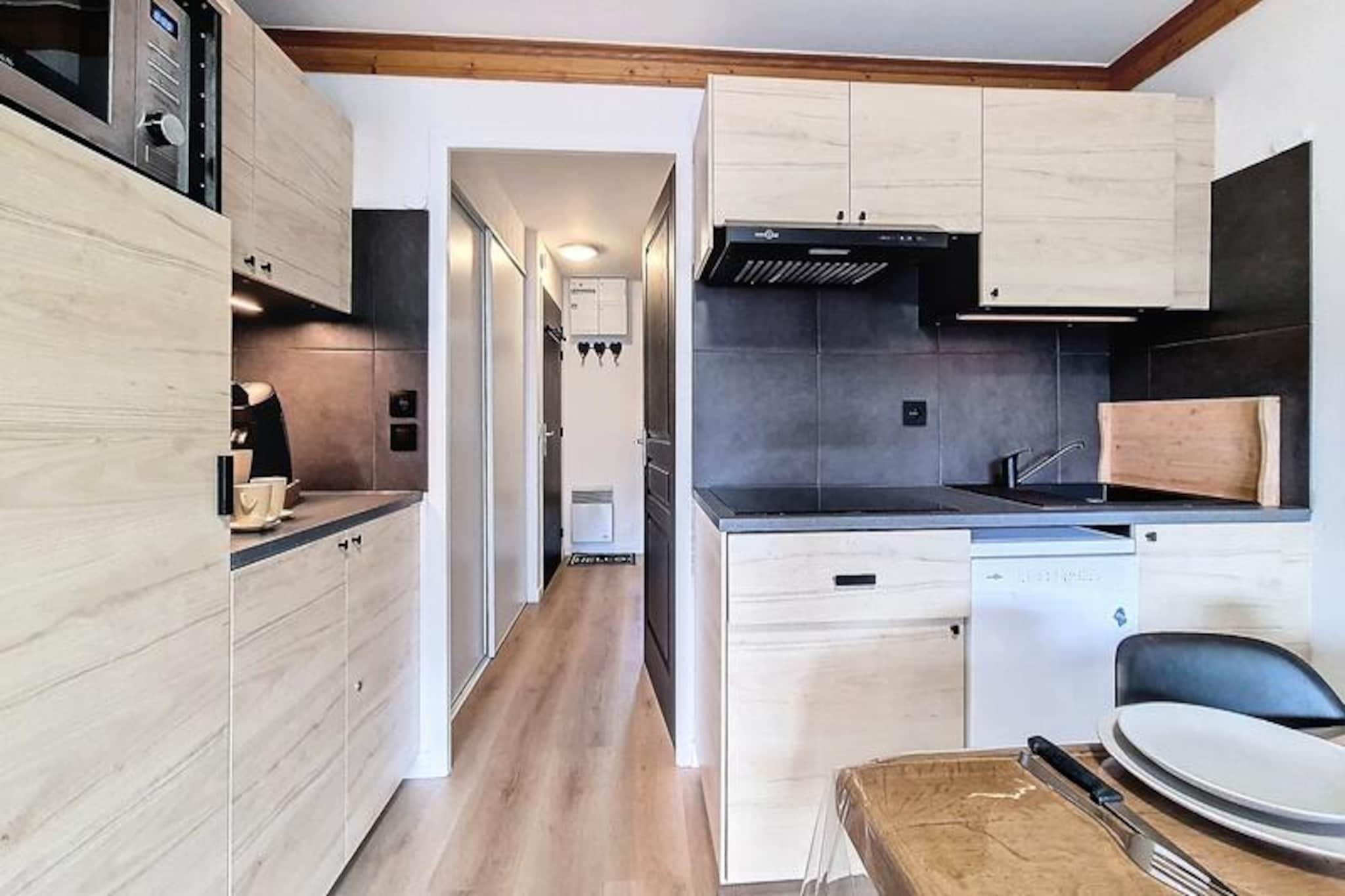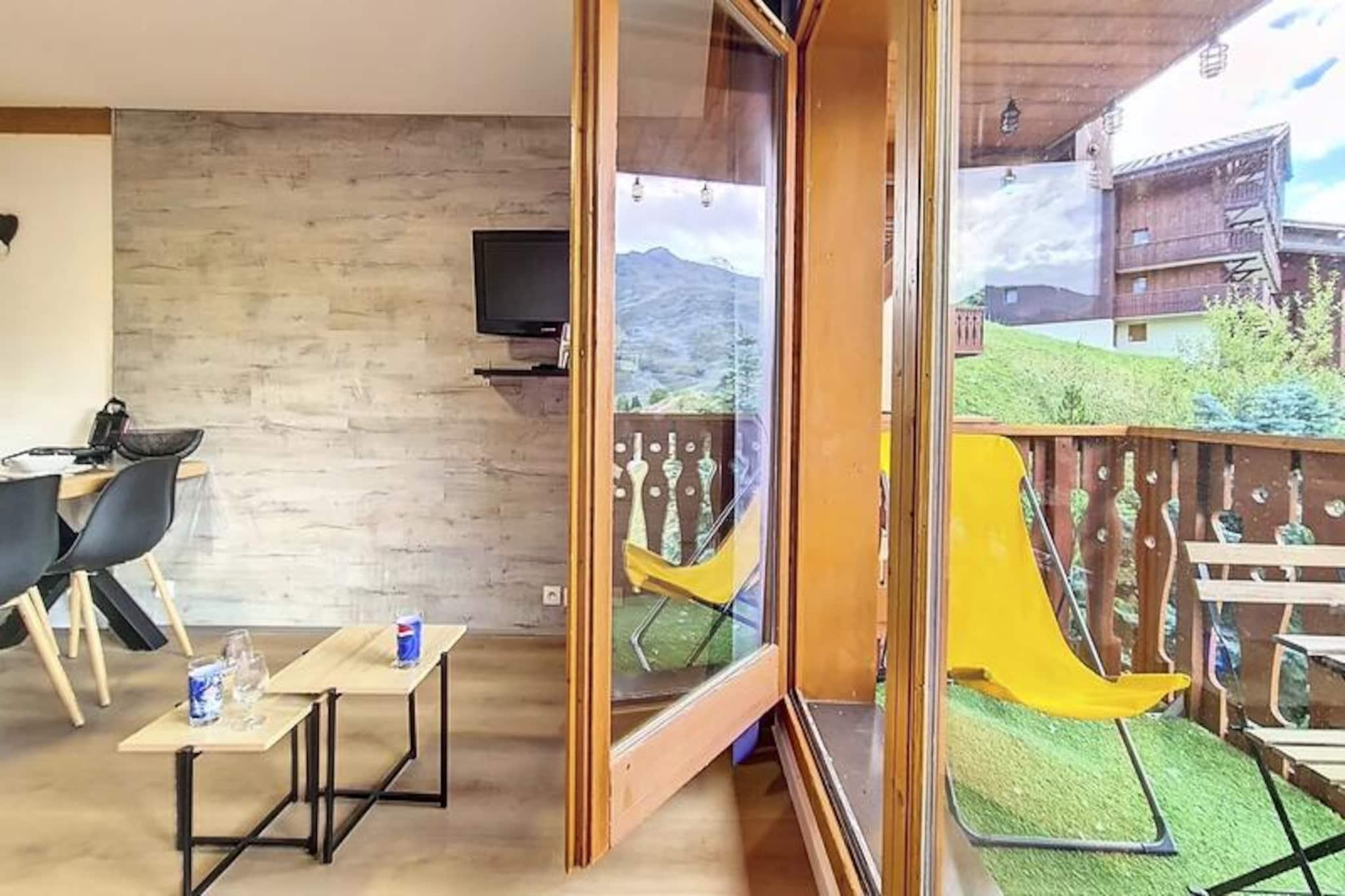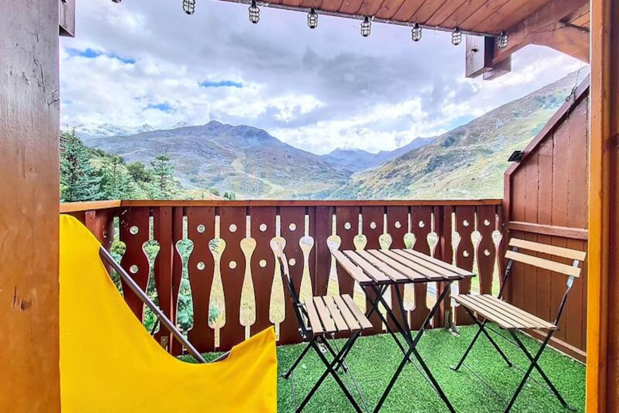 Højt over det travle Bruyères-distrikt inviterer denne charmerende 2-værelses lejlighed dig til at opleve magien i de franske alper med uovertruffen bekvemmelighed og komfort. Beliggende på 8. sal tilbyder den sydvestvendte balkon en betagende udsigt over pisterne, hvor sollyset danser hen over de sneklædte tinder. Uanset om du er her for spændende skieventyr eller rolige bjergture, er denne bolig din port til uforglemmelige øjeblikke i Les Menuires. \n\nIndenfor udstråler lejligheden varme og praktisk anvendelighed. Den har plads til op til fire gæster og har en hyggelig stue med en dobbelt sovesofa og et soveværelse med to sæt køjesenge, perfekt til familier eller små grupper. Køkkenet er fuldt udstyret med moderne apparater, herunder opvaskemaskine, induktionskogeplade og Senseo-kaffemaskine, så du kan tilberede solide måltider efter en dag med udforskning. Parketgulv tilføjer et strejf af elegance, mens faciliteter som Wi-Fi, USB-opladeporte og rulleskodder forbedrer dit ophold med moderne bekvemmelighed. \n\nTræd udenfor og oplev det pulserende Bruyères-distrikt, hvor alt hvad du behøver er lige ved hånden. Fra restauranter og butikker til et vandland, wellnesscenter og biograf summer området af aktivitet. Familier vil elske kælkebanen, skiskolen og legepladsen, mens eventyrere nemt kan komme til pisterne og lifterne kun få skridt væk. Om sommeren forvandles distriktet til et paradis for vandrere og naturentusiaster med stier, der fører til fantastiske alpine udsigter. \n\nUanset om du søger adrenalinpumpende dage på pisterne eller fredelige aftener, hvor du nyder den alpine atmosfære, tilbyder denne lejlighed den perfekte blanding af komfort, beliggenhed og charme. Gør dine bjergdrømme til virkelighed i hjertet af Les Menuires.