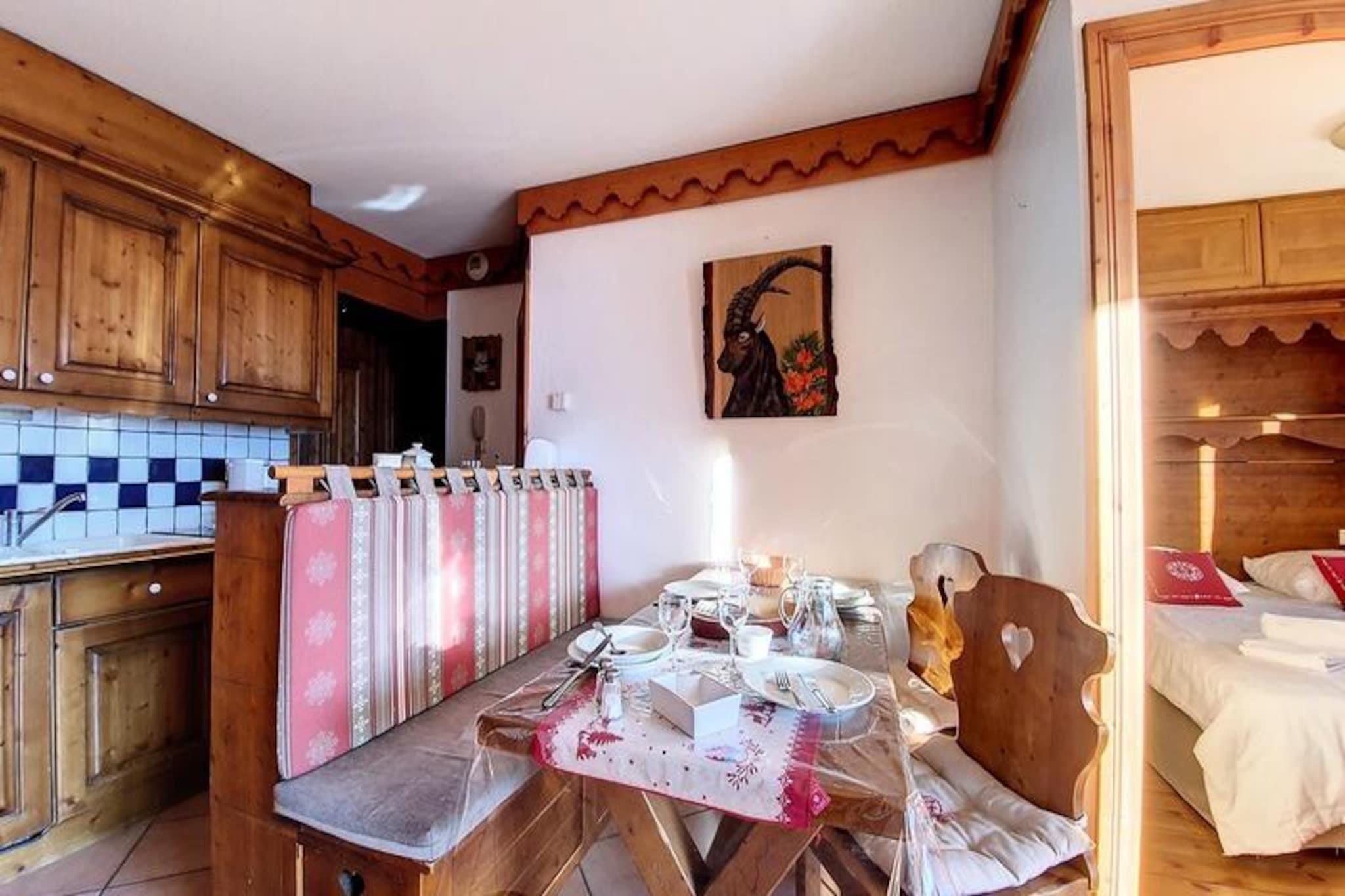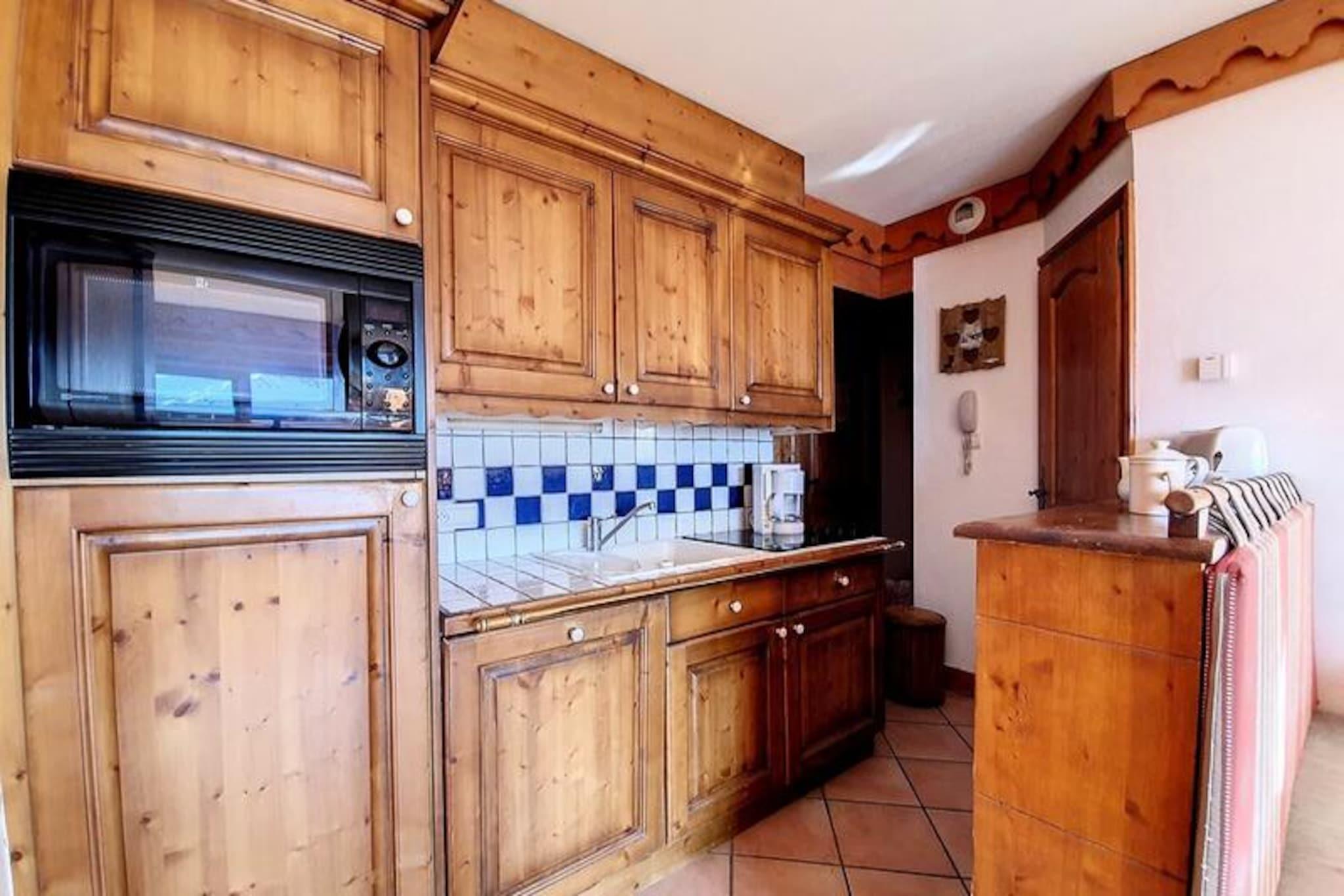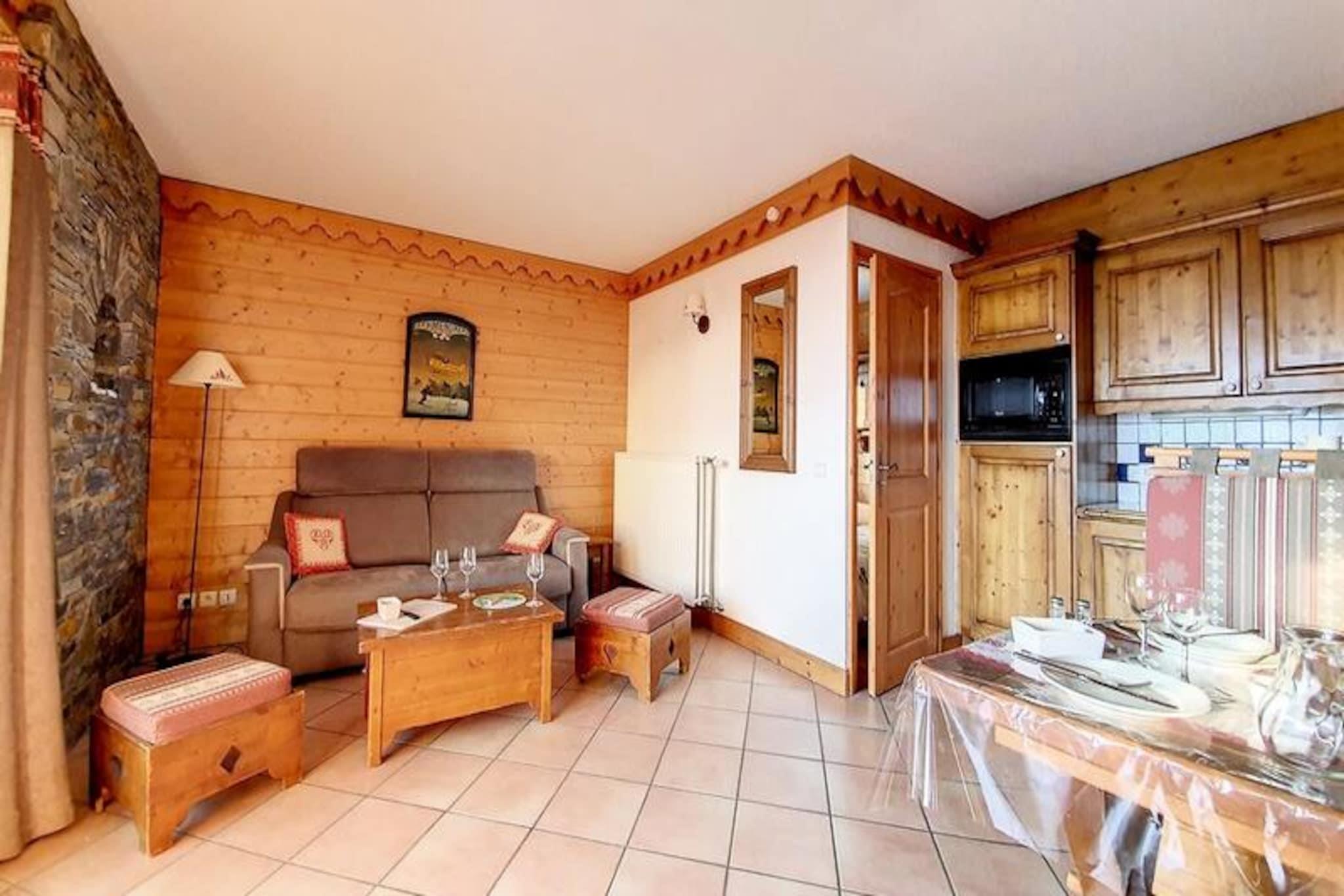 Højt over det travle hjerte af Les Menuires tilbyder denne charmerende lejlighed i den prestigefyldte Les Alpages de Reberty-residens et roligt alpint tilflugtssted med uovertruffen bekvemmelighed. Omgivet af de majestætiske tinder i de franske alper er ejendommen perfekt placeret for både skientusiaster og naturelskere, med skiløjper og essentielle faciliteter kun få skridt væk. Forestil dig at starte din dag med en betagende udsigt over bjergene fra din sydvestvendte balkon, før du tager ud for at udforske de uberørte snedækkede stier eller det pulserende landsbyliv. Lejligheden, der er designet til at rumme op til seks gæster, har to hyggelige soveværelser - et med en dobbeltseng og det andet med to enkeltsenge - samt en komfortabel sovesofa i stuen. Det åbne køkken er fuldt udstyret med moderne apparater, herunder en kombinationsovn, opvaskemaskine og keramiske kogeplader, hvilket gør det nemt at tilberede solide måltider efter en dag med eventyr. Med klinkegulve overalt og parketgulve i soveværelserne kombinerer rummet praktiskhed med en varm og indbydende atmosfære. Gæsterne kan også nyde luksusen af ??et badeværelse, et separat brusebad og et separat toilet for ekstra bekvemmelighed. Om vinteren stråler boligen virkelig med sit eksklusive wellness-område, der tilbyder en opvarmet indendørs pool, saunaer, dampbade og et fitnesscenter – alt sammen kun en kort gåtur fra din dør. Den nærliggende ESF-skiskole, skiudlejningsbutik og minimarked sikrer, at alt hvad du behøver er inden for rækkevidde, mens den pulserende afterski-scene tilføjer et livligt præg til dine aftener. Uanset om du søger spændende dage på pisterne eller rolige øjeblikke, hvor du nyder alpin skønhed, er denne lejlighed den perfekte base for en uforglemmelig bjergferie. Med sin blanding af komfort, stil og uovertruffen beliggenhed er det et sted, hvor dyrebare minder skabes.