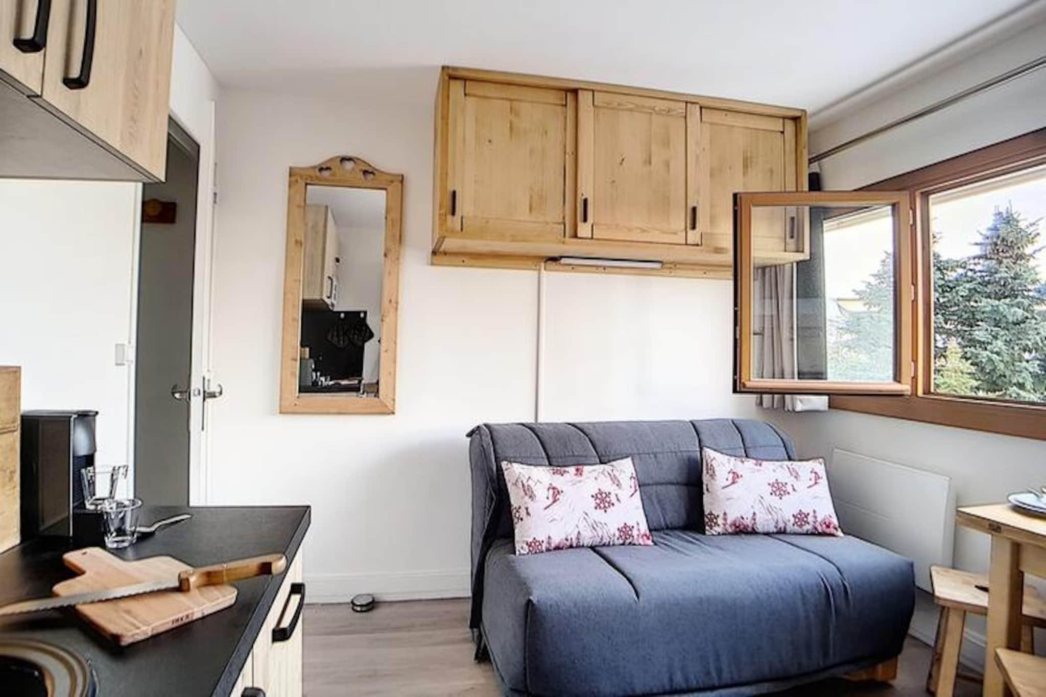 I hjertet af de maleriske franske alper tilbyder denne hyggelige studiolejlighed et intimt tilflugtssted for to, perfekt til en romantisk ferie eller en fredelig bjergtur. Beliggende i Burons-bygningen, kun få skridt fra den livlige La Croisette-indkøbsarkade, vil du blive fordybet i charmen ved dette alpine feriested, med alt hvad du behøver lige ved hånden. Fra det øjeblik du ankommer, sætter det betagende bjerglandskab og den friske alpine luft tonen for et uforglemmeligt ophold. Dette 13 m² store studio blev renoveret i 2020 og er omhyggeligt designet til at maksimere komfort og funktionalitet. Opholdsstuen har en komfortabel sovesofa til to og et fladskærms-tv, hvilket skaber et indbydende rum at slappe af efter en dag med eventyr. Det kompakte, men veludstyrede køkken inkluderer to elektriske kogeplader, køleskab, mikrobølgeovn, brødrister, elkedel og kaffemaskine, hvilket gør det nemt at tilberede måltider eller snacks. Badeværelset er moderne og udstyret med bruser og toilet, mens linoleumsgulvet tilføjer et strejf af praktisk anvendelighed og varme. Lejligheden er røgfri, kæledyrsfri og leveres med dyner og tæpper for at sikre et hyggeligt ophold. Denne bolig, der er bekvemt placeret kun 100 meter fra pisterne, er en drøm for skientusiaster. Børnepasnings- og snehaven ligger ved foden af ??bygningen, hvilket gør den til et fremragende valg for familier. Med et busstoppested kun 50 meter væk og busstationen kun 2 minutters kørsel væk, er det nemt at udforske området. Skibokse i kælderen øger bekvemmeligheden, mens den betalte Wi-Fi sikrer, at du forbliver forbundet. Uanset om du er her for at grave dig gennem frisk puddersne, udforske den pulserende feriestedsatmosfære eller blot nyde den fredfyldte alpine skønhed, tilbyder denne charmerende studiolejlighed den perfekte base for dine bjergeventyr. Book nu og skab minder, der vil vare hele livet.