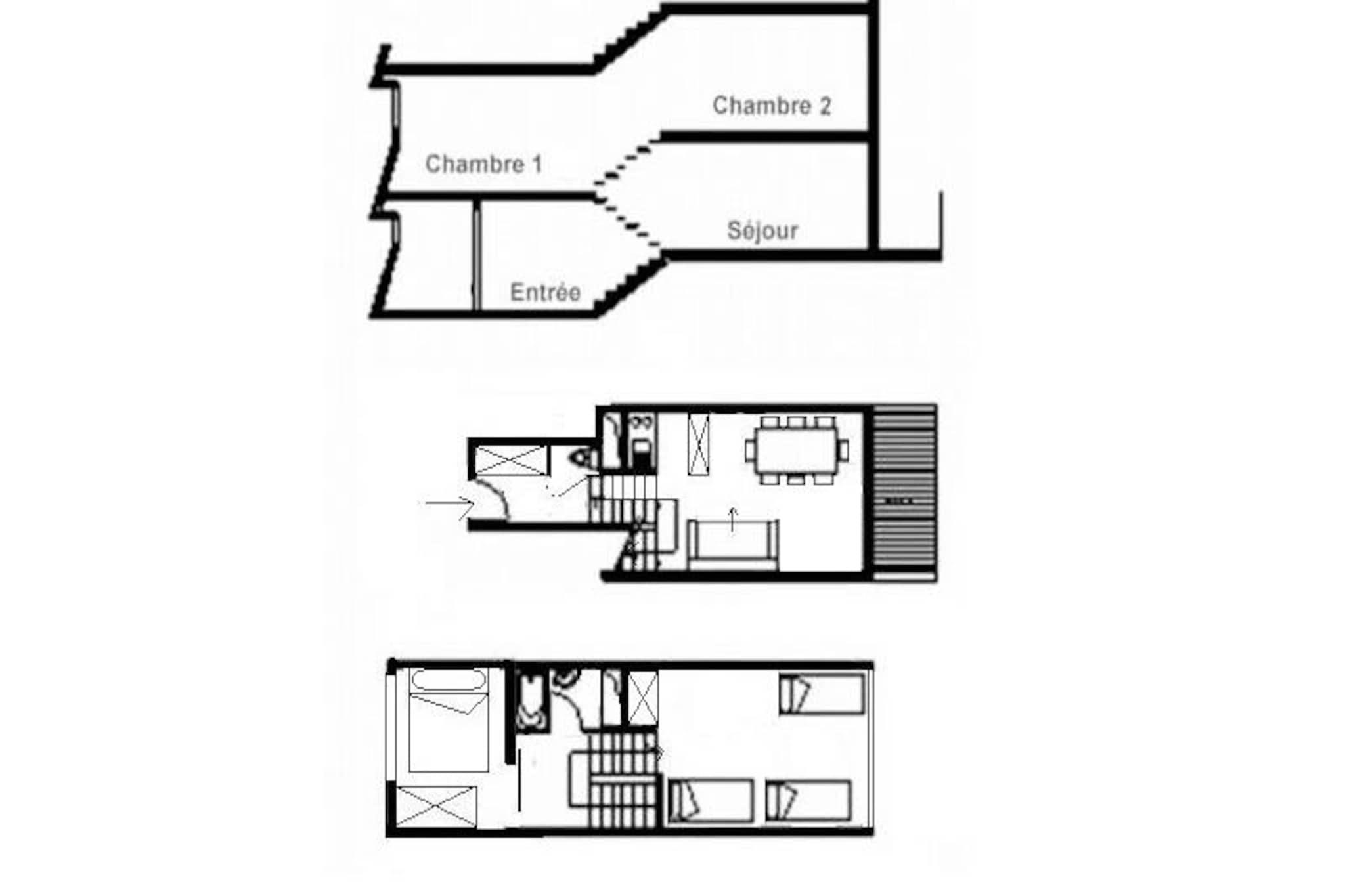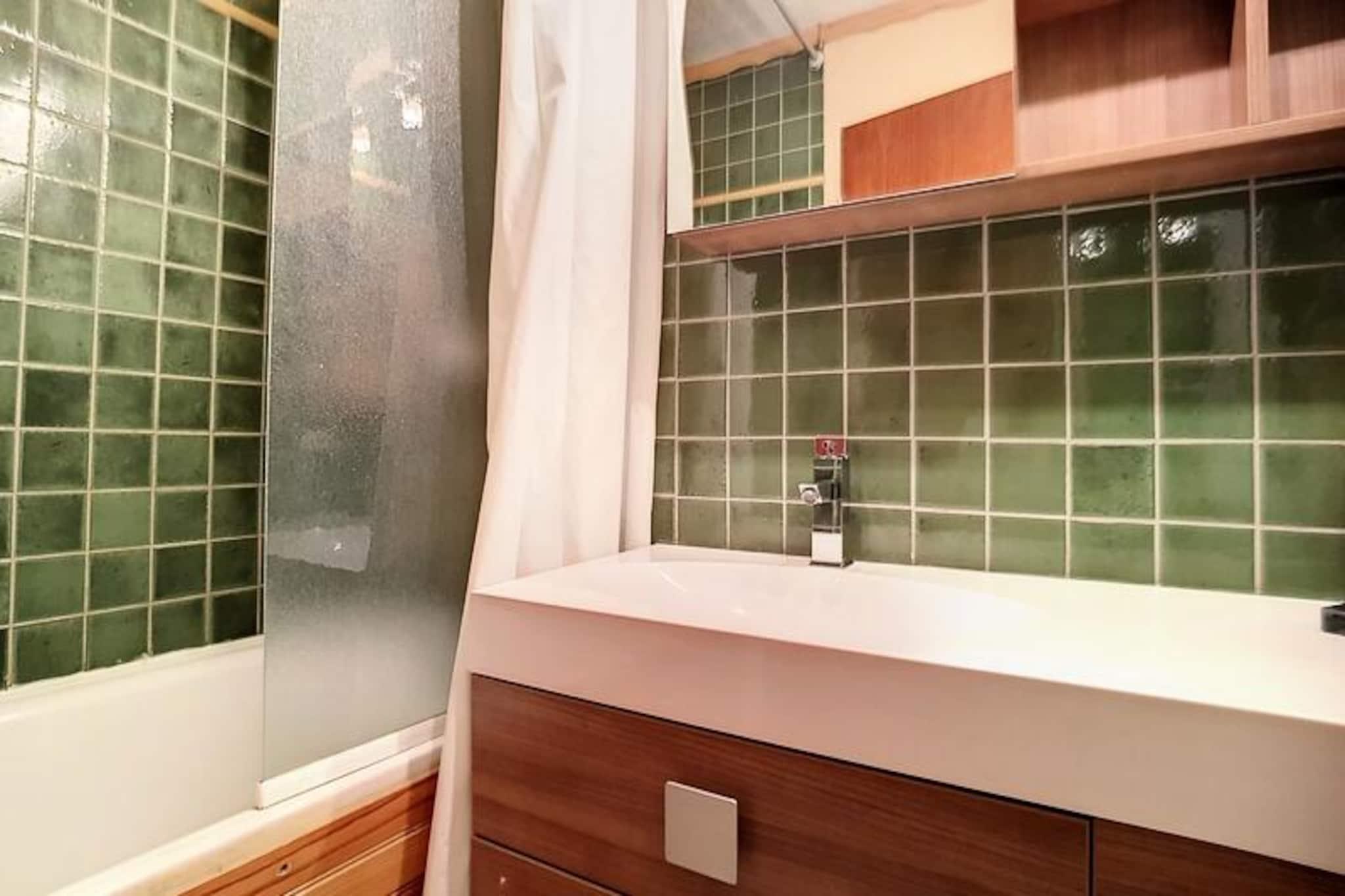 Højt over det travle Les Menuires-resort tilbyder Brelin-bygningen et unikt udsigtspunkt med en betagende udsigt over det omkringliggende alpine landskab. Denne beliggenhed, der er tilgængelig via offentlige elevatorer, der kører døgnet rundt og forbinder til det livlige La Croisette-distrikt nedenfor, kombinerer bekvemmelighed med ro, hvilket gør den til et ideelt tilflugtssted for familier og grupper, der søger en mindeværdig bjergferie. Fra lejlighedens sydvendte balkon på 9. sal inviterer den dig til at nyde solen og beundre de snedækkede tinder, der strækker sig ud i horisonten. \n\nDenne charmerende lejlighed på 60 m² har komfortabel plads til op til otte gæster fordelt på to soveværelser og en hyggelig stue. Den gennemtænkte planløsning inkluderer en dobbeltseng, køjesenge og ekstra sovemuligheder i opholdsstuen, hvilket sikrer fleksibilitet for familier eller venner, der rejser sammen. Det veludstyrede køkken har moderne apparater såsom keramisk kogeplade, kombineret mikrobølgeovn, opvaskemaskine og mere, hvilket gør det nemt at tilberede solide måltider efter en dag på pisterne. Slap af i stuen med fjernsyn, dvd-afspiller og hjemmebiografsystem, eller slap af på badeværelset med et varmt bad. \n\nSelve Brelin-bygningen huser vigtige faciliteter, herunder butikker, skiliftbilletkontorer og skibokse, alt sammen i en praktisk shoppingarkade. Gratis parkering ved Danchet-liften sikrer problemfri ankomst og afgang, mens betalt Wi-Fi-adgang holder dig forbundet under hele dit ophold. Med sin nærhed til skilifter og det pulserende La Croisette-distrikt er denne lejlighed perfekt placeret til både eventyr og afslapning. \n\nUanset om du er her for de spændende pister, den hyggelige alpine atmosfære eller blot for at sole dig i de franske alpers skønhed, tilbyder denne lejlighed alt, hvad du behøver for en uforglemmelig ferie. Lad charmen ved Les Menuires og komforten i dette indbydende rum skabe varige minder for dig og dine kære.
