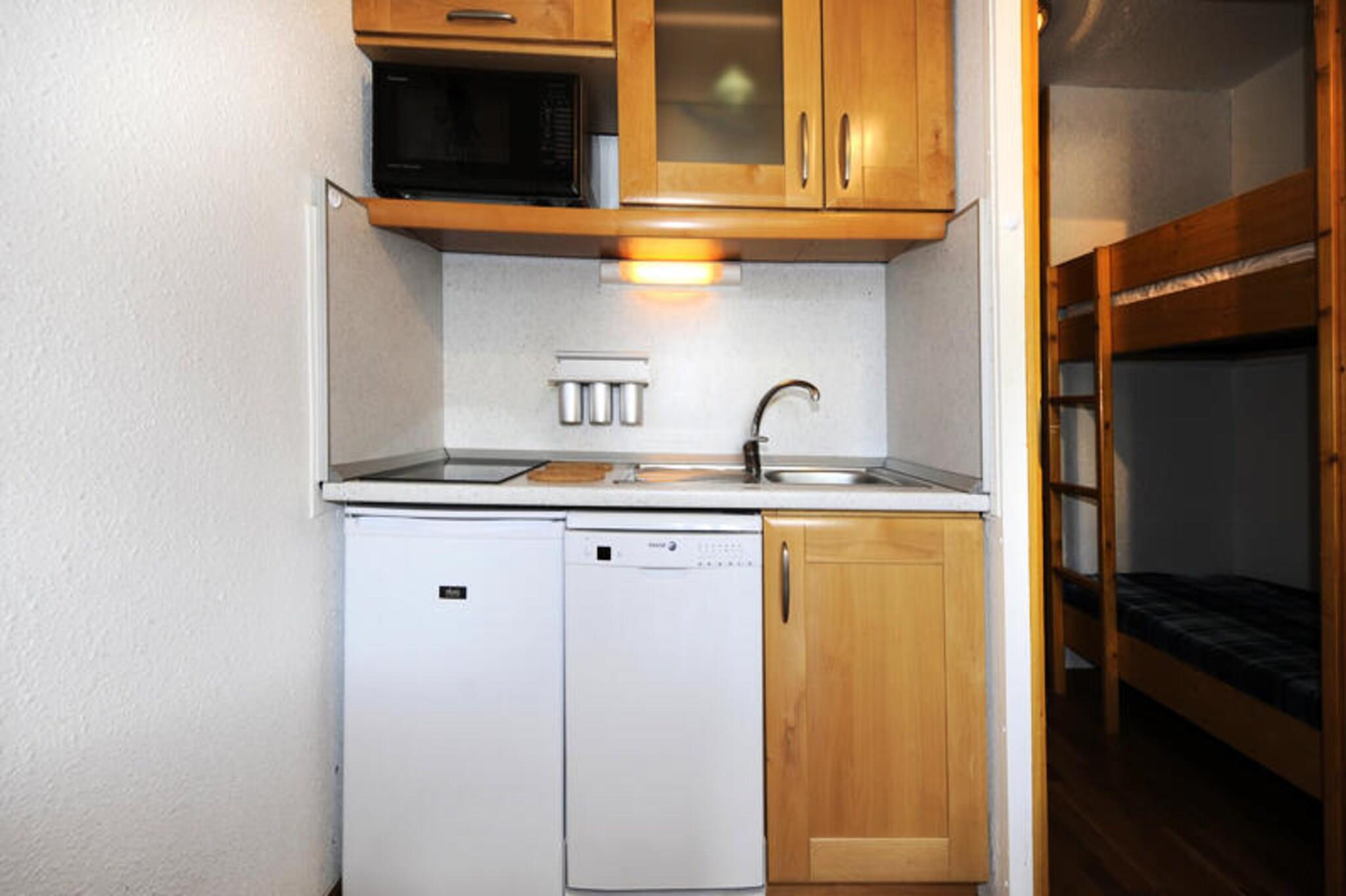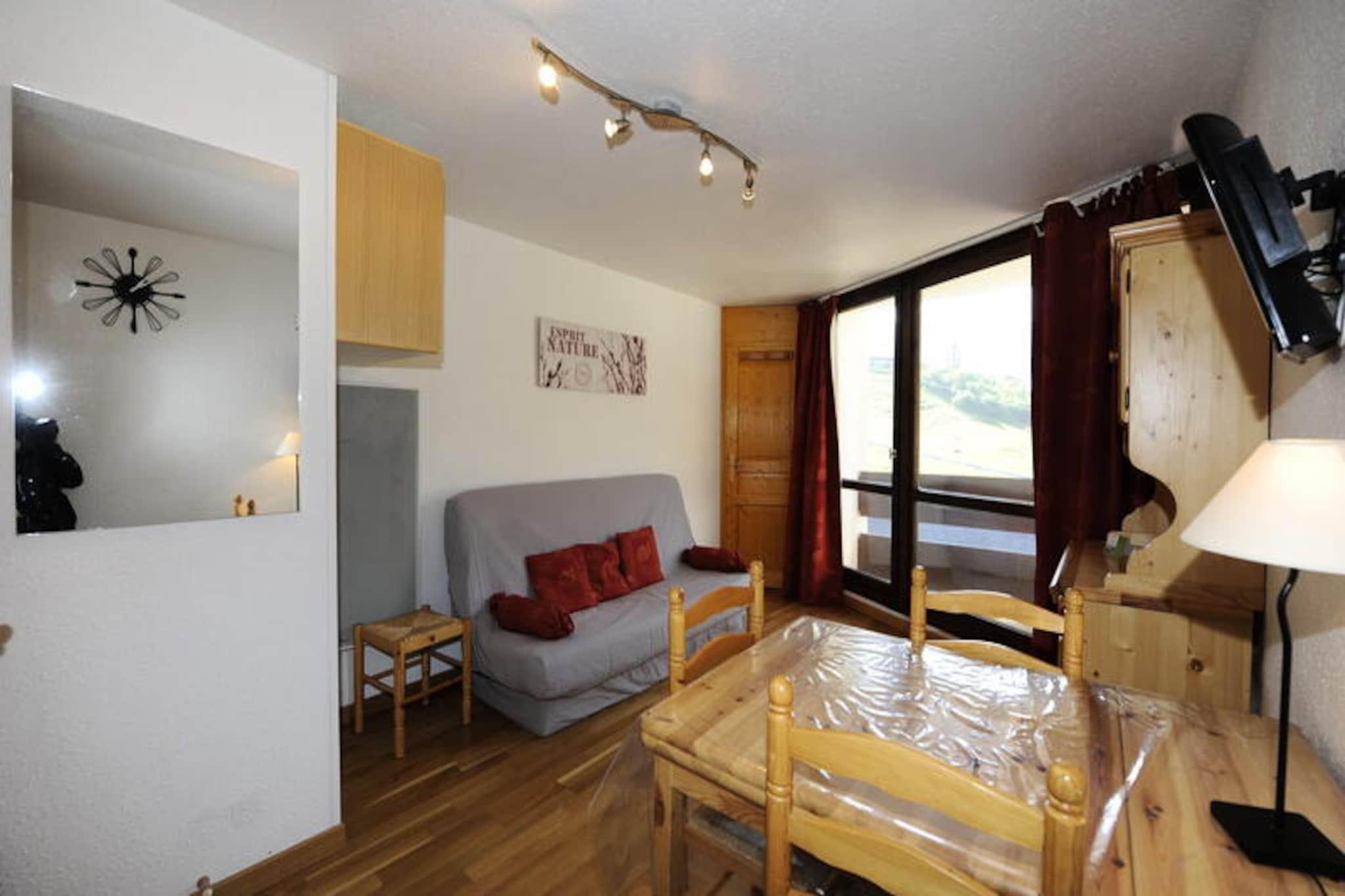 Højt over det pulserende Preyerand-distrikt inviterer denne charmerende studiolejlighed dig til at opleve magien i de franske alper med direkte adgang til pisterne. Fra din sydvendte balkon kan du nyde den friske bjergluft og den fantastiske udsigt, mens du planlægger din dag med alpine eventyr. Grande Masse-residensen tilbyder problemfri forbindelse til det centrale La Croisette-distrikt via den gratis TéléPreyerand-svævebane, der kører dagligt fra morgen til sen aften, hvilket sikrer bekvemmelighed og tilgængelighed under hele dit ophold. Uanset om du er her for at stå på ski, vandre eller blot slappe af, er dette hyggelige tilflugtssted din port til Les Menuires' skønhed. \n\nDet 20 m² store studio er designet til op til tre gæster og har en praktisk indretning med en sovesofa til to personer i opholdsstuen og et separat bjerghjørne med to enkeltsenge. Det veludstyrede køkken inkluderer moderne bekvemmeligheder såsom mikrobølgeovn/grillovn, opvaskemaskine, køleskab og kaffemaskine, hvilket gør det nemt at tilberede solide måltider efter en dag på pisterne. Badeværelset tilbyder et badekar og håndklædetørrer for ekstra komfort, mens opholdsstuen har et fjernsyn til afslappede aftener indendørs. Bemærk venligst, at den øverste køjeseng ikke er egnet til børn under seks år.\n\nTræd udenfor og find dig selv ved foden af ??pisterne, klar til at udforske det store skisportsområde Les Menuires. Det nærliggende La Croisette-distrikt tilbyder et udvalg af butikker, restauranter og afterski-aktiviteter, hvilket sikrer, at alt hvad du behøver er inden for rækkevidde. Om sommeren forvandles regionen til et paradis for vandrere og naturentusiaster med betagende stier og panoramaudsigt.\n\nUanset om du søger spændende vintersport eller rolige sommerferier, lover dette studie på Grande Masse en uforglemmelig alpin oplevelse, der blander komfort, bekvemmelighed og den tidløse charme i de franske bjerge.