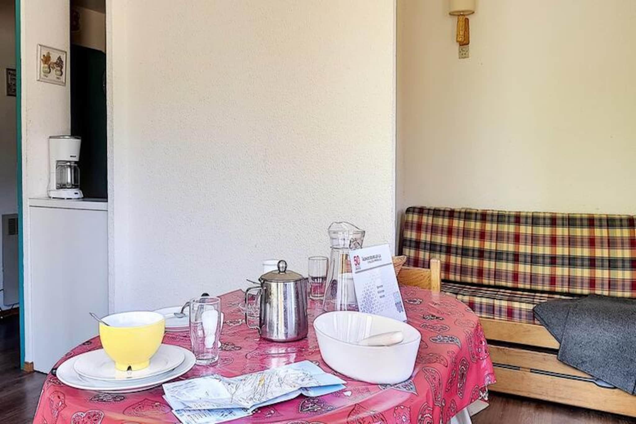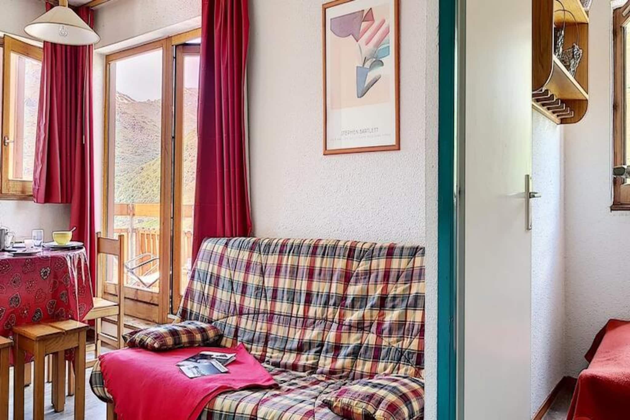 Højt over det travle Bruyères-distrikt tilbyder denne charmerende toværelses lejlighed et hyggeligt alpint tilflugtssted med uovertruffen ski-in/ski-out adgang. Forestil dig at træde ud af din dør og glide direkte ud på de uberørte skråninger i Les Menuires, omgivet af de franske alpers betagende skønhed. Med sin sydvestvendte hjørnebalkon inviterer dette tilflugtssted på femte sal dig til at sole dig i den gyldne eftermiddagssol, mens du nyder panoramaudsigten over bjergene. Uanset om du planlægger en aktiv dag på pisterne eller en rolig aften under stjernerne, danner denne lejlighed den perfekte ramme for din alpine flugt. \n\nIndenfor er den 32 m² store lejlighed omhyggeligt designet til at rumme op til fem gæster. Stuen har en komfortabel dobbeltsovesofa og en enkelt sovesofa til børn, perfekt til familier eller små grupper. Det separate soveværelse kan prale af en hyggelig dobbeltseng, der sikrer afslappende nætter efter eventyrlige dage. Det fuldt udstyrede køkken med keramisk kogeplade, kombineret mikrobølgeovn/ovn, køleskab og opvaskemaskine gør det nemt at tilberede solide måltider. Moderne bekvemmeligheder som et fladskærms-tv og laminatgulv bidrager til lejlighedens varme og indbydende atmosfære. \n\nBruyères-distriktet er et pulserende aktivitetscenter, der tilbyder alt, hvad du behøver, inden for gåafstand. Fra restauranter og butikker til en biograf, skiskole og endda et vandland og wellnesscenter er der noget for enhver smag. Familier vil sætte pris på den nærliggende kælkebane og legeplads, mens afterskiing-entusiaster kan udforske det livlige lokale miljø. \n\nUanset om du er her for at kæmpe dig gennem frisk puddersne, udforske den charmerende alpelandsby eller blot slappe af og lade op, tilbyder denne lejlighed komfort, bekvemmelighed og uforglemmelige bjergminder. Din perfekte alpine ferie venter i hjertet af Les Menuires.