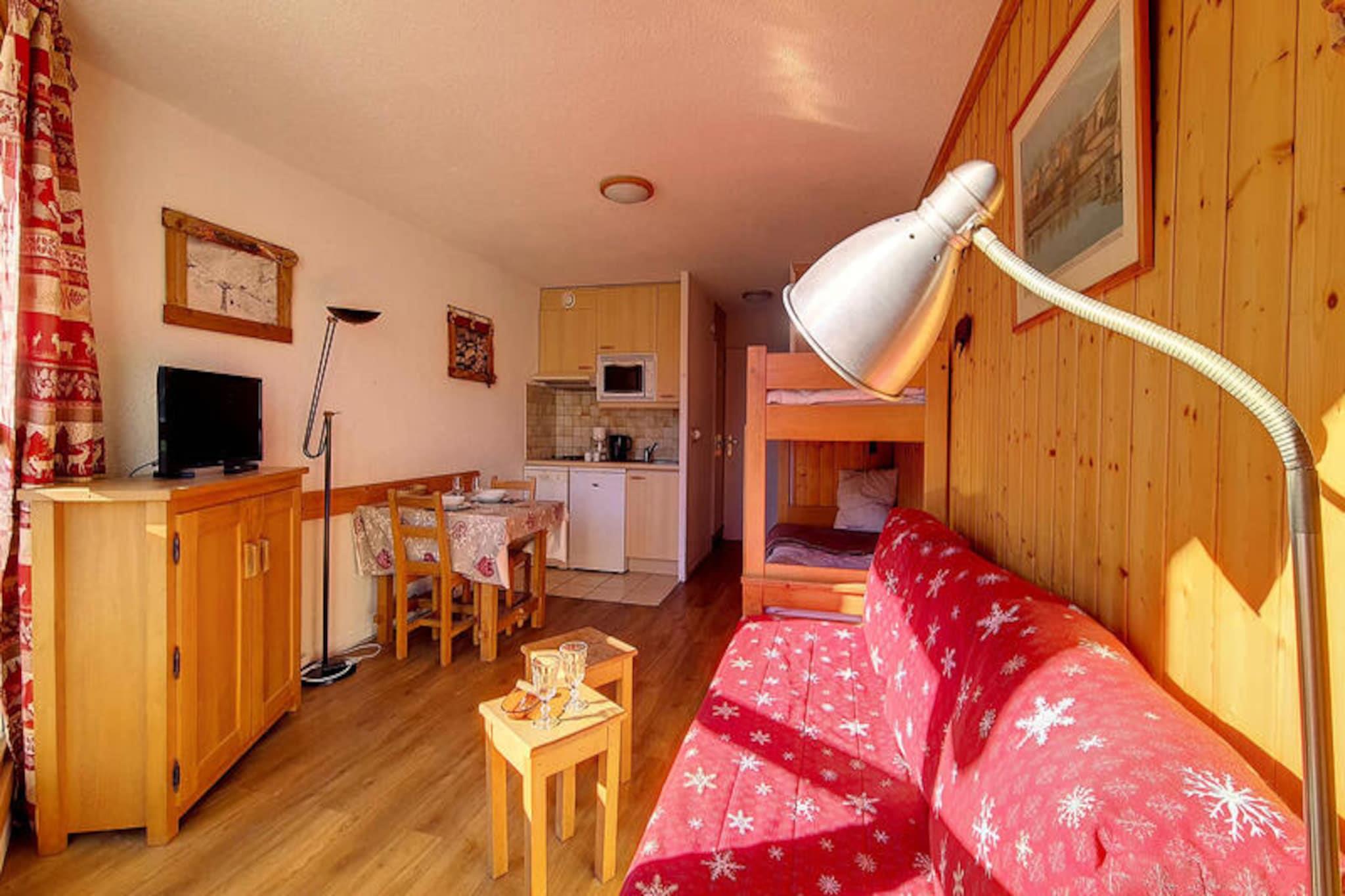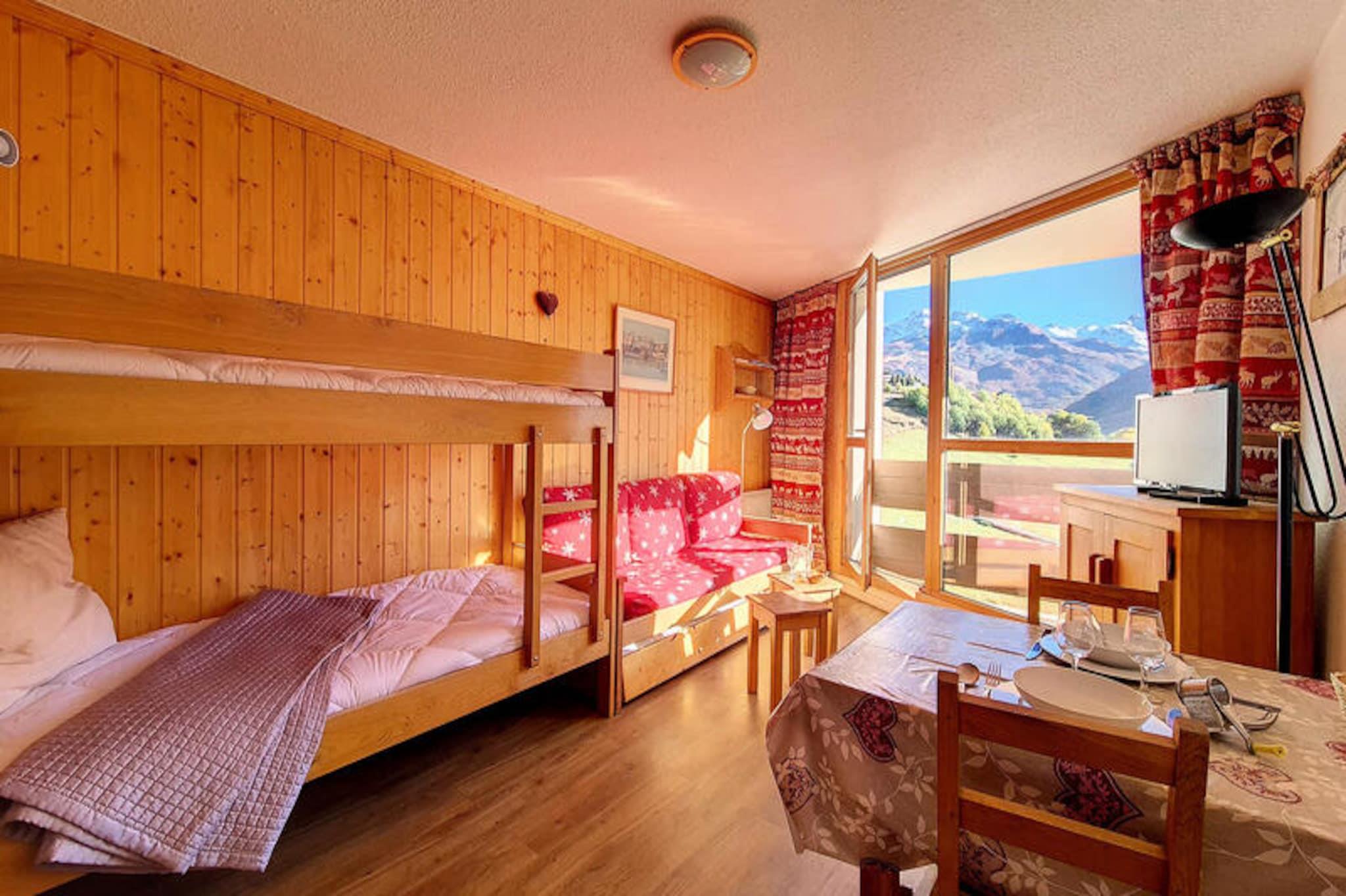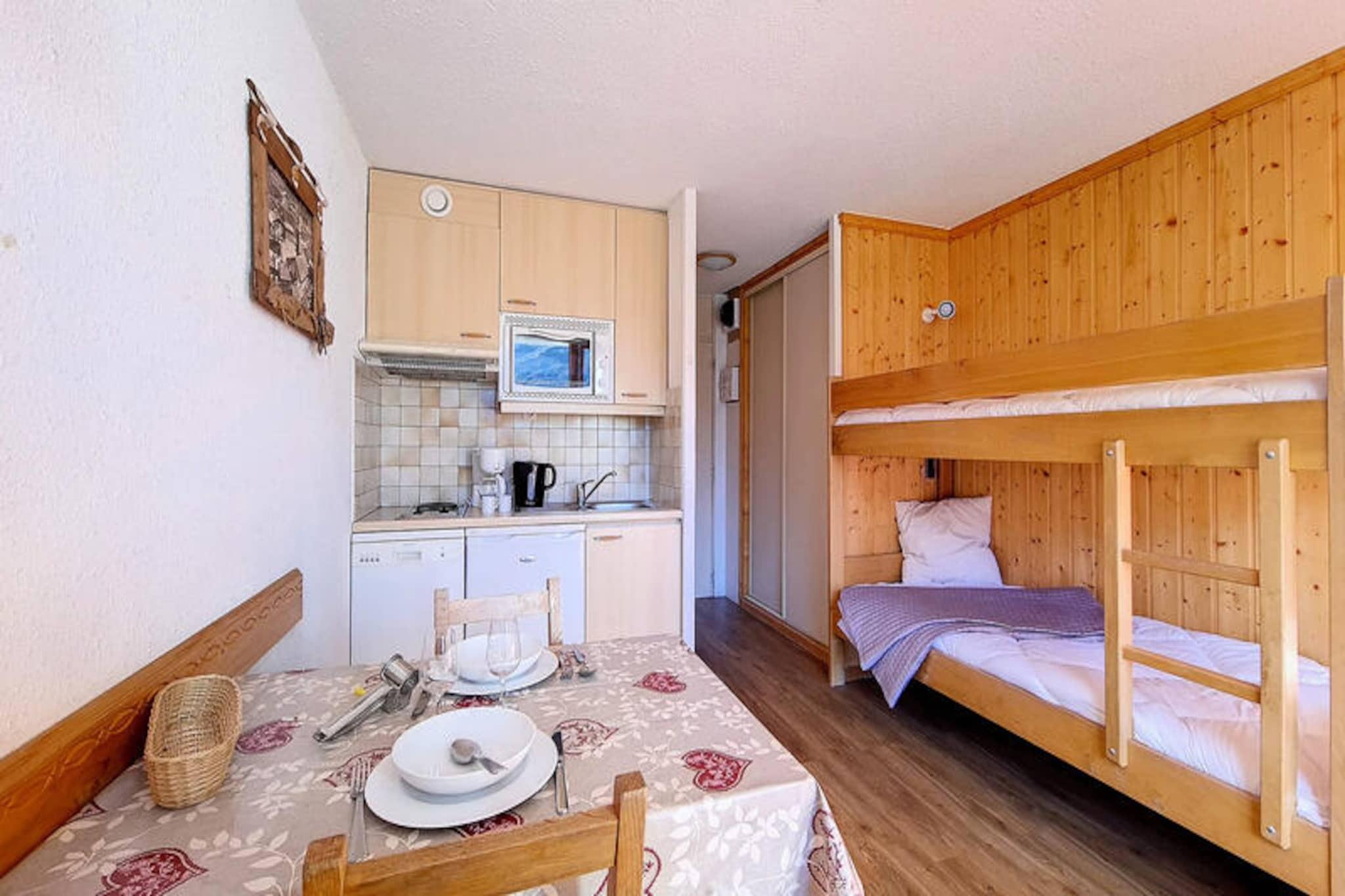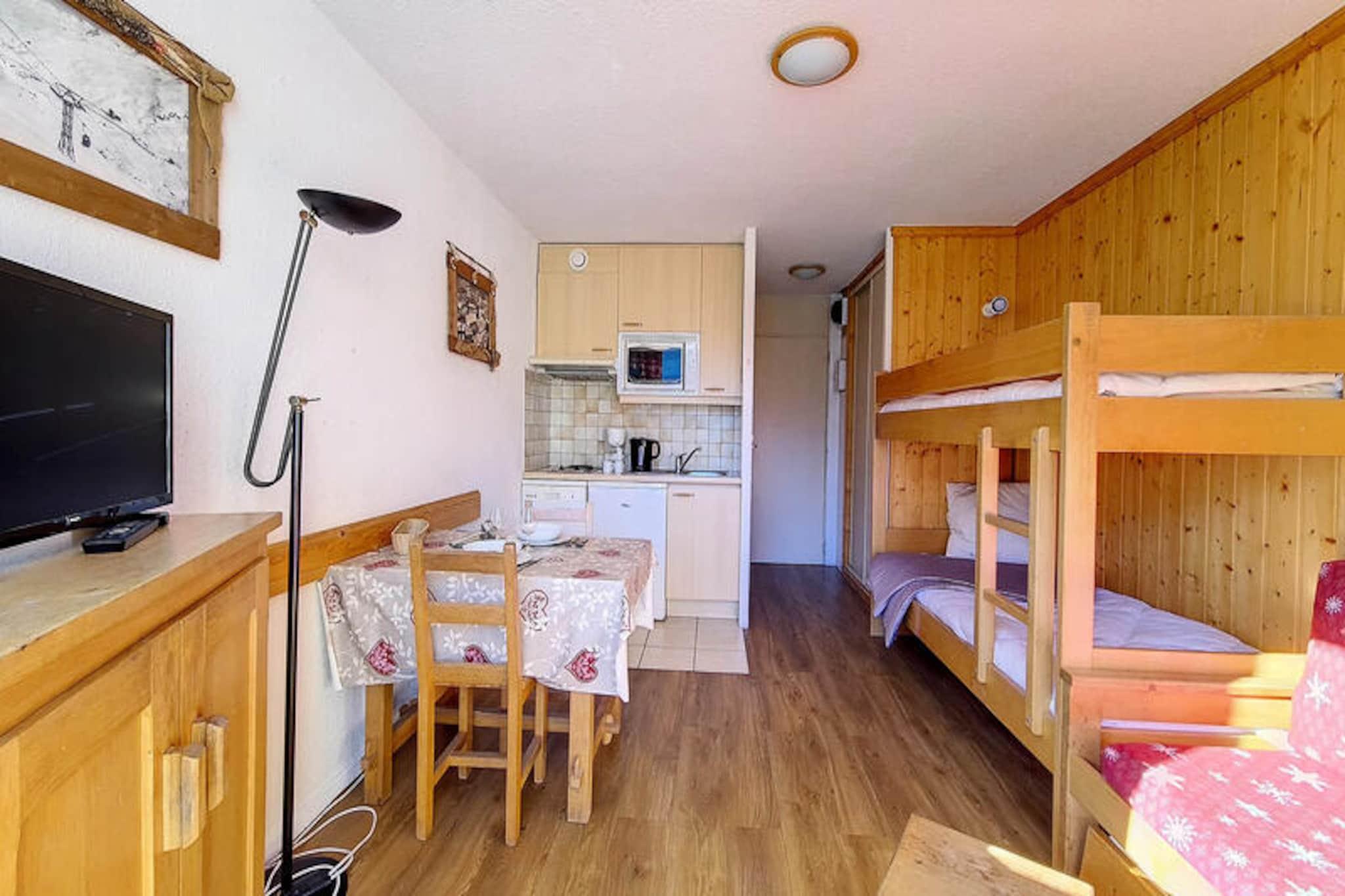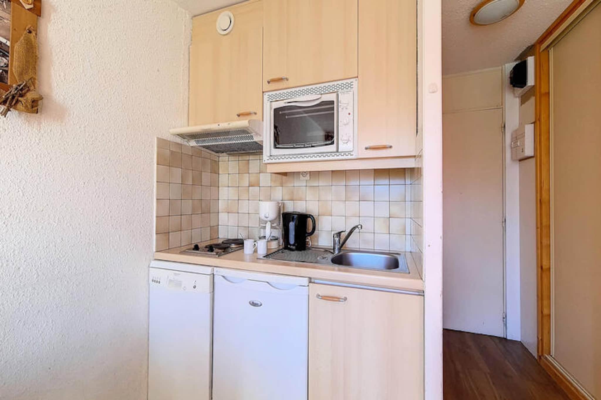 Højt over det naturskønne Preyerand-distrikt tilbyder denne charmerende studiolejlighed et hyggeligt tilflugtssted for rejsende, der søger den perfekte blanding af bekvemmelighed og alpin charme. Med direkte adgang til pisterne og det centrale La Croisette-distrikt via den gratis Preyerand-svævebane begynder dine bjergeventyr kun få skridt fra din dør. Fra den sydvendte balkon på 7. sal kan du nyde den solrige udsigt over de omkringliggende tinder og mærke den forfriskende energi fra de franske alper. Uanset om du er her for at stå på ski eller vandre om sommeren, placerer denne bolig dig i hjertet af det hele. \n\nDet 20 m² store studio er designet til at rumme op til tre gæster og tilbyder et smart layout, der maksimerer komfort og funktionalitet. Stuen har en enkeltseng, en udtræksseng og en enkelt udtræksseng, hvilket sikrer en afslappende nat for alle. Det udstyrede køkken inkluderer moderne faciliteter såsom køleskab, ovn, opvaskemaskine, elkedel, kaffemaskine og brødrister - perfekt til at tilberede måltider efter en dag med udendørs udforskning. Badeværelset med badekar og toilet bidrager til bekvemmeligheden, mens lejlighedens ikke-rygerpolitik og kæledyrsvenlige mulighed imødekommer forskellige behov. \n\nBeliggende i det pulserende Preyerand-distrikt har du nem adgang til lokale faciliteter og den livlige atmosfære på La Croisette, kun en kort tur med svævebanen væk. Uanset om du udforsker pisterne om vinteren eller opdager de alpine stier om sommeren, tilbyder denne bolig den ideelle base for dine eventyr. Betalt Wi-Fi sikrer internetforbindelse, mens de rolige omgivelser giver dig mulighed for fuldt ud at fordybe dig i bjergenes skønhed. \n\nVælg dette dejlige studie til en uforglemmelig alpin flugt, hvor hvert øjeblik er indrammet af de majestætiske landskaber i de franske alper, og løftet om nye opdagelser venter.