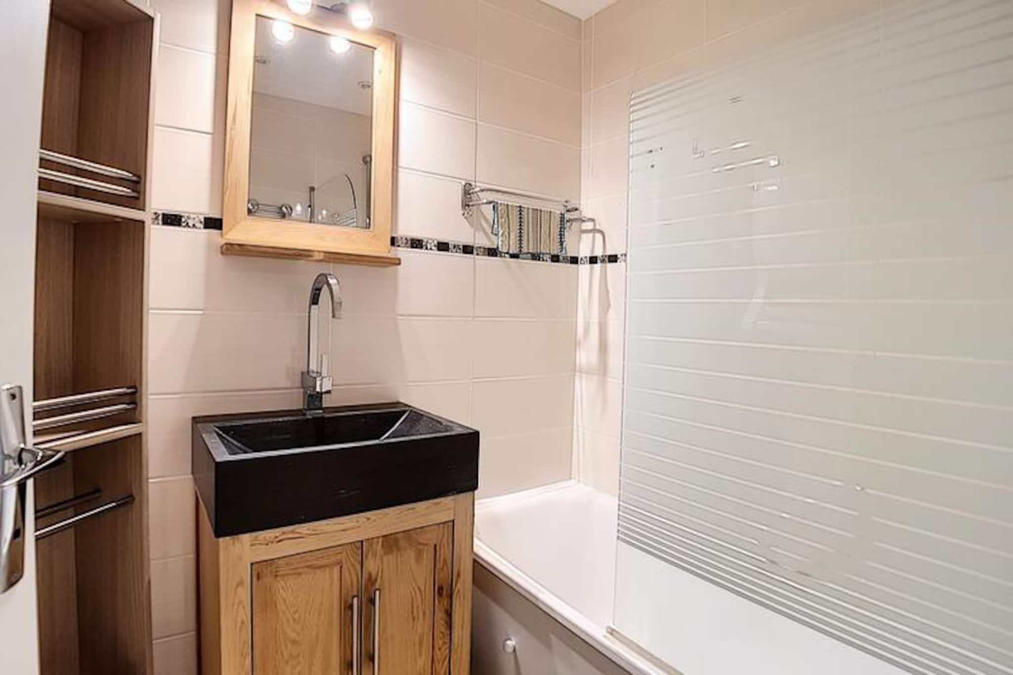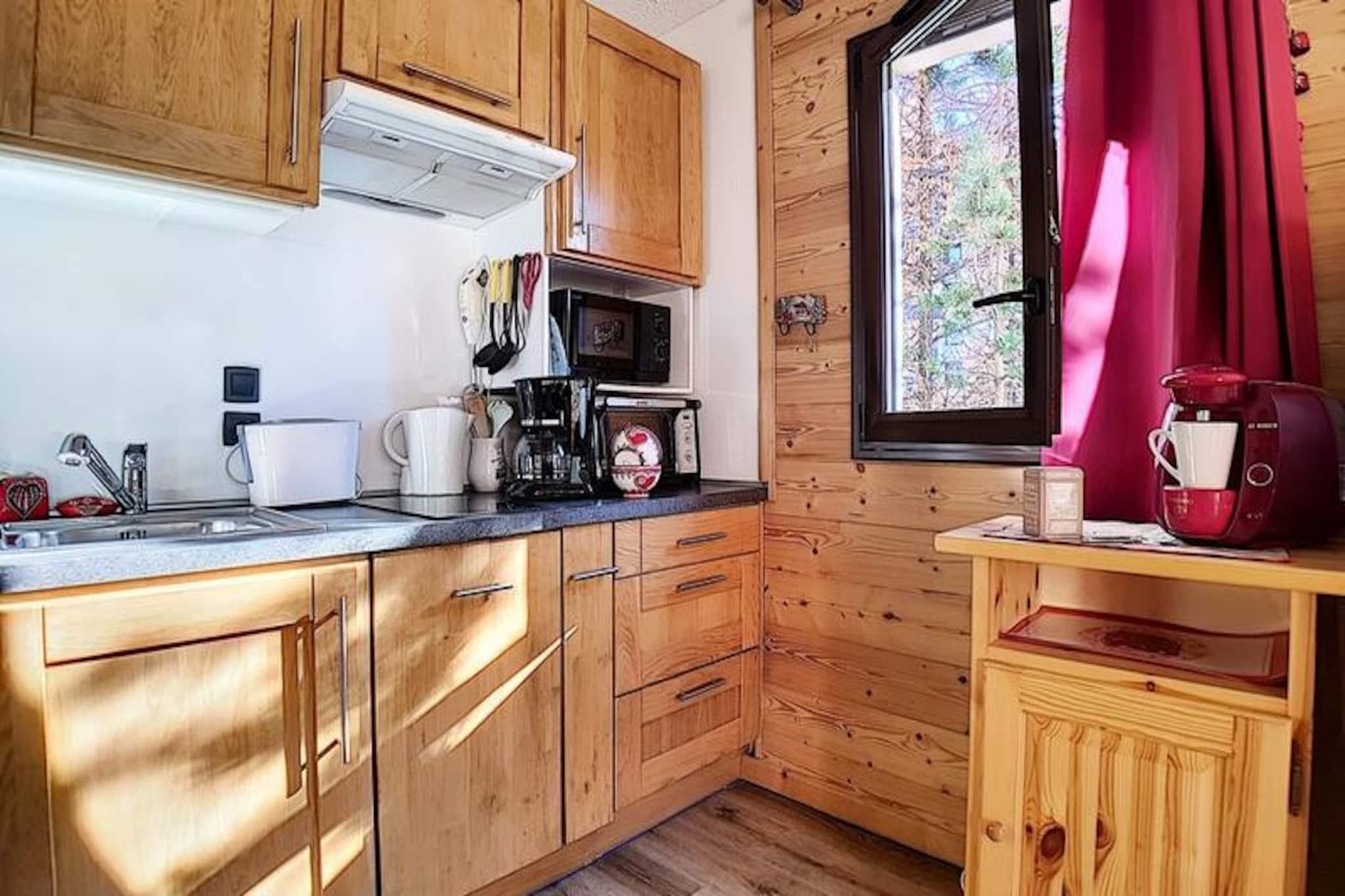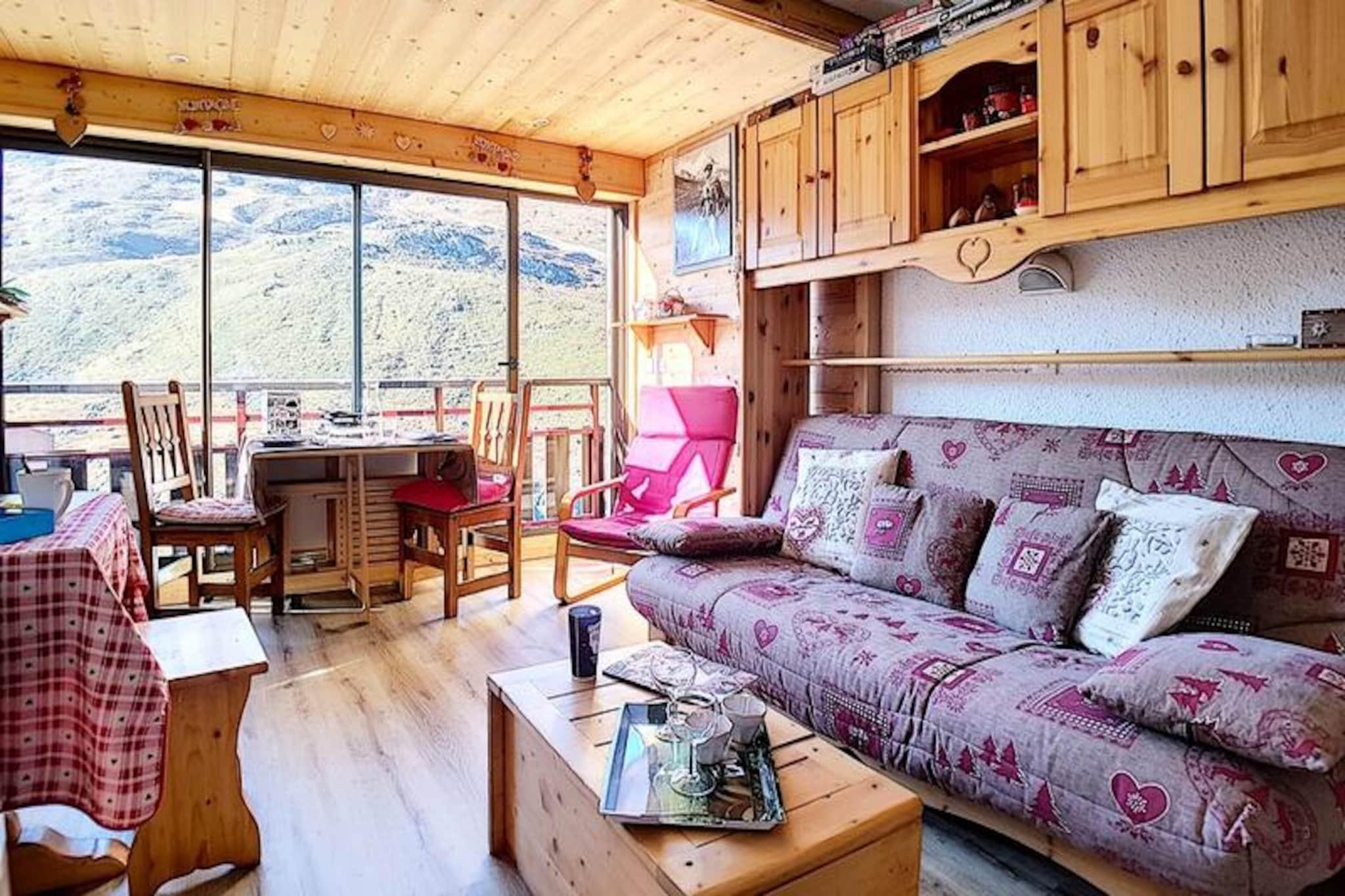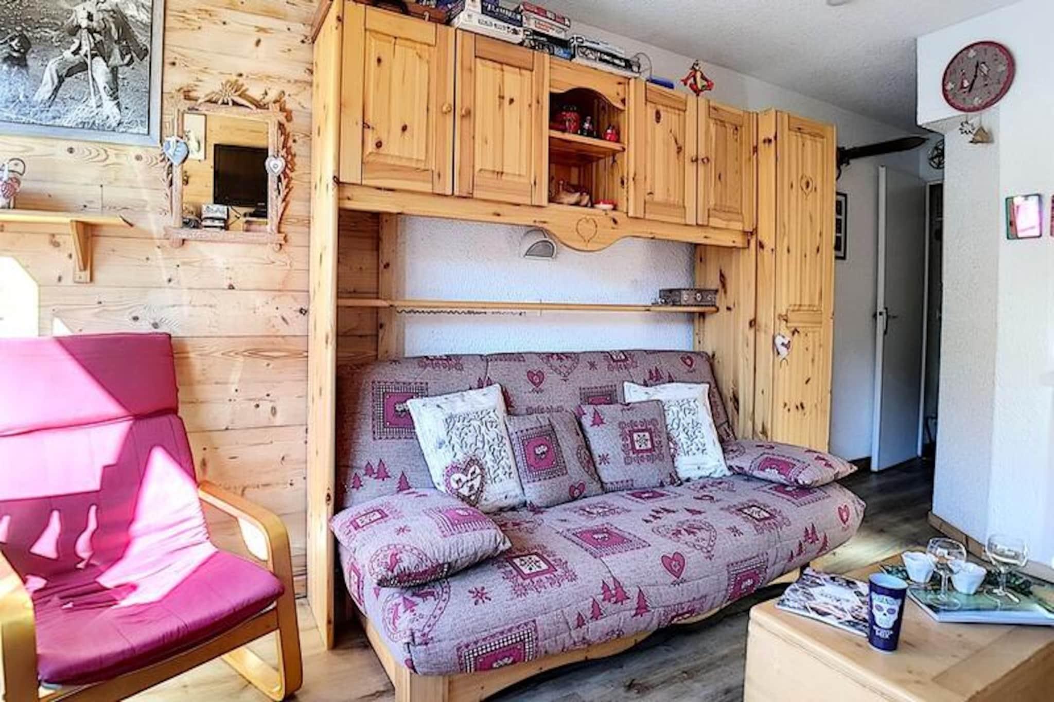 I hjertet af det charmerende Place des Bouquetins tilbyder dette hyggelige alpine tilflugtssted den perfekte ski-in/ski-out-oplevelse for dem, der søger en problemfri forbindelse til pisterne. Forestil dig at træde ud af din dør og glide direkte ud på de uberørte pister i Les Menuires, omgivet af de franske alpers betagende skønhed. Med sin varme atmosfære og gennemtænkte design er denne lejlighed et paradis for par eller små familier, der ønsker at fordybe sig i bjergenes magi. \n\nDenne nyrenoverede 2-værelses lejlighed er på 30 m² og er designet til komfortabelt at rumme op til fire gæster. Beliggende på 4. sal kan den prale af en vestvendt udsigt, så du kan nyde de gyldne nuancer af den nedgående sol. Stuen har en dobbelt sovesofa, et tv, en dvd-afspiller og en radio/cd-afspiller, hvilket skaber et hyggeligt rum at slappe af efter en dag med eventyr. Det lille soveværelse, adskilt af en dør, tilbyder en dobbeltseng til afslappende nætter. Køkkenet er fuldt udstyret med moderne apparater, herunder keramisk kogeplade, opvaskemaskine, elektrisk ovn, mikrobølgeovn og specialprodukter som crêpe-maskine, raclette-grill og fondue-sæt - perfekt til at forkæle dig selv med lokale kulinariske traditioner. Et badeværelse med badekar og vægmonteret hårtørrer samt et separat toilet bidrager til lejlighedens bekvemmelighed. \n\nSelve boligen tilbyder gratis Wi-Fi (afhængigt af netværksdækning) og har en elevator for nem adgang. Kun få skridt væk forbinder en gangbro dig med det livlige Bruyères-distrikt, hvor du finder et udvalg af restauranter, butikker, et vandland, wellnesscenter, biograf, skiskole og endda en kælkebane. For dem, der søger mere udforskning, ligger Croisette-distriktet kun 15 minutters gang væk via en naturskøn gåsti. \n\nUanset om du er her for spændingen ved skiløb eller roen ved alpint liv, tilbyder denne lejlighed en ideel base for at skabe uforglemmelige minder i hjertet af Les Trois Vallées.