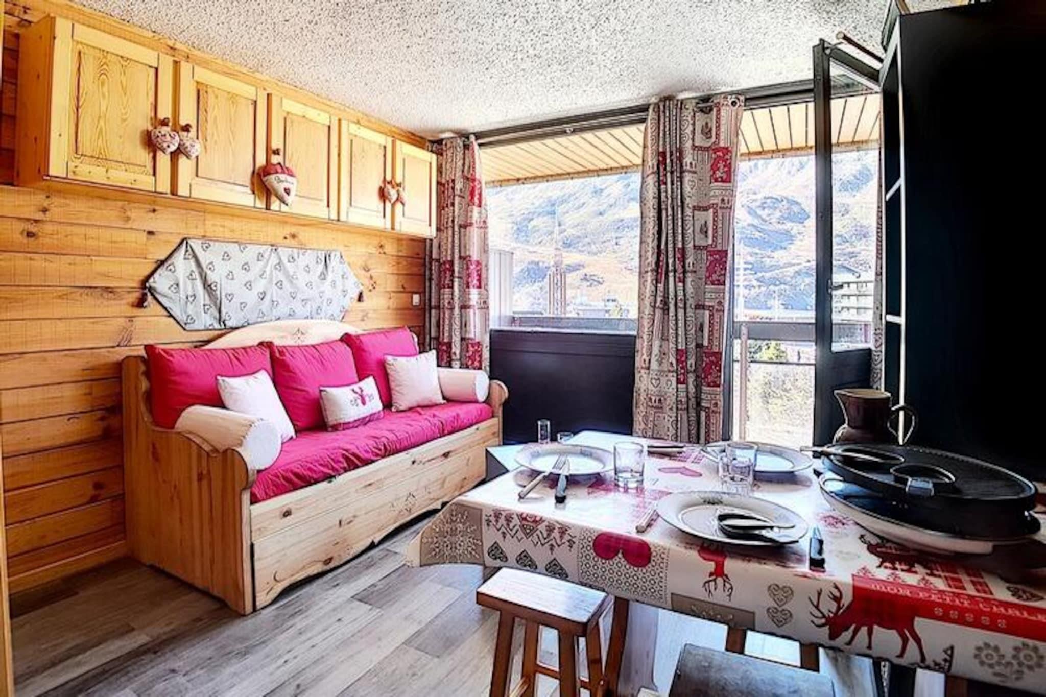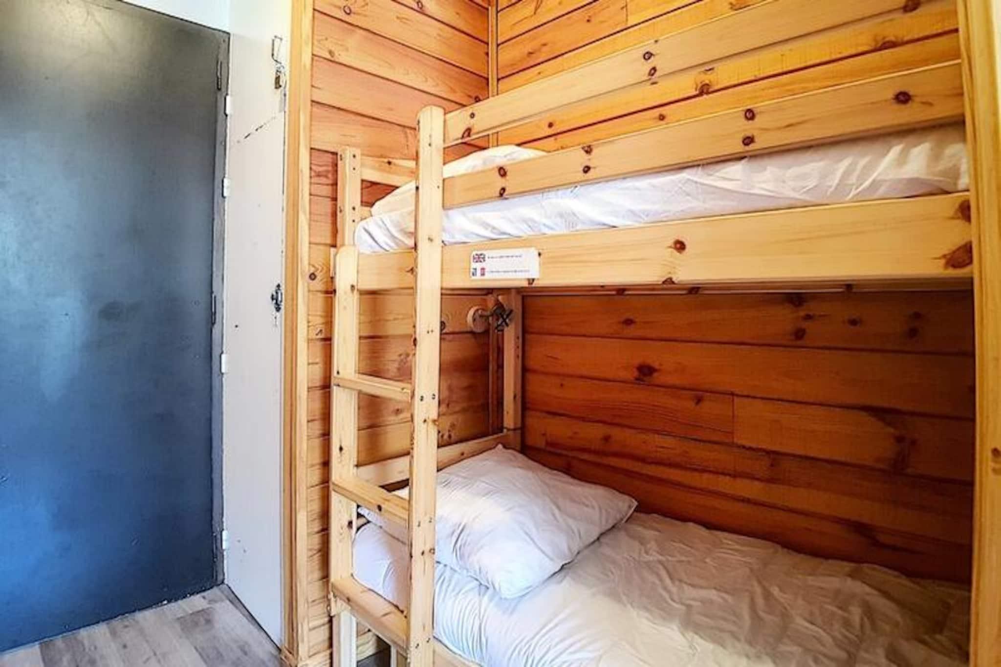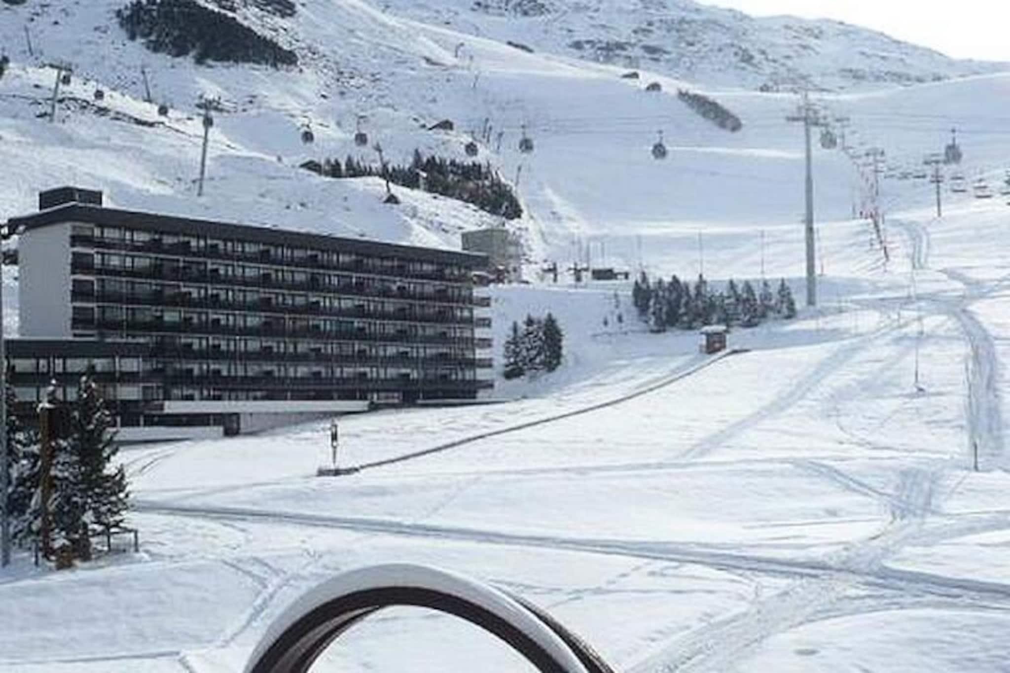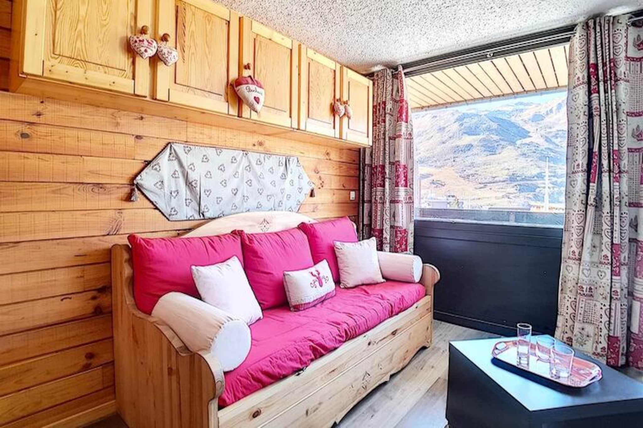 Højt over de franske alpers glitrende skråninger tilbyder denne charmerende studiolejlighed i Aravis-bygningen et hyggeligt tilflugtssted for både eventyrere og afslapningssøgende. Beliggende i hjertet af La Croisette-distriktet, placerer residensen dig kun få skridt fra skilifterne, hvilket sikrer ubesværet ski-in/ski-out adgang til de uberørte løjper. Uanset om du er en erfaren skiløber eller nybegynder, giver de blide pister lige uden for bygningen den perfekte start på din alpine rejse. Den sydvendte balkon inviterer dig til at nyde sollyset og se ud over de sneklædte landskaber, hvilket skaber øjeblikke af ren ro. \n\nDet omhyggeligt renoverede 22 m² store studio er designet til komfortabelt at rumme op til fire gæster. Stuen har en sovesofa og en udtræksseng, mens entréområdet har to enkeltkøjesenge, ideelt til familier eller små grupper. Et fuldt udstyret køkken med moderne apparater såsom køleskab, mikrobølgeovn, miniovn og opvaskemaskine gør det nemt at tilberede solide måltider efter en dag på pisterne. Badeværelset har bruser og toilet, hvilket sikrer bekvemmelighed under hele dit ophold. Yderligere faciliteter som et tv og betalt Wi-Fi sørger for underholdning og internetforbindelse, mens dyner og varme sikrer varme og komfort på kølige aftener. \n\nUd over lejligheden tilbyder det pulserende La Croisette-distrikt et væld af attraktioner. Pioupiou Club, en dagpleje og snehave, ligger kun 10 minutters gang væk, hvilket gør denne beliggenhed ideel for familier med små børn. Den nærliggende shoppingarkade og busstation giver nem adgang til lokale faciliteter og transport, mens ESF-skiskolens mødested sikrer, at begyndere hurtigt kan komme i gang. \n\nUanset om du er her for at svæve gennem pudrede pister, udforske den alpine charme eller blot slappe af i den fredfyldte bjergatmosfære, lover dette dejlige studie en uforglemmelig flugt i hjertet af de franske alper.